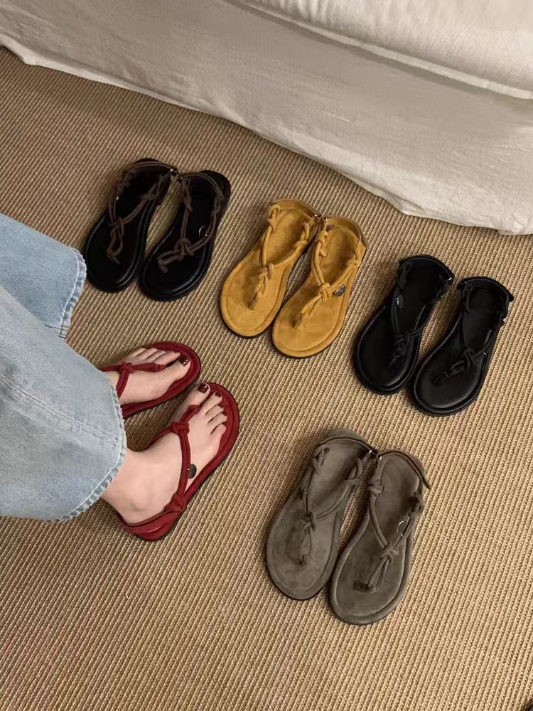 손으로 짠 레트로 매듭 샌들 여자 2025 년 여름 새로운 한국식 올매치 홀리데이 스타일 비치 슬리퍼스토어 가기