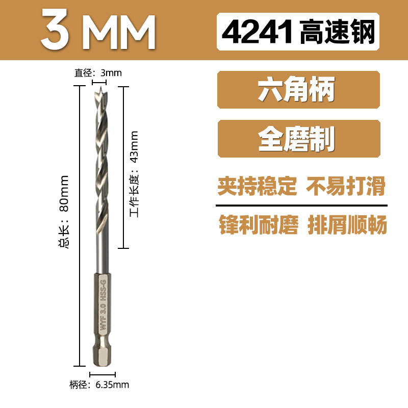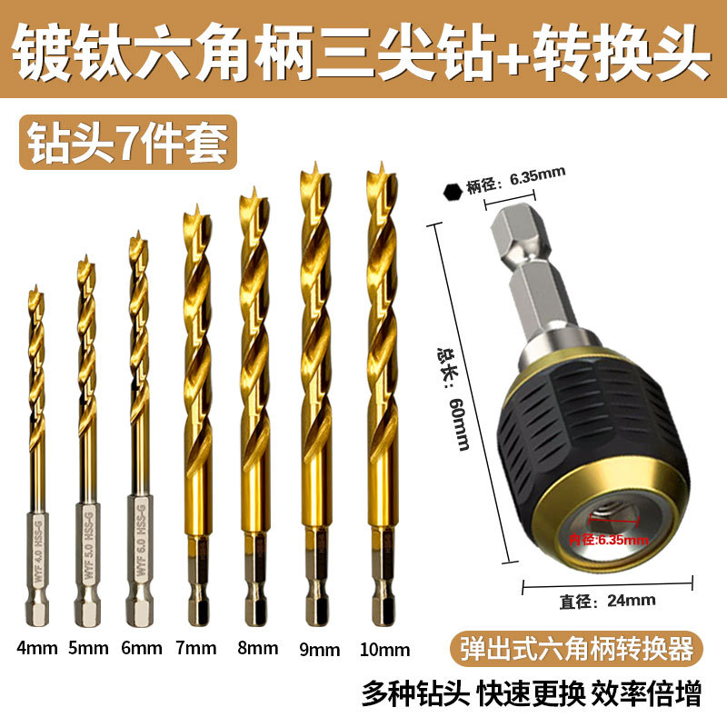 삼중톱 목공 드릴 비트, 고속 강철 구멍 오프너, 육각 핸들, 완전 연마 티타늄 도금 단단한 목재 보드 드릴링 도구스토어 가기