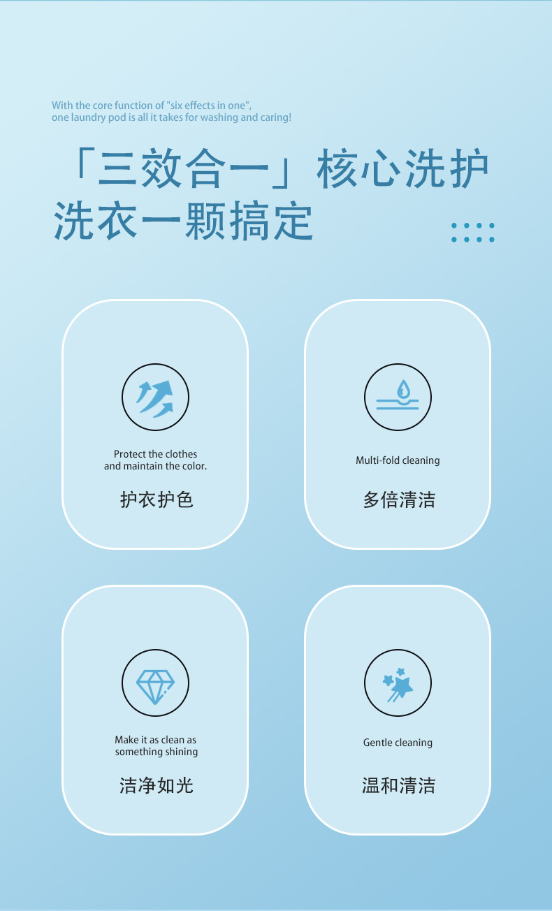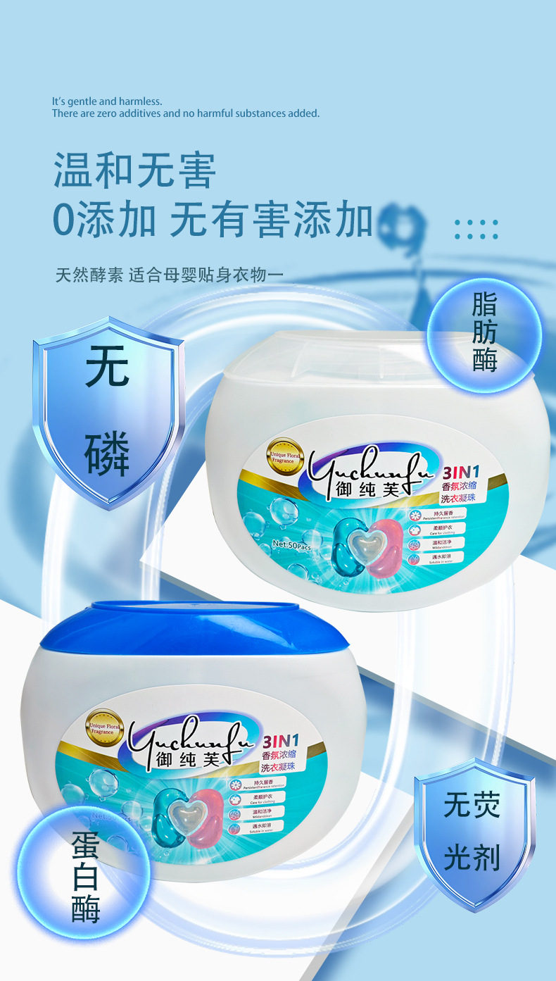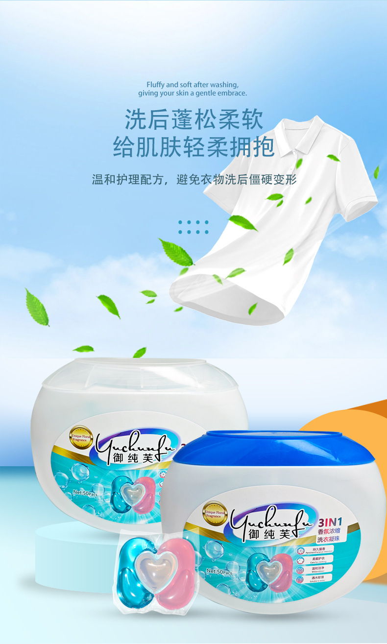 클렌징 및 향기로운 향을 지닌 Yuchunfu 농축 3 챔버 세탁 비즈 3-in-1 세탁 비즈 제조업체의 국경 간 영어 버전