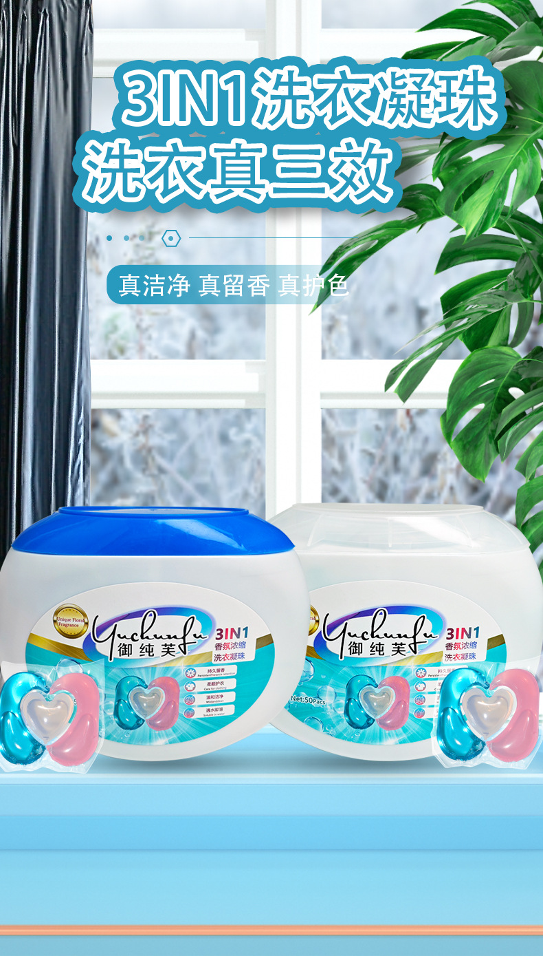 클렌징 및 향기로운 향을 지닌 Yuchunfu 농축 3 챔버 세탁 비즈 3-in-1 세탁 비즈 제조업체의 국경 간 영어 버전스토어 가기