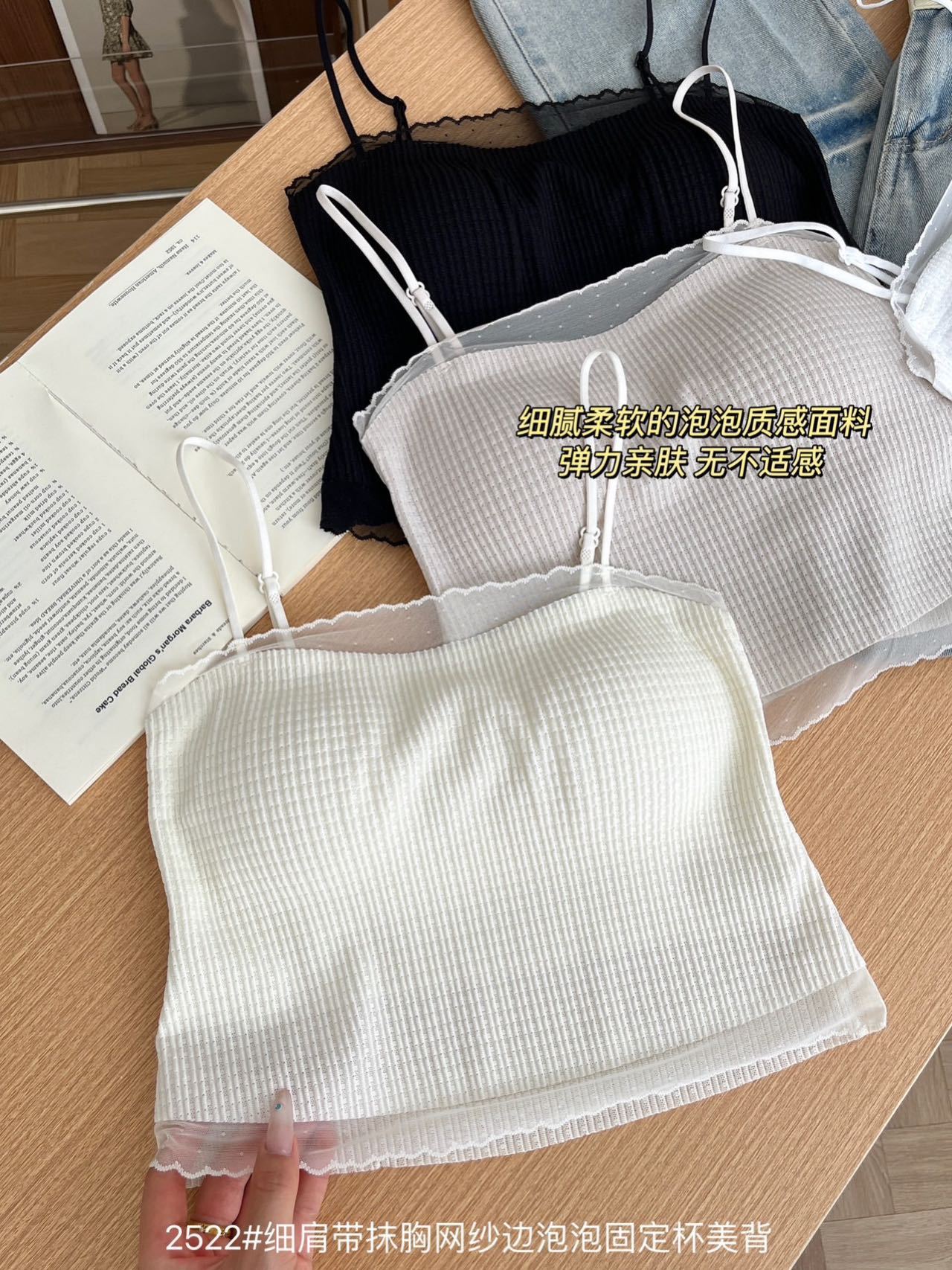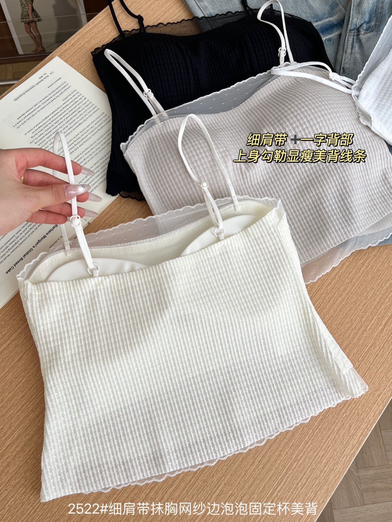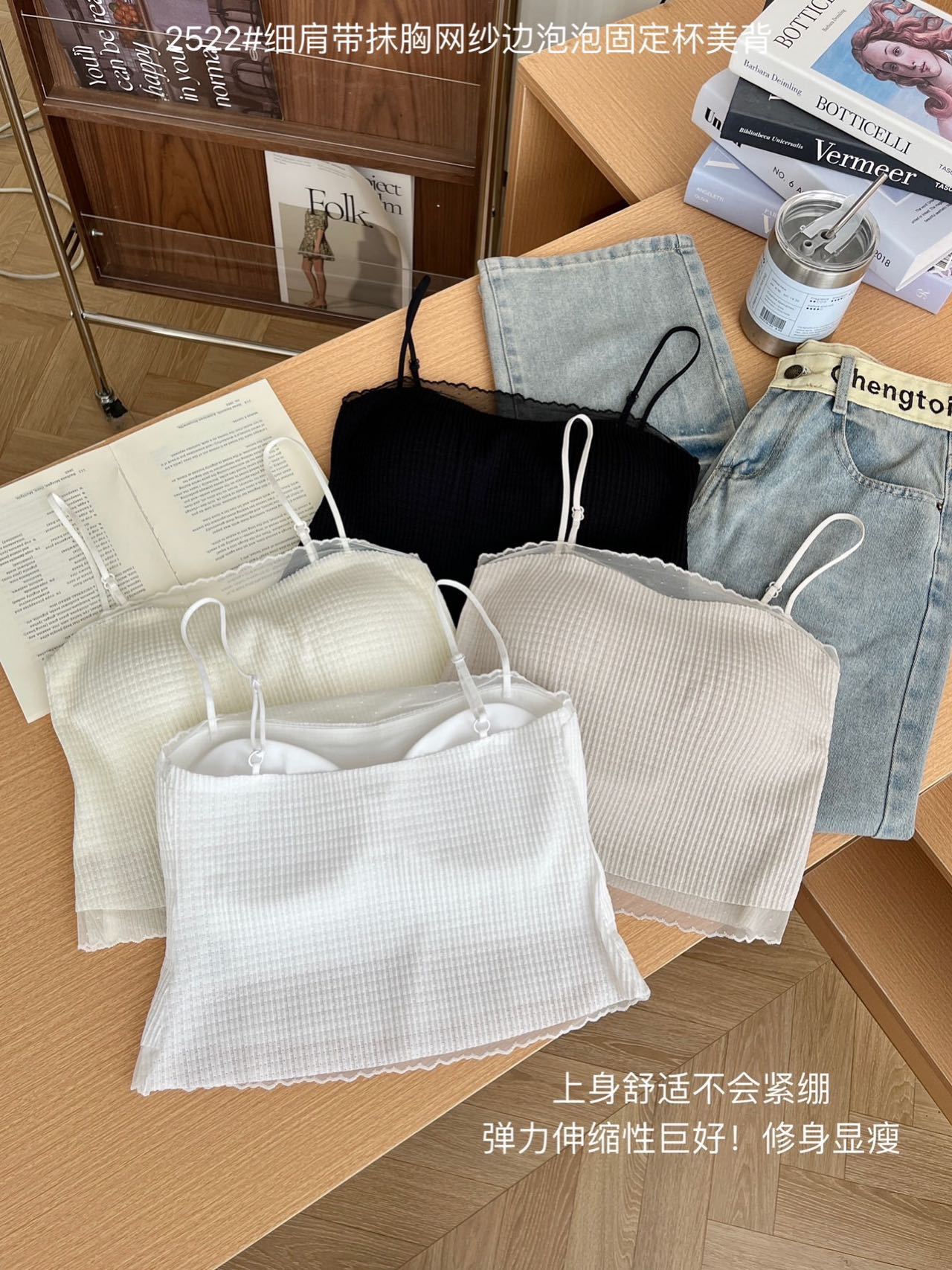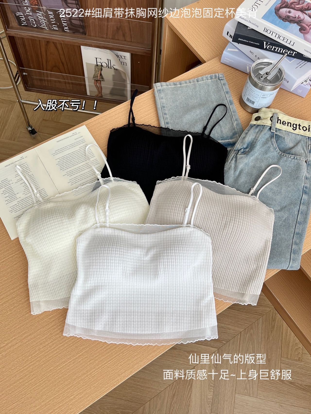 봄과 여름 안티 라이트 튜브 탑 얇은 벨트 스퀘어 설탕 그리드 간단한 가슴 패드 순수한 바람 외부 착용 캐미솔 아름다운 등