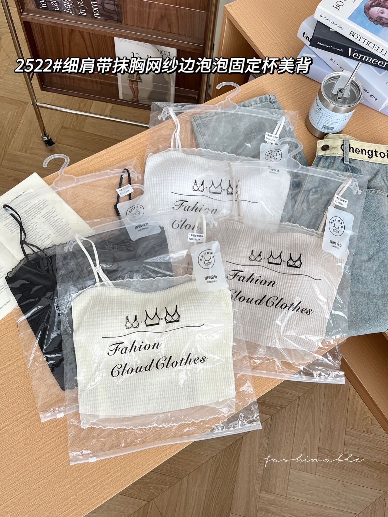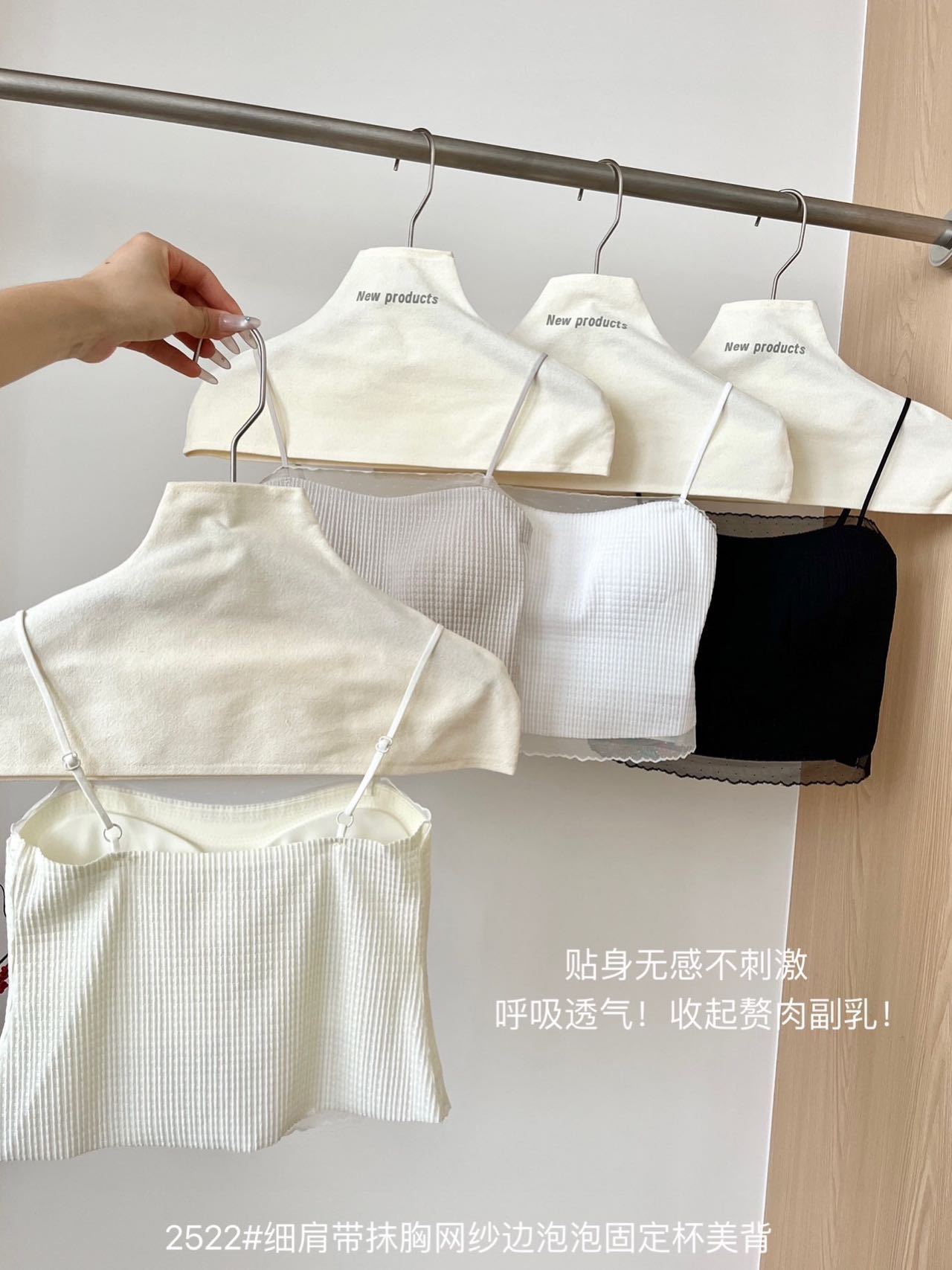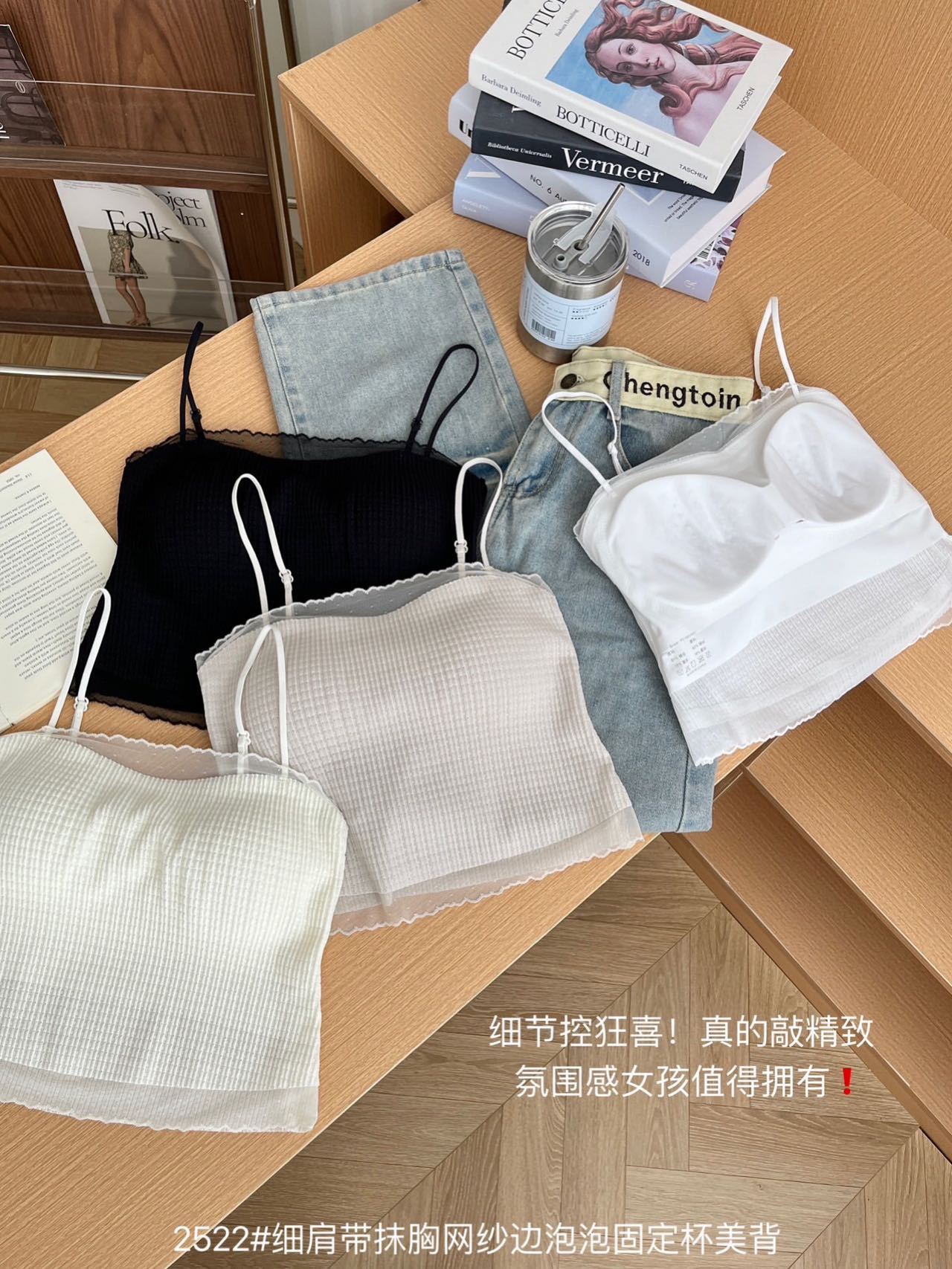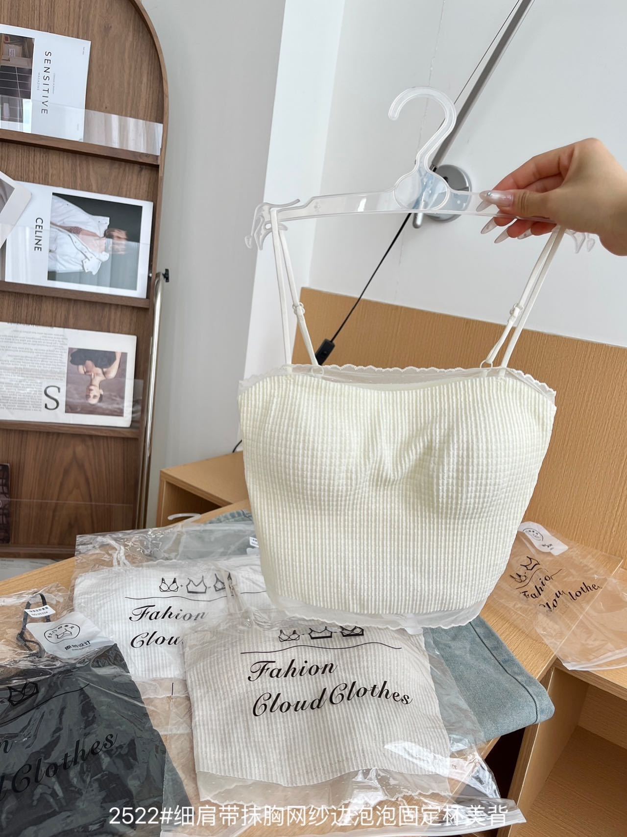 봄과 여름 안티 라이트 튜브 탑 얇은 벨트 스퀘어 설탕 그리드 간단한 가슴 패드 순수한 바람 외부 착용 캐미솔 아름다운 등