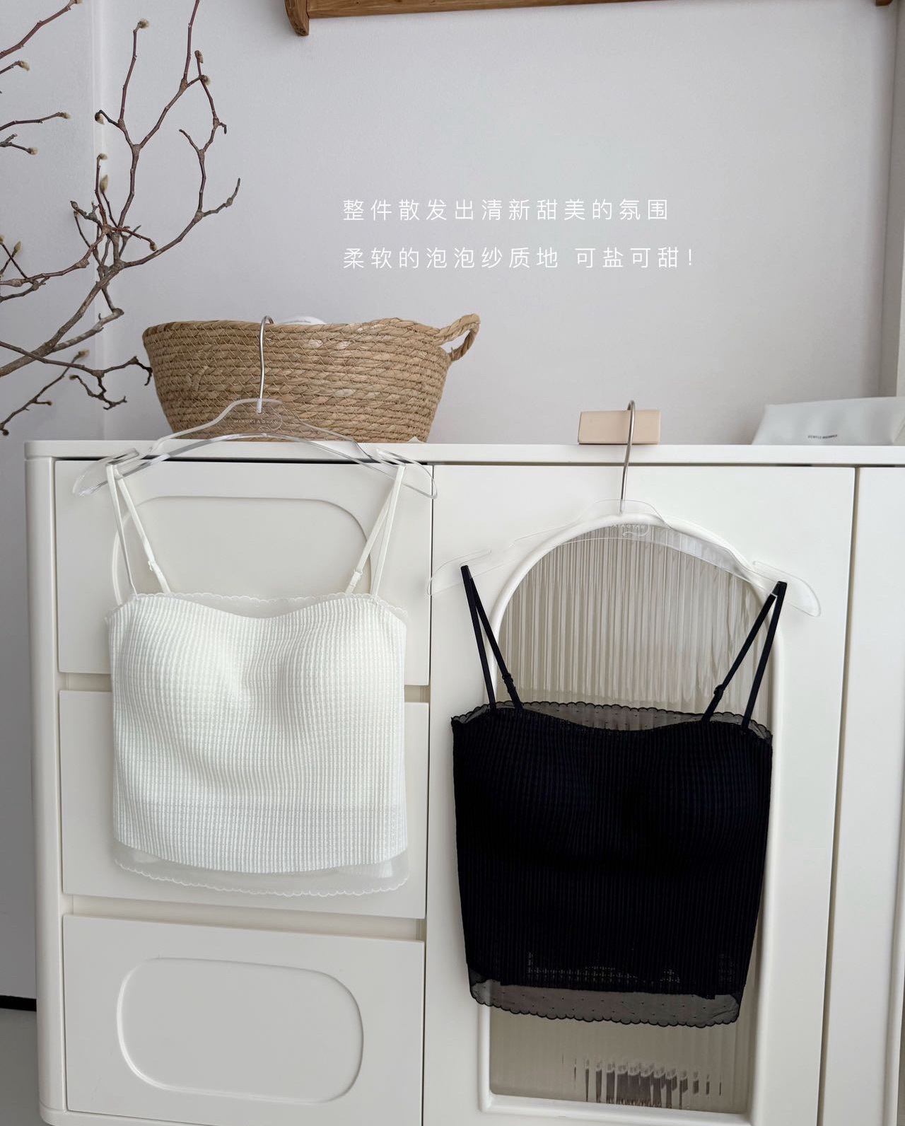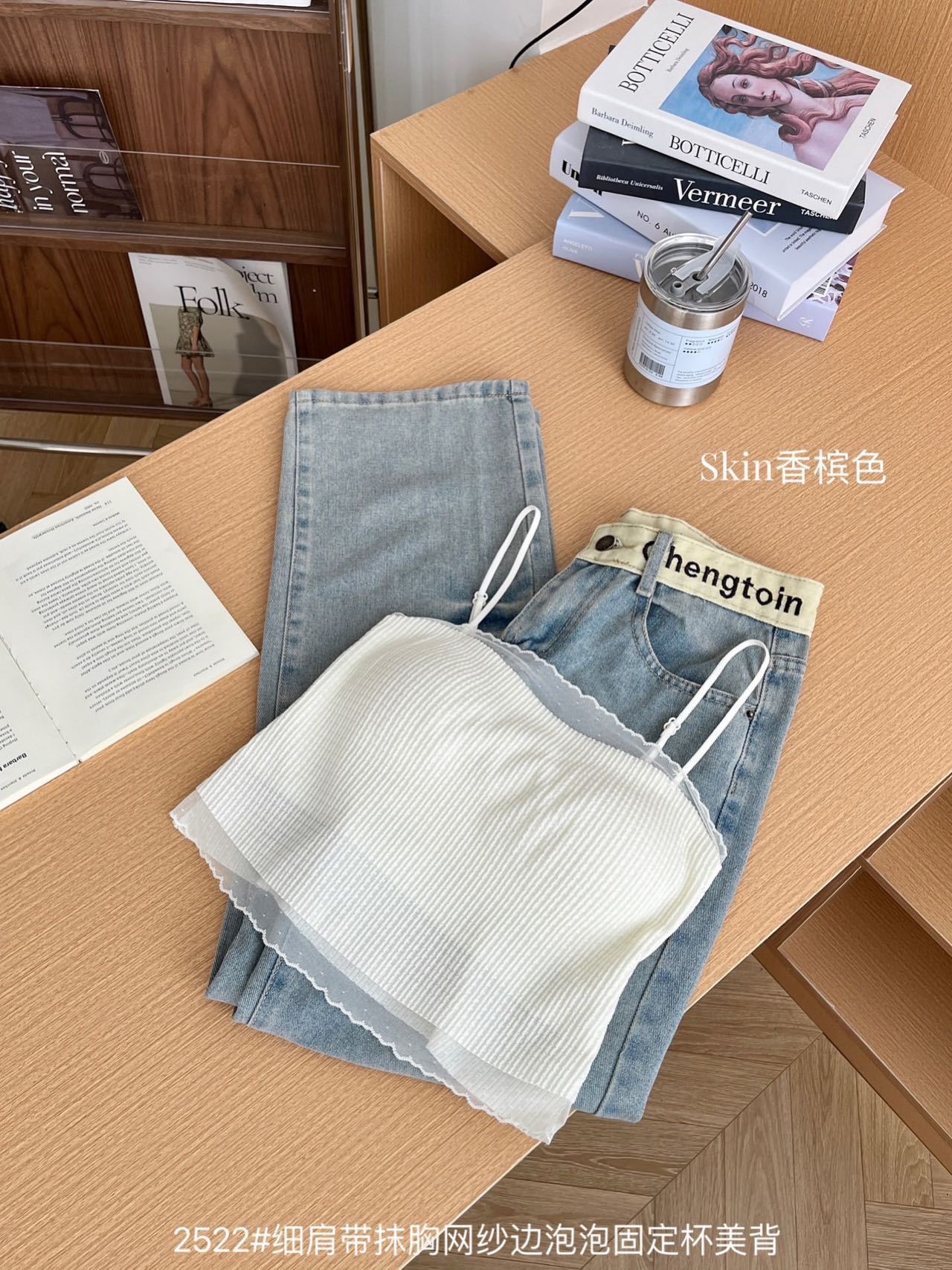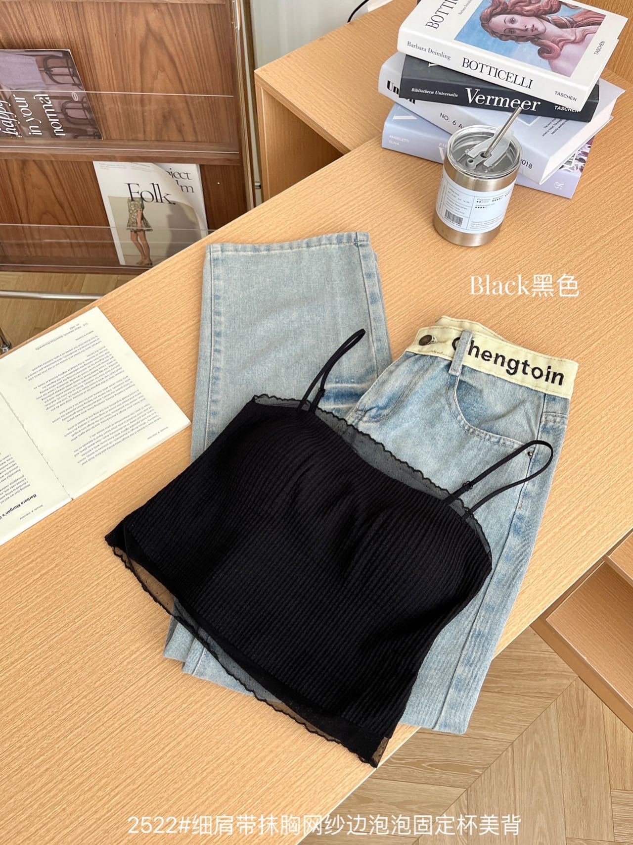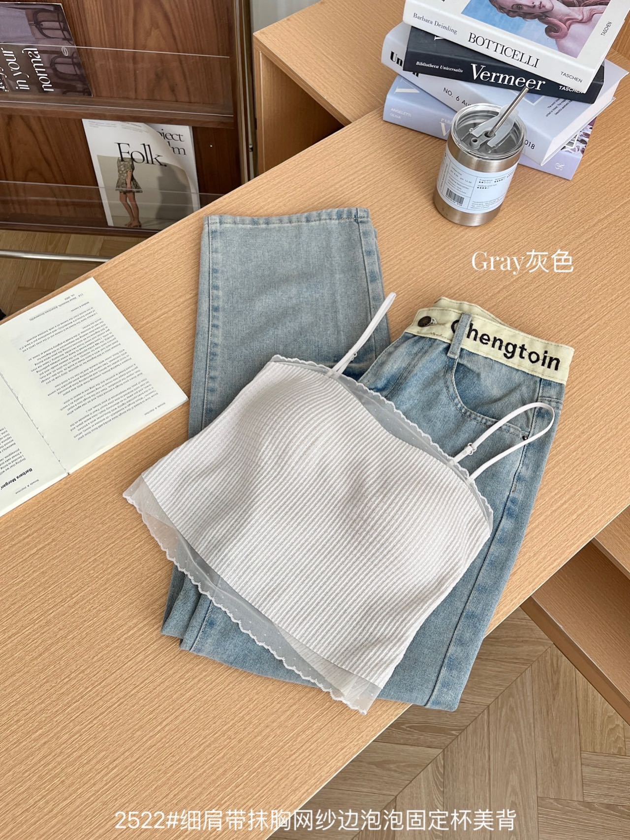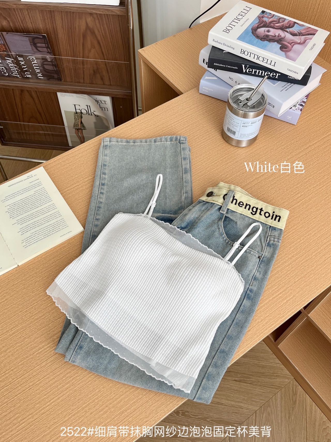 봄과 여름 안티 라이트 튜브 탑 얇은 벨트 스퀘어 설탕 그리드 간단한 가슴 패드 순수한 바람 외부 착용 캐미솔 아름다운 등