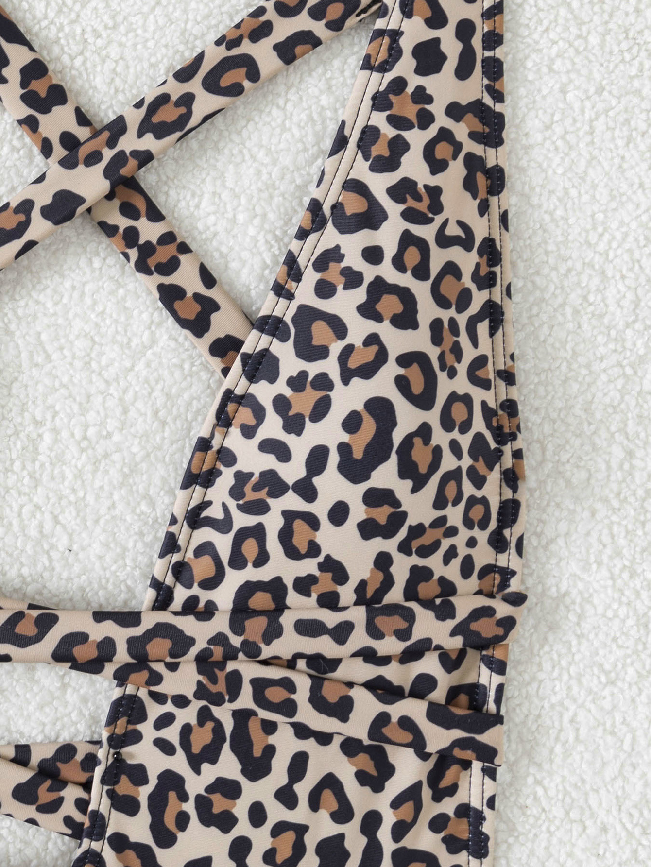 유럽과 미국의 새로운 수영복 여성의 섹시한 깊은 v 비키니 삼각형 원피스 수영복 아마존 레오파드 프린트 원피스 수영복