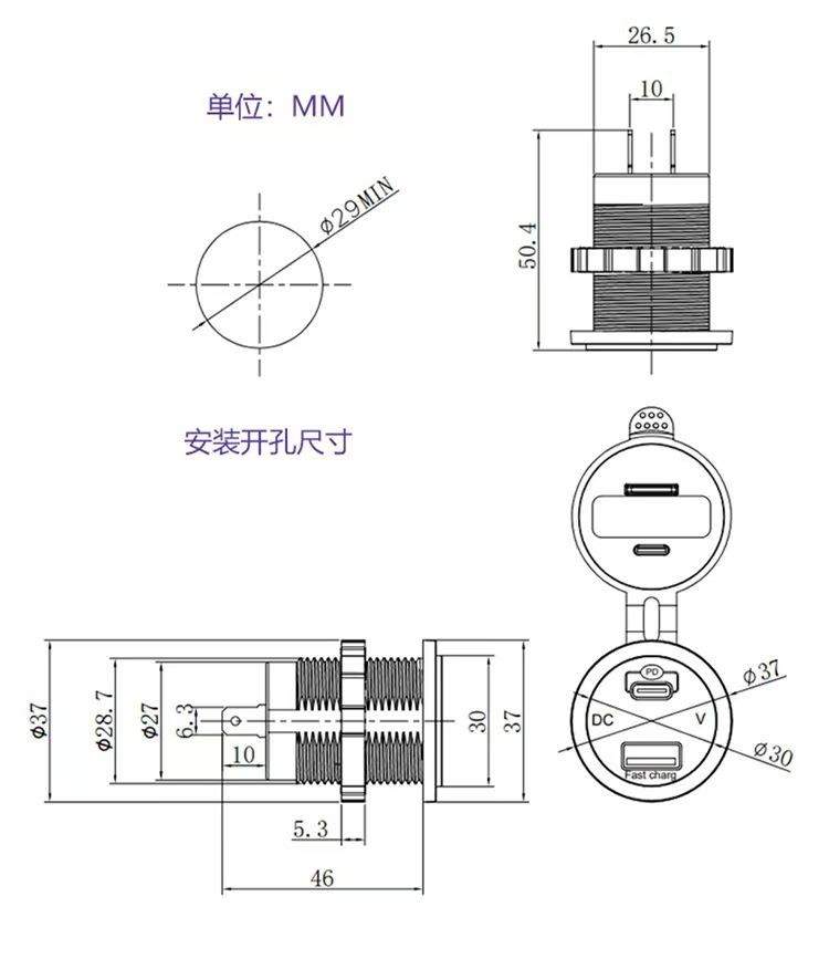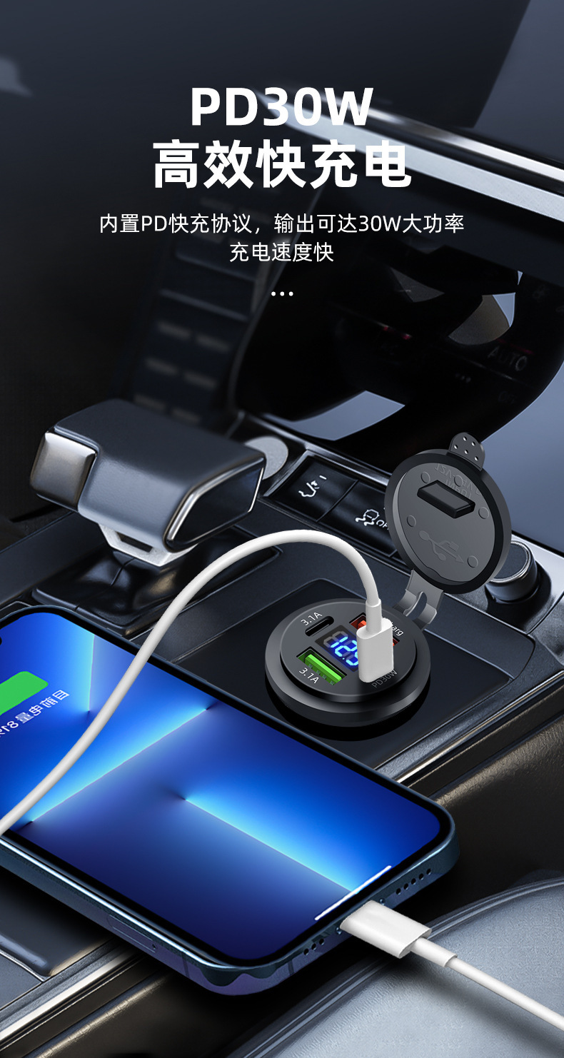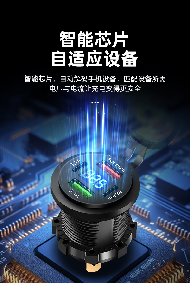 • 멀티 포트 PD30W/QC3.0 고속 충전 디지털 디스플레이