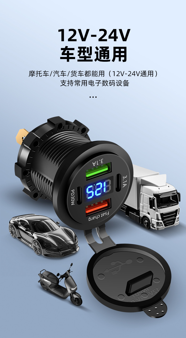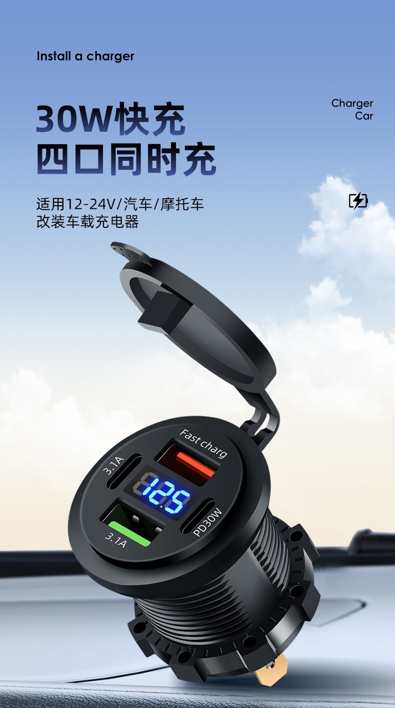 12-24V 자동차 담배 라이터가 장착된 오토바이 자동차 충전 포트용 수정된 차량용 충전기 고속 충전 변환 플러그