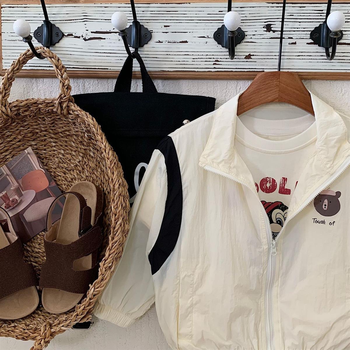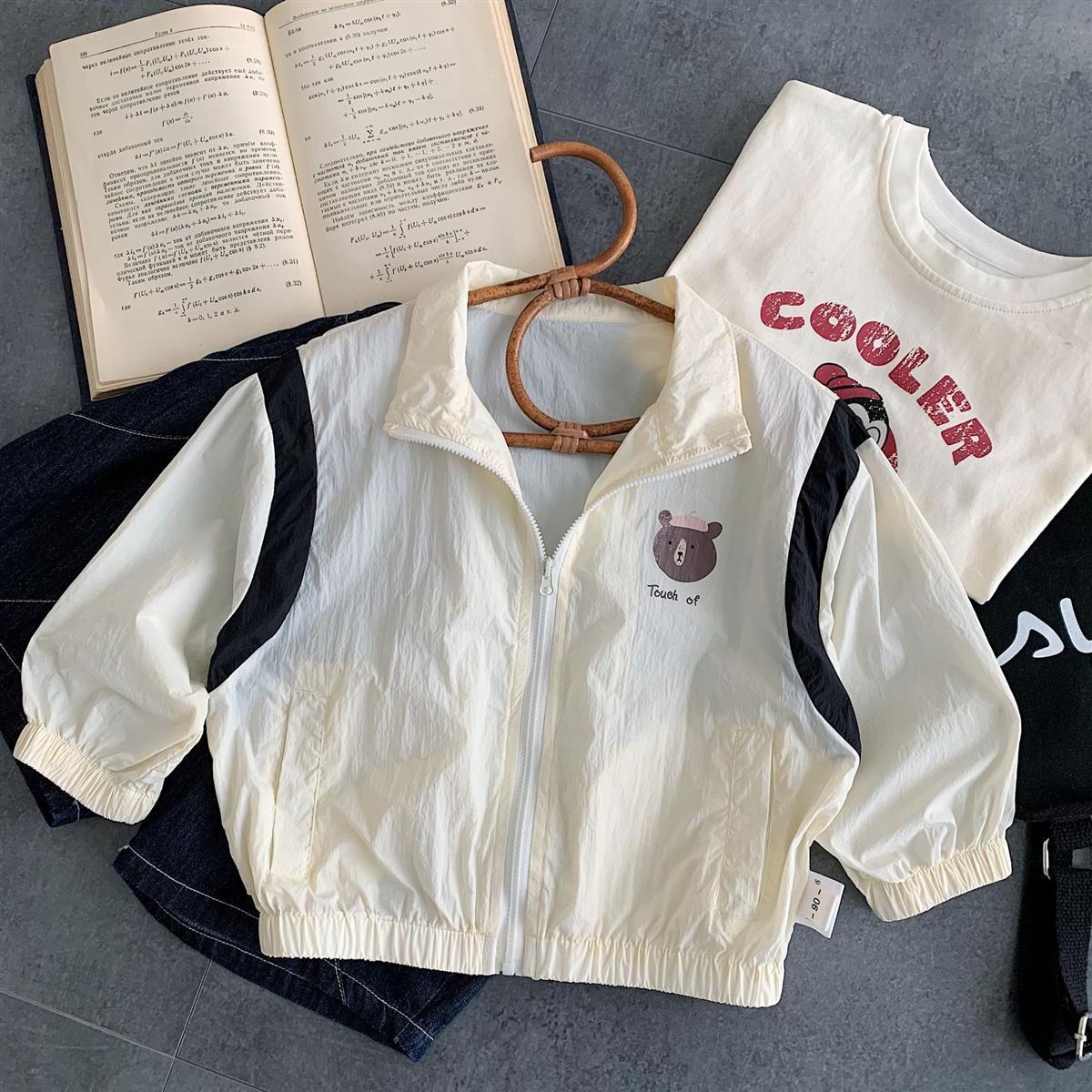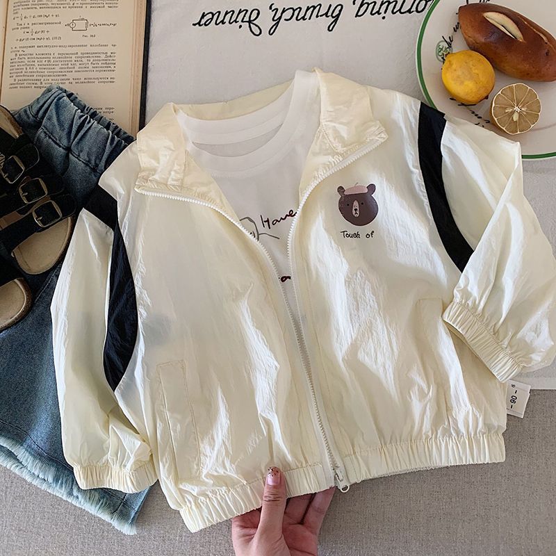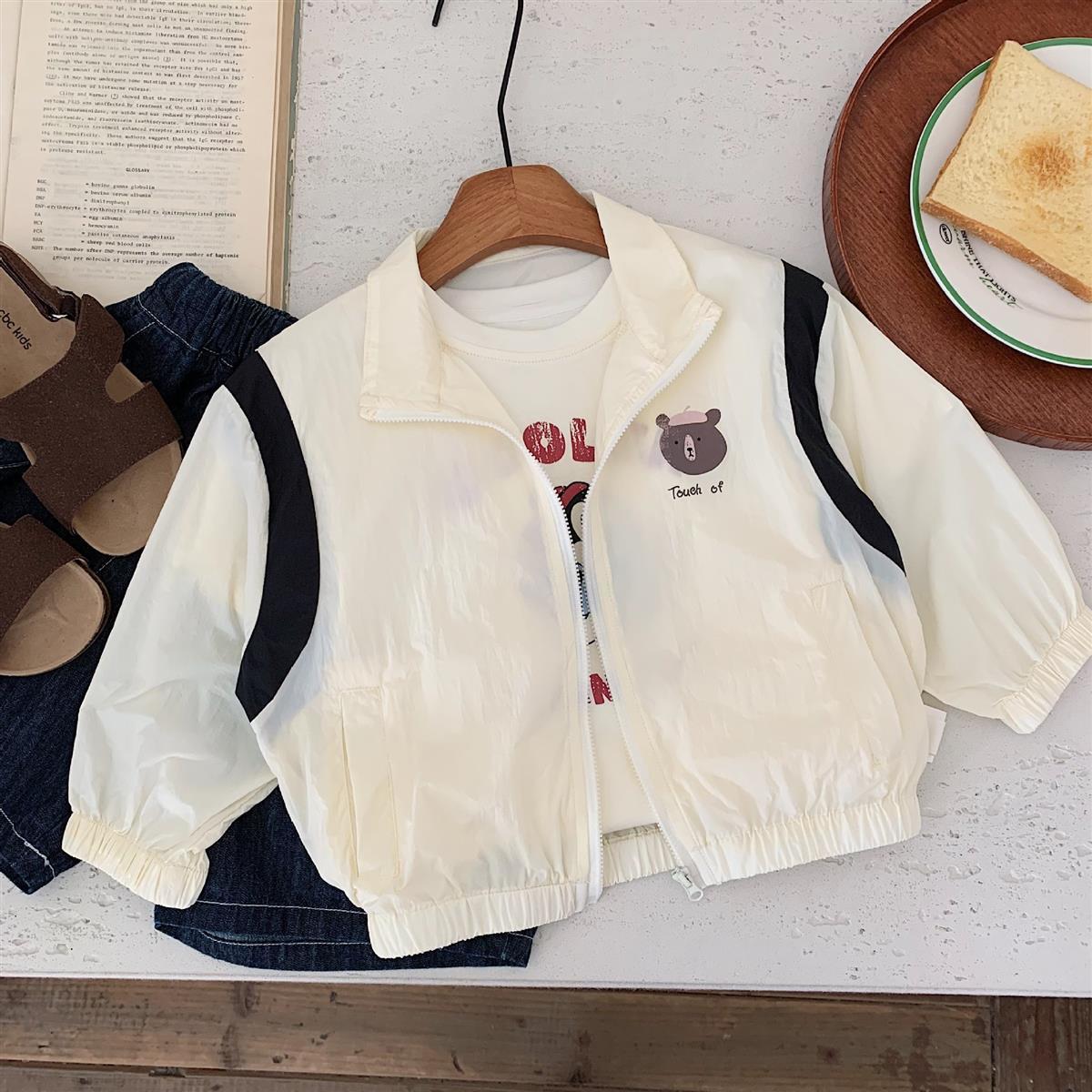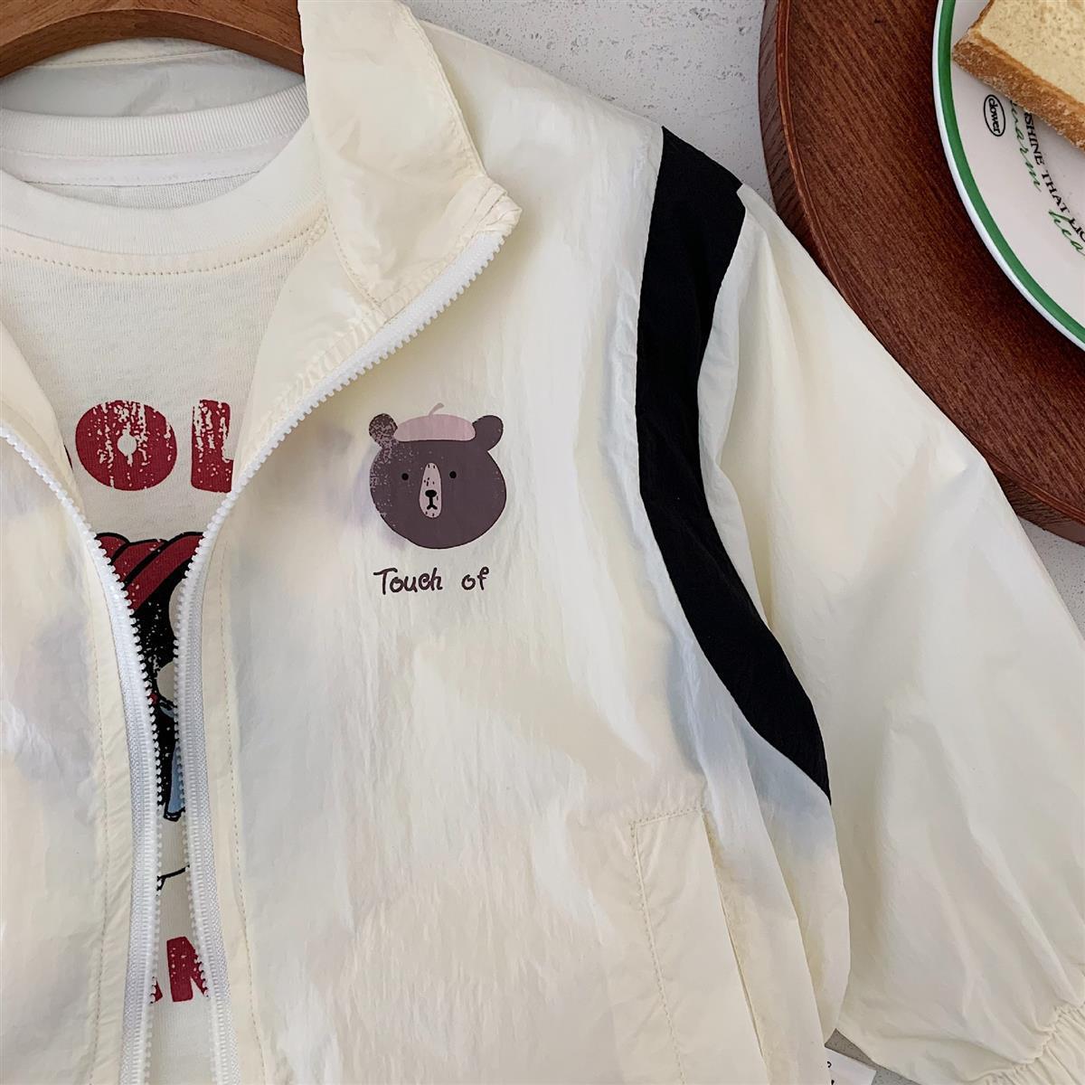 소년과 소녀를위한 어린이 만화 곰 태양 보호 의류 2025 여름 유행 아기 초박형 코트 한국 스타일 어린이 피부 의류스토어 가기