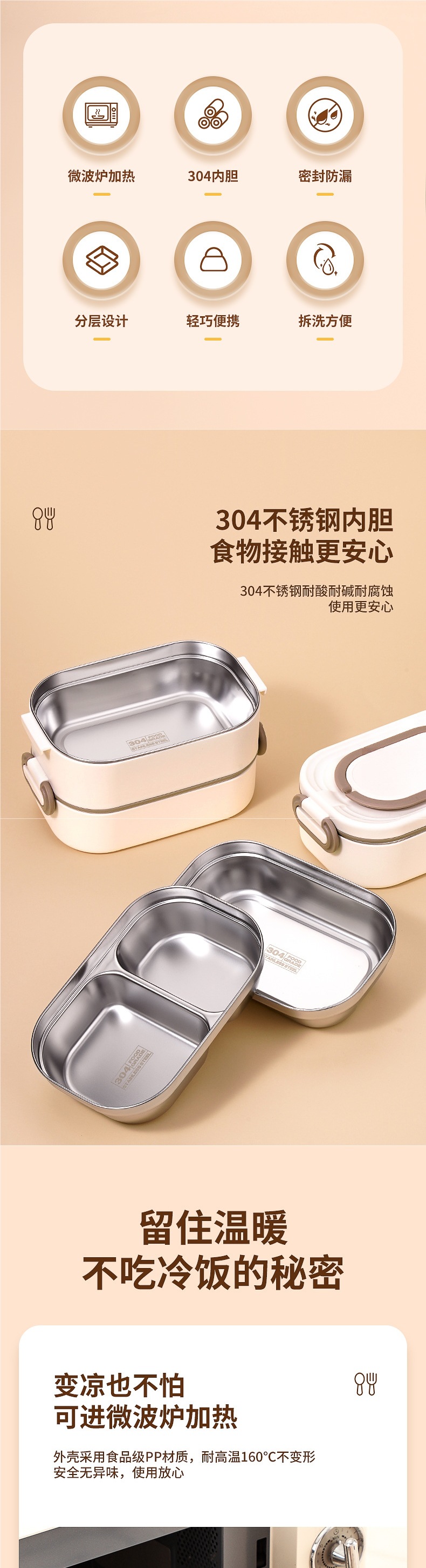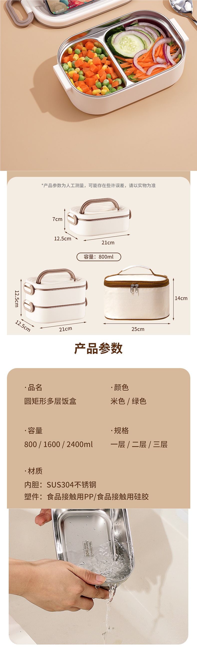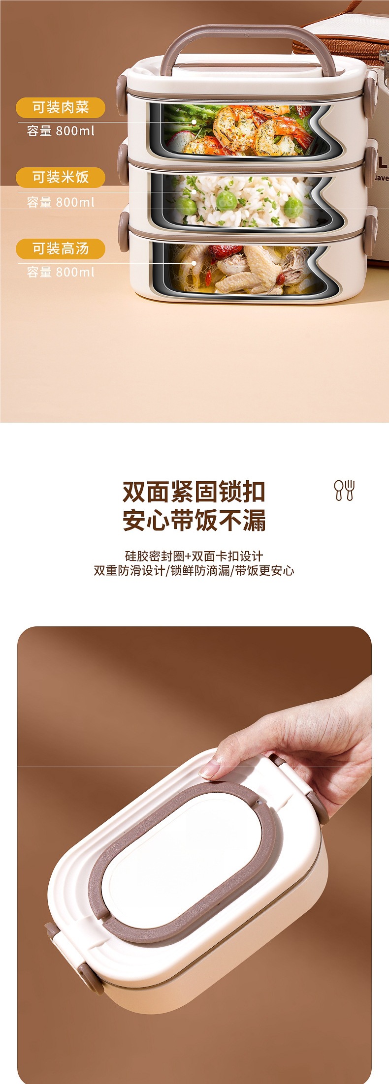 • *단층 베이지 800ML 항균 304 스테인레스 스틸*