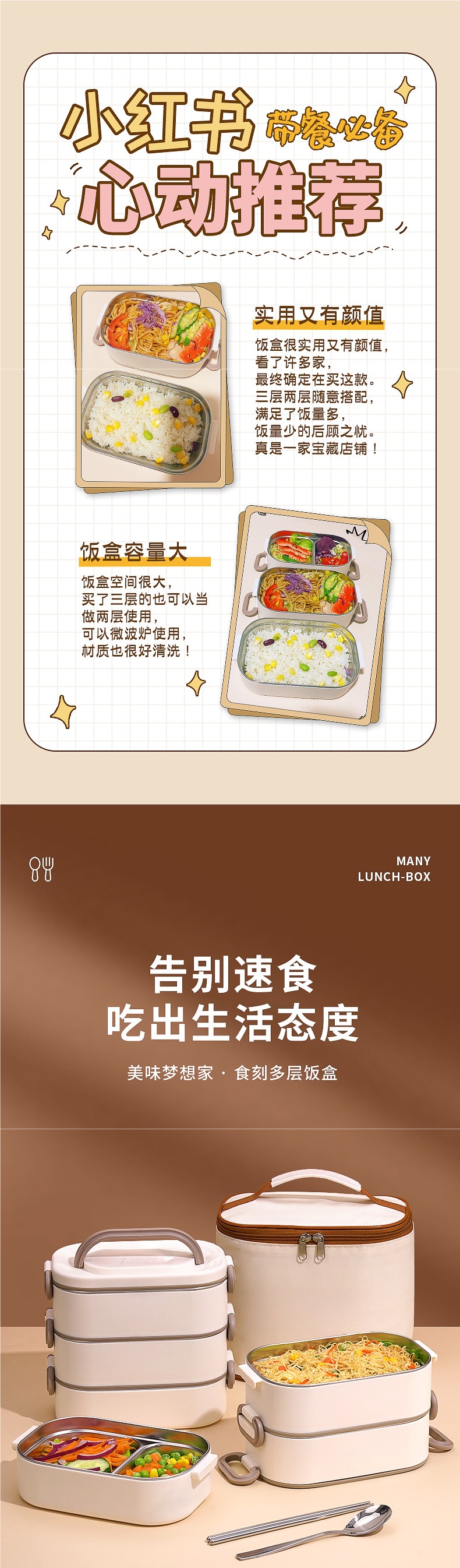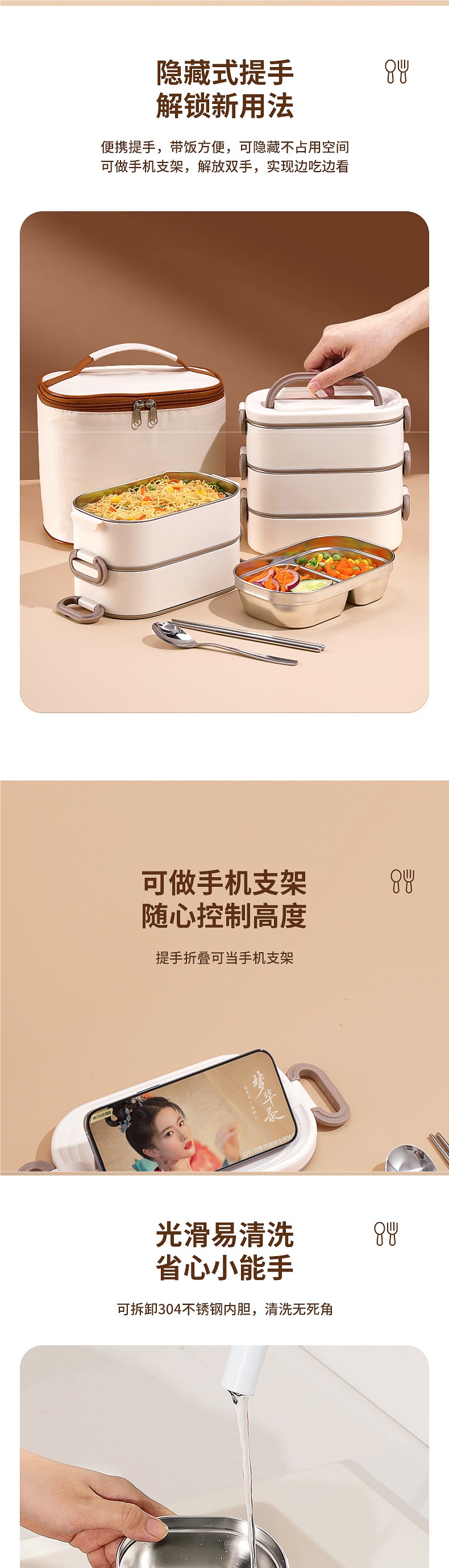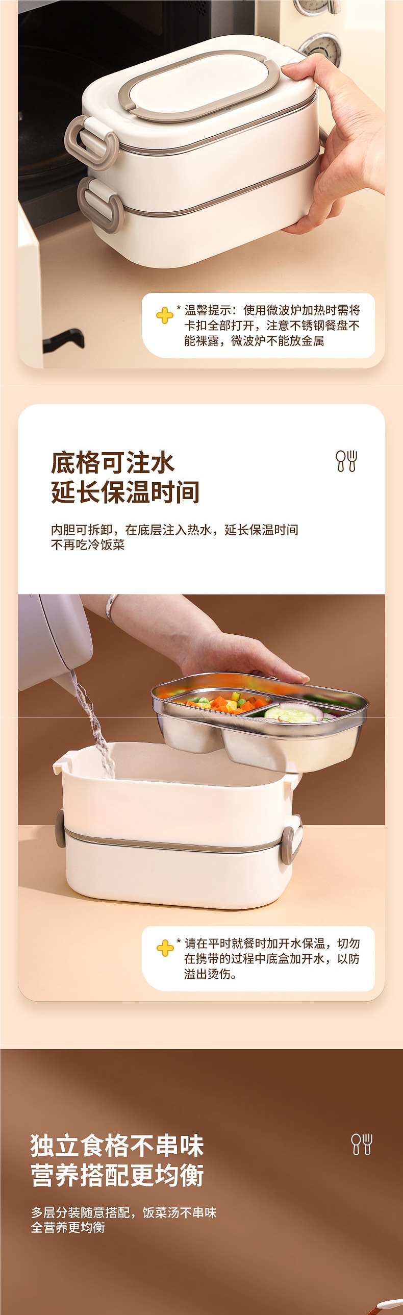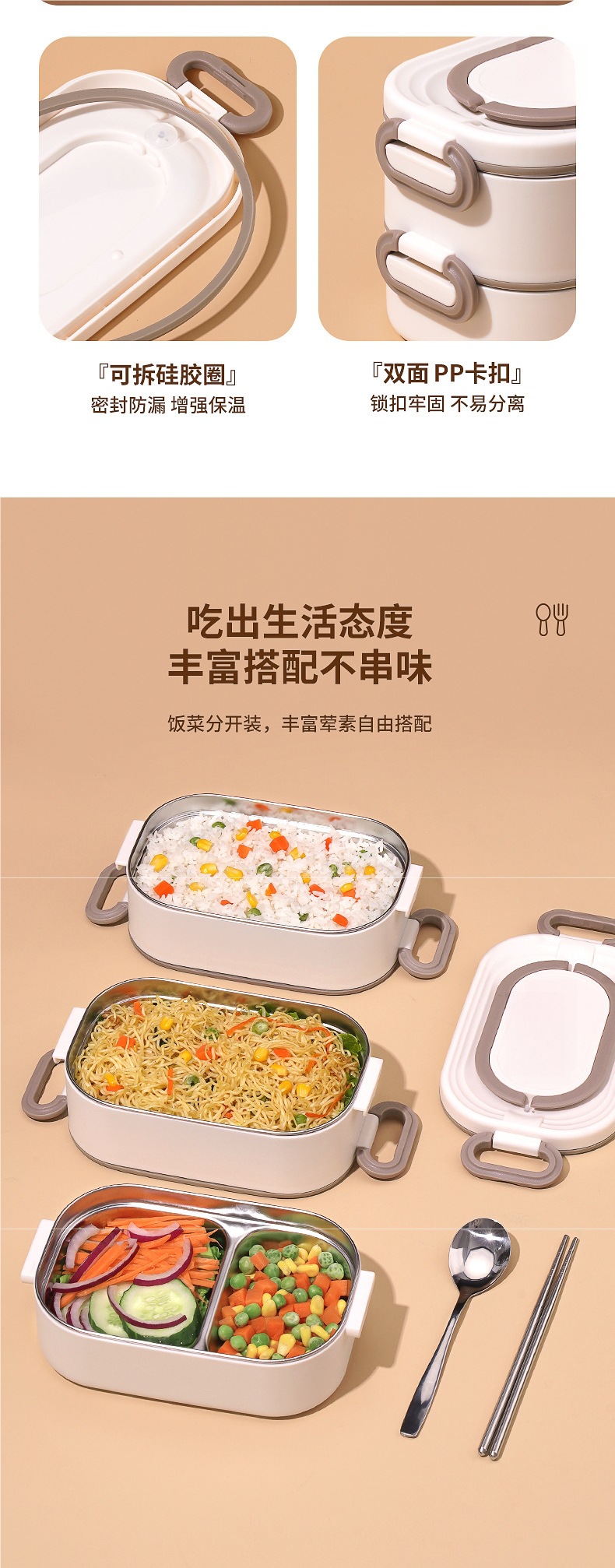 • *단층 베이지 800ML 항균 304 스테인레스 스틸*
