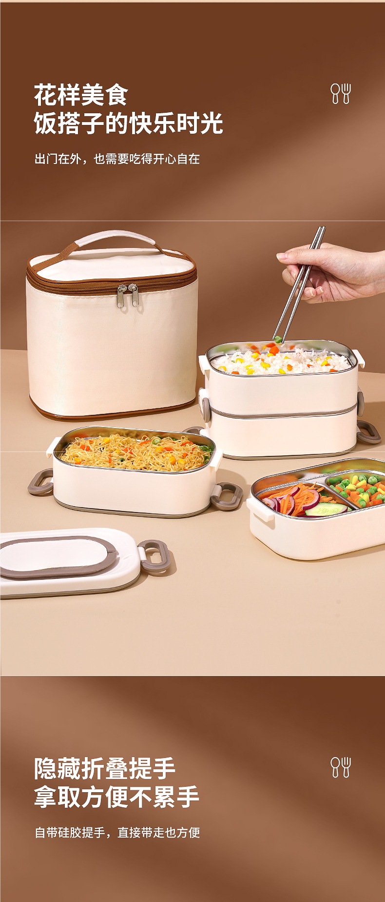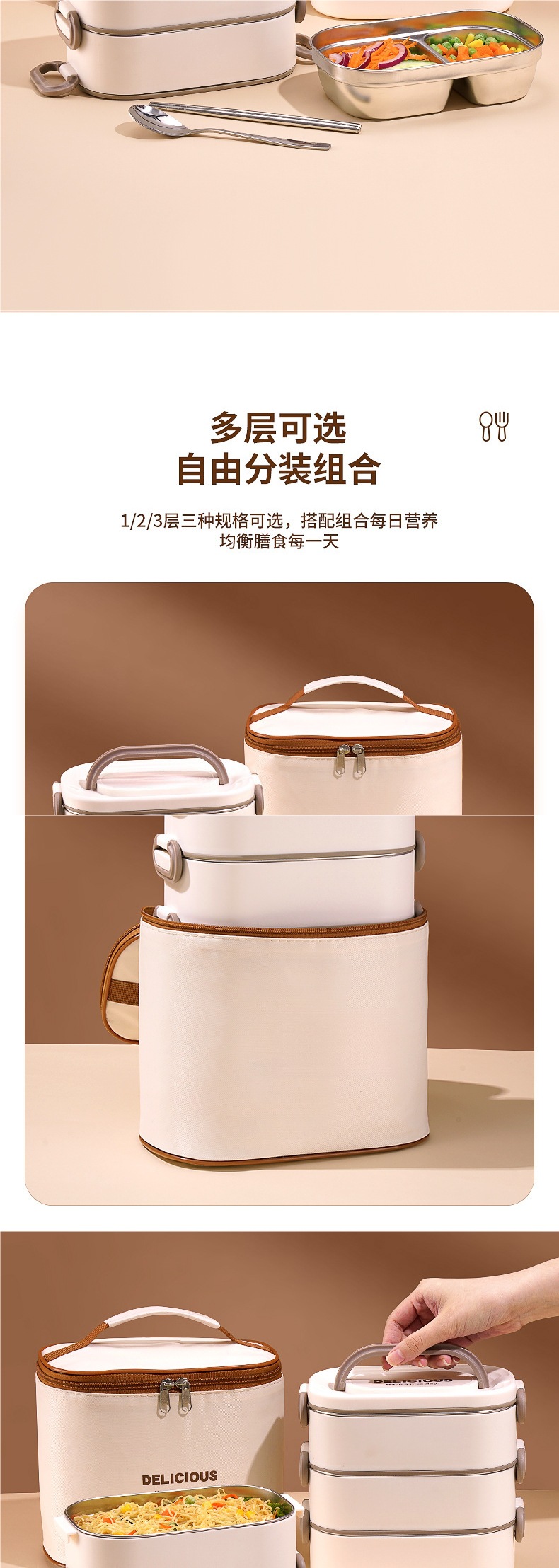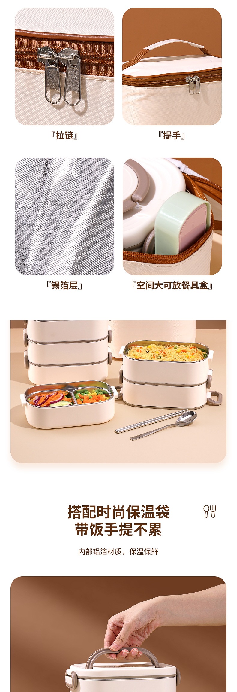• *더블 레이어 베이지 1600ML 신형 항균 + 보온 가방*