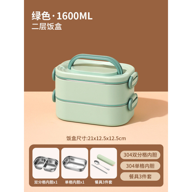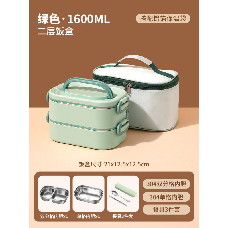 • *더블 레이어 그린 1600ML 항균 304 스테인레스 스틸*