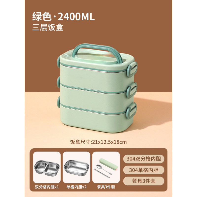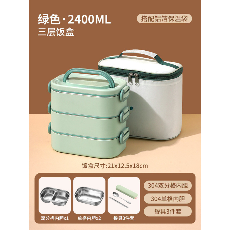 • *녹색 2400ML 항균 304 스테인레스 스틸 3겹*