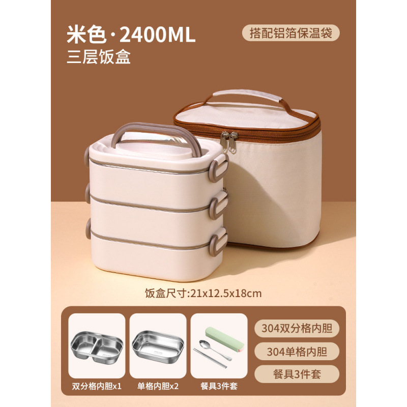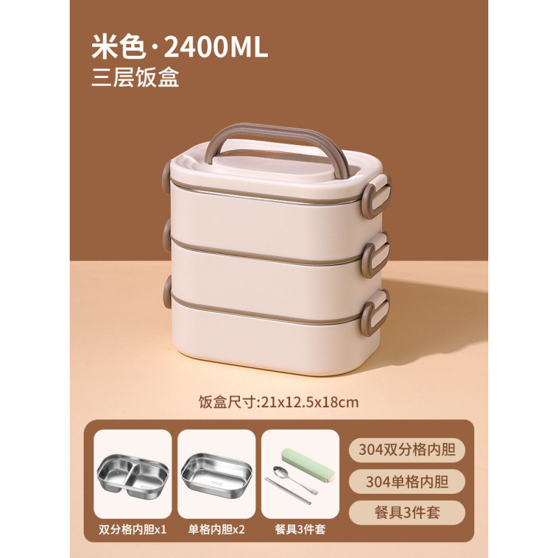 • *베이지 2400ML 항균 304 스테인레스 스틸 3겹*