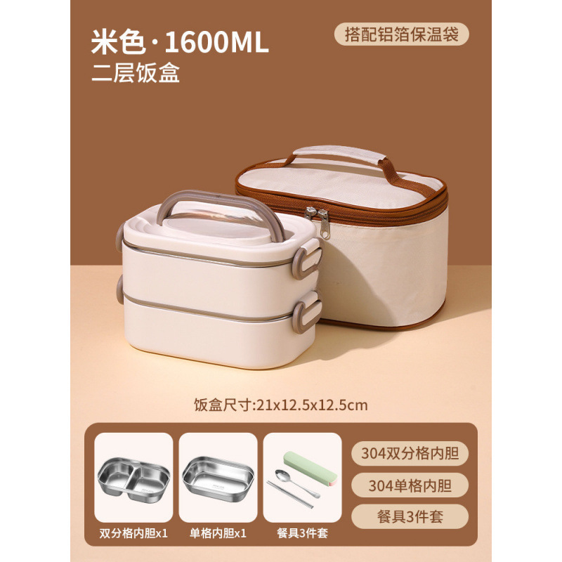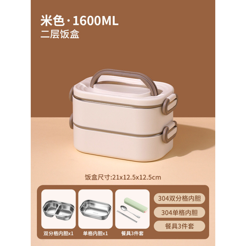 • *더블 레이어 베이지 1600ML 항균 304 스테인레스 스틸*