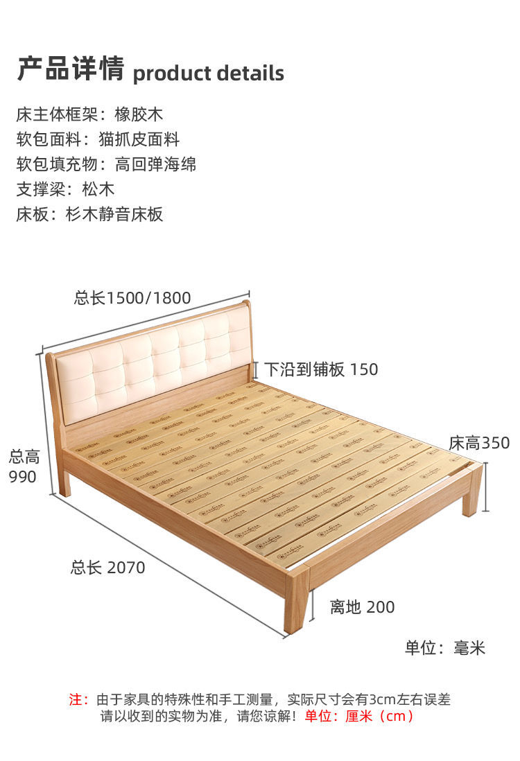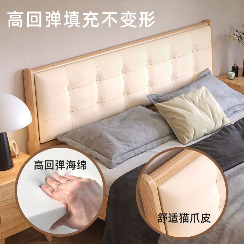 북유럽 원목 침대 1.8m 마스터 침실 더블 침대 소형 싱글 침대 1.5m 경제 아파트 임대 침대