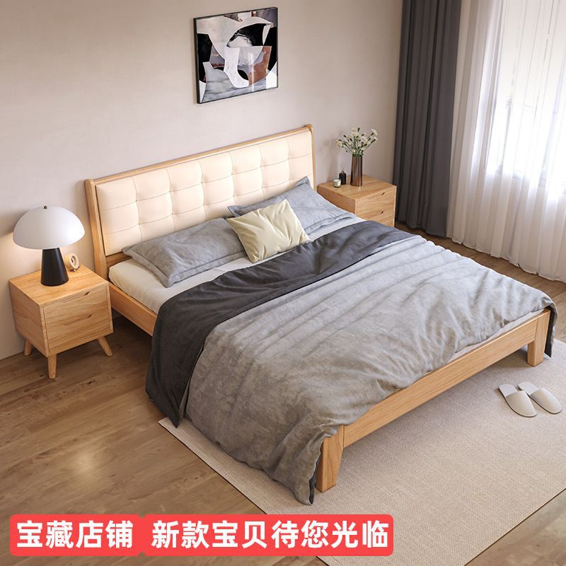 북유럽 원목 침대 1.8m 마스터 침실 더블 침대 소형 싱글 침대 1.5m 경제 아파트 임대 침대스토어 가기