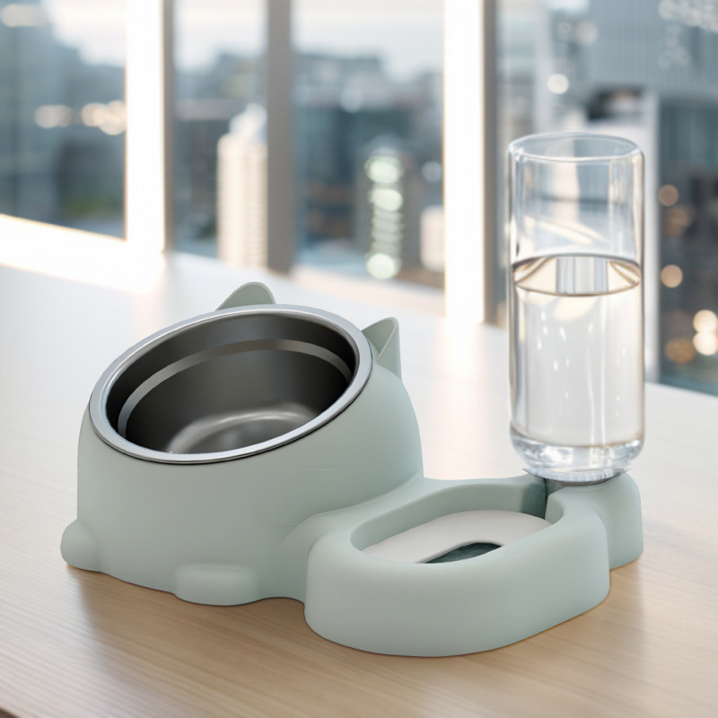 애완동물 고양이 이중 그릇 자동 물그릇 식수 그릇 개와 고양이가 식사 그릇을 뒤집는 애완동물 용품 식사 그릇스토어 가기