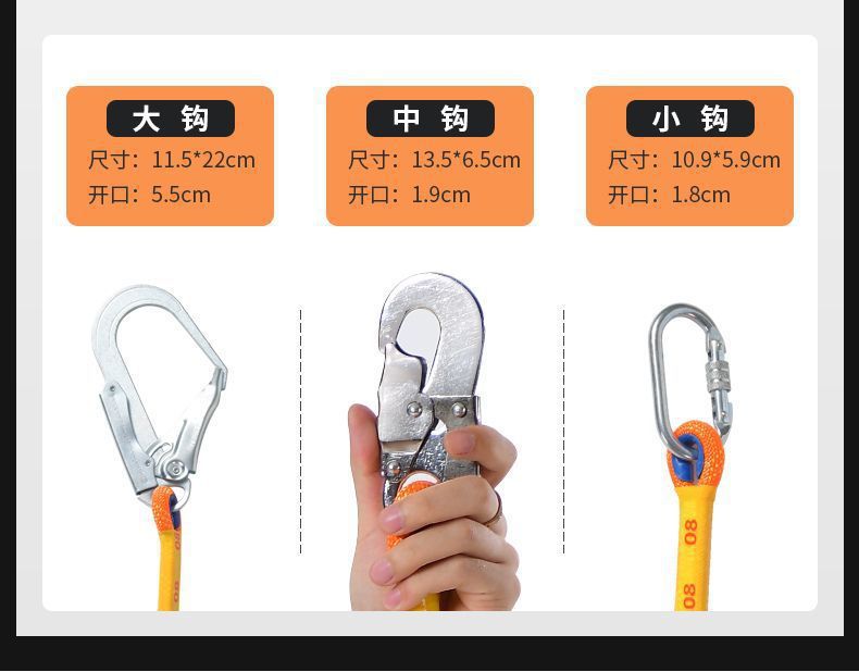 • 단일 허리 안전 벨트 3m 소형 후크 세트 - 도구 가방 없음