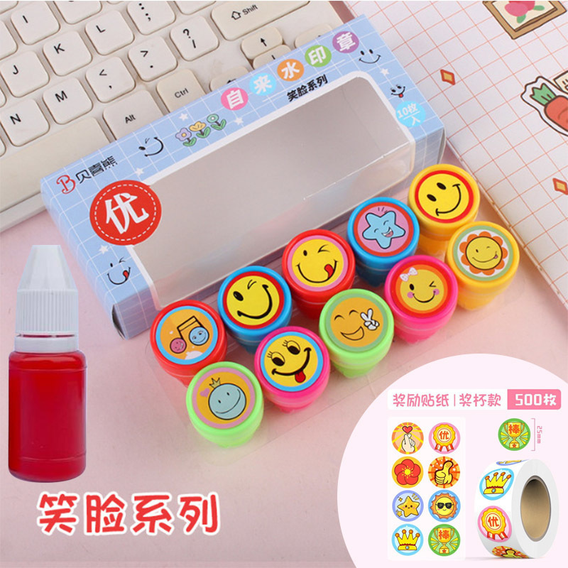 • 웃는 얼굴 스타일 10개 + 스티커 500개 + 잉크 - 학생들에게 동기를 부여하고 자신감을 높여줍니다. [교사에게 필요함]