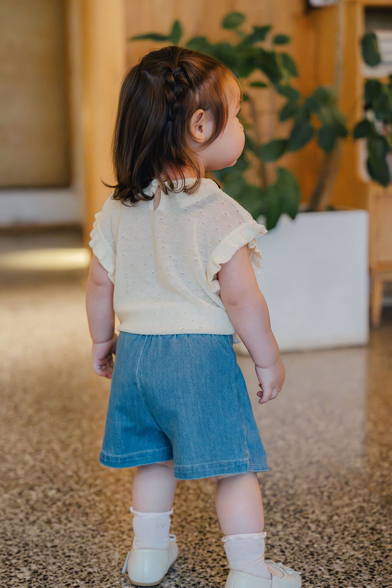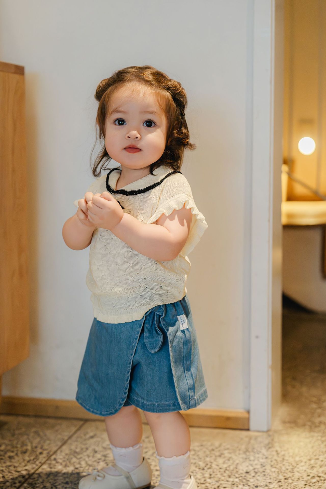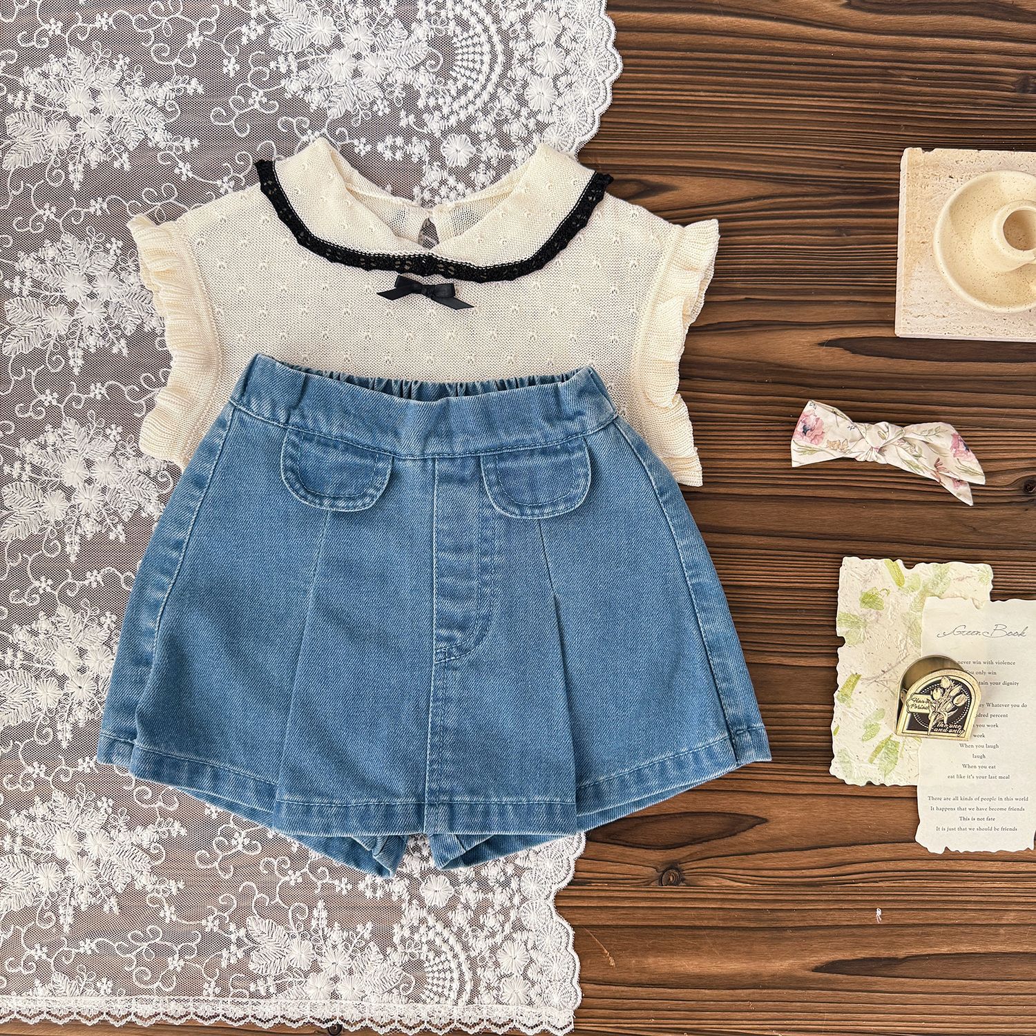 Cutemily 여름 아기 소녀 인형 칼라 니트 탑 아기 소녀 텐셀 중공 플라잉 슬리브 연꽃 잎 얇은 조끼