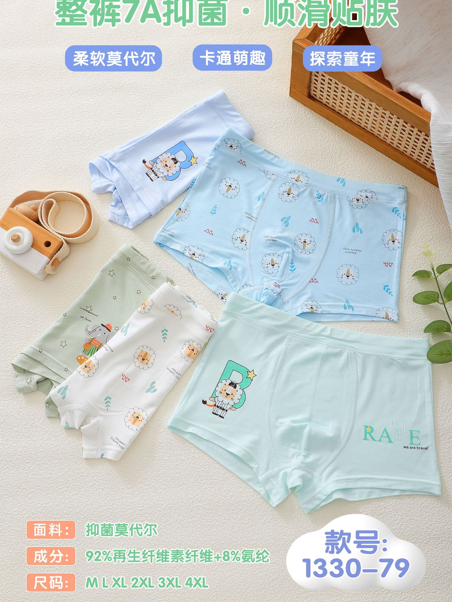 M-6XL 모달 러브 소년 복서 팬티 슈퍼 소프트 어린이 복서 팬티 편안한 1330