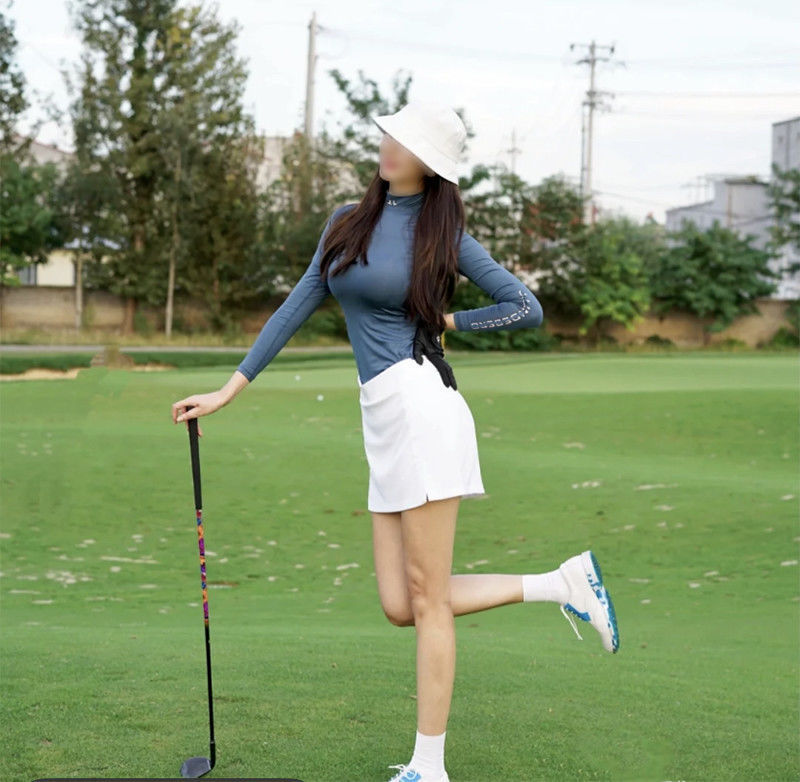 새로운 골프 여성 봄과 여름 의류 여성 야외 스포츠 패션 슬림 핏 캐주얼 긴팔 티셔츠 라운드 넥