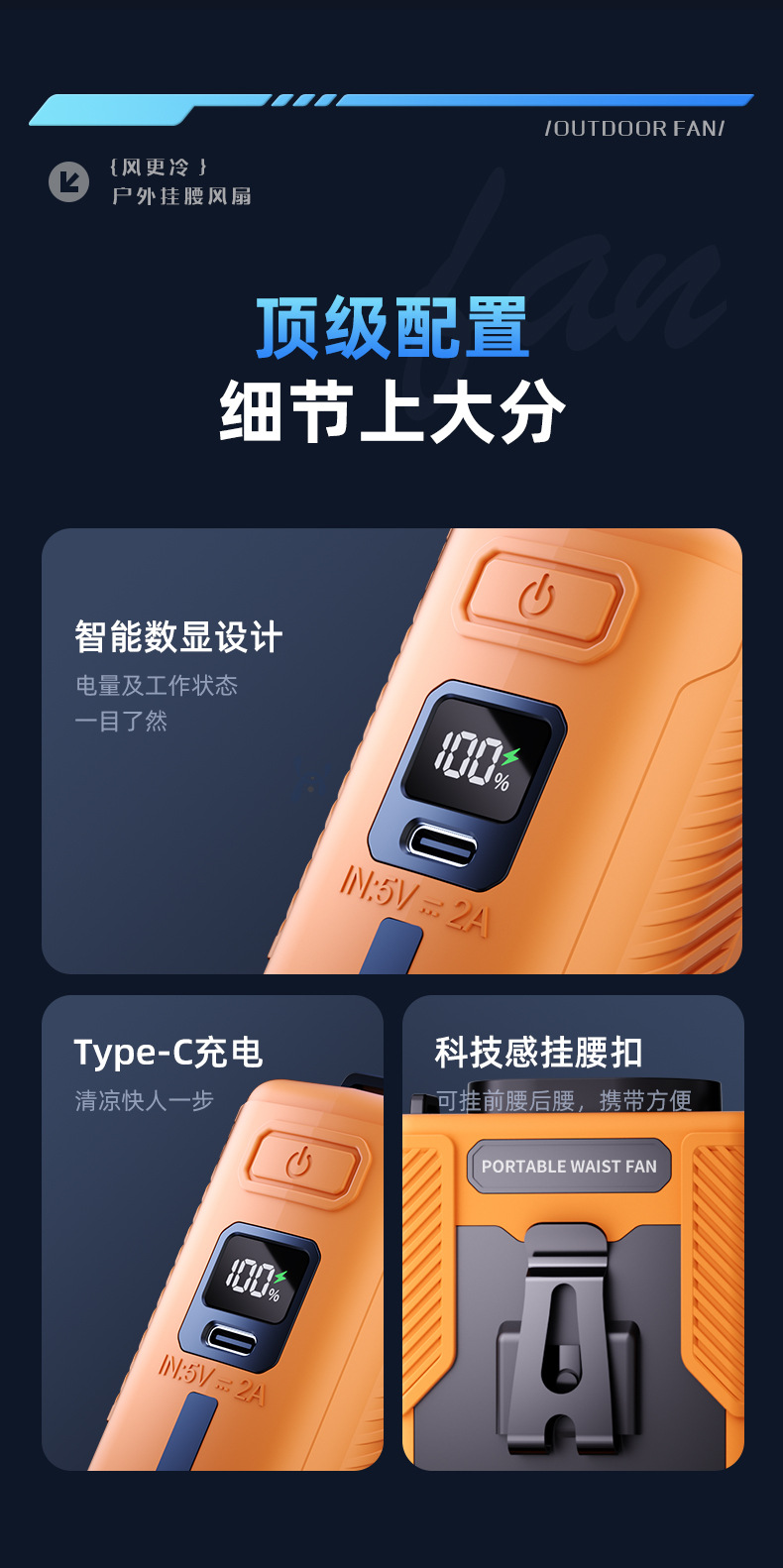 야외 휴대용 허리 냉각 팬 사이트 허리 냉각 유물 여름 여름 주방 긴 내구성 냉동