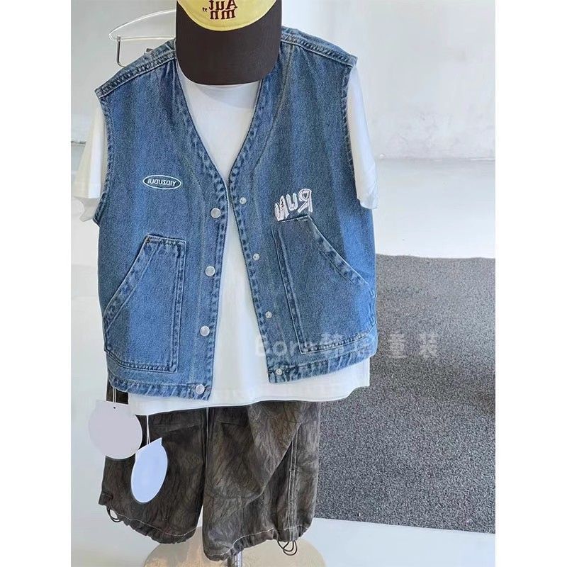 아동 조끼 여름 얇은 소년 조끼 봄 여름 2025 새로운 데님 조끼 유행 아기 재킷 유행스토어 가기