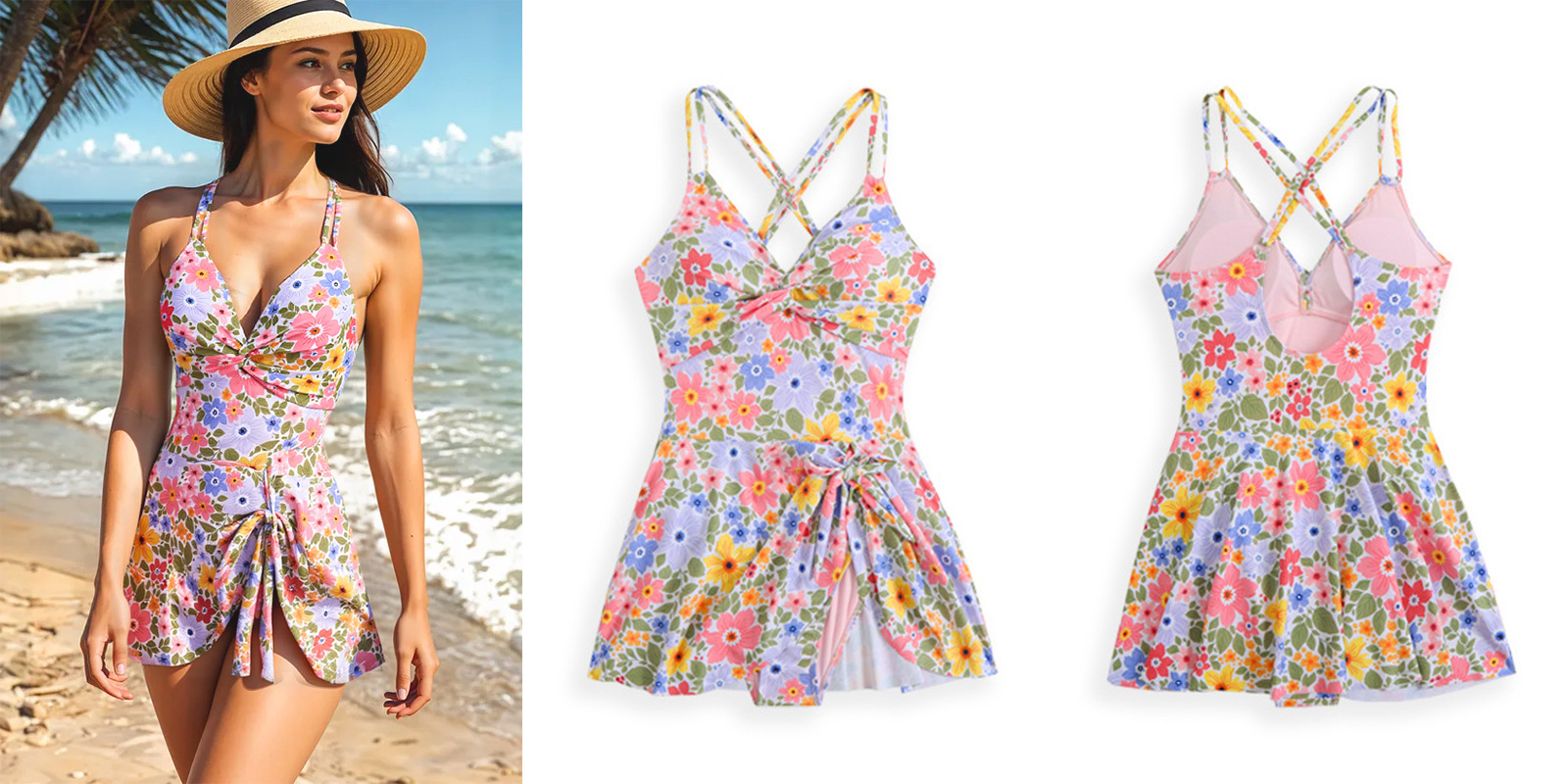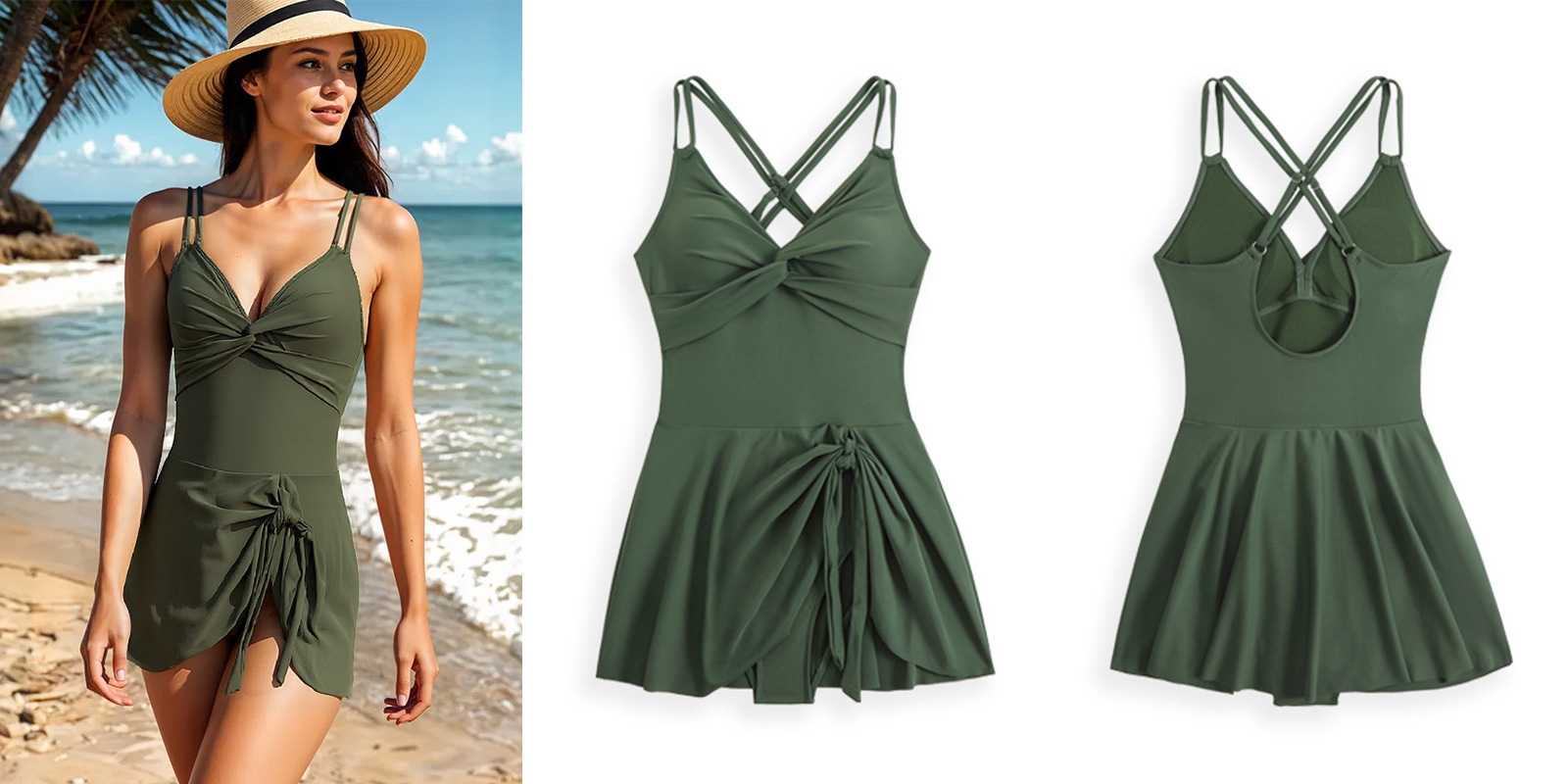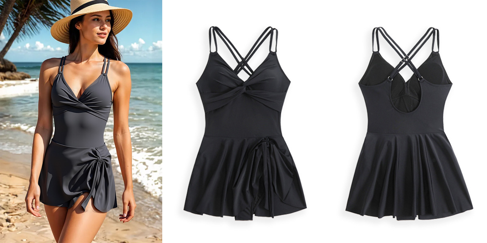 2025 새로운 스타일 트위스트 크로스 스커트 원피스 수영복 인기 대외 무역 수영복 Amazon 여성용 원피스 수영복