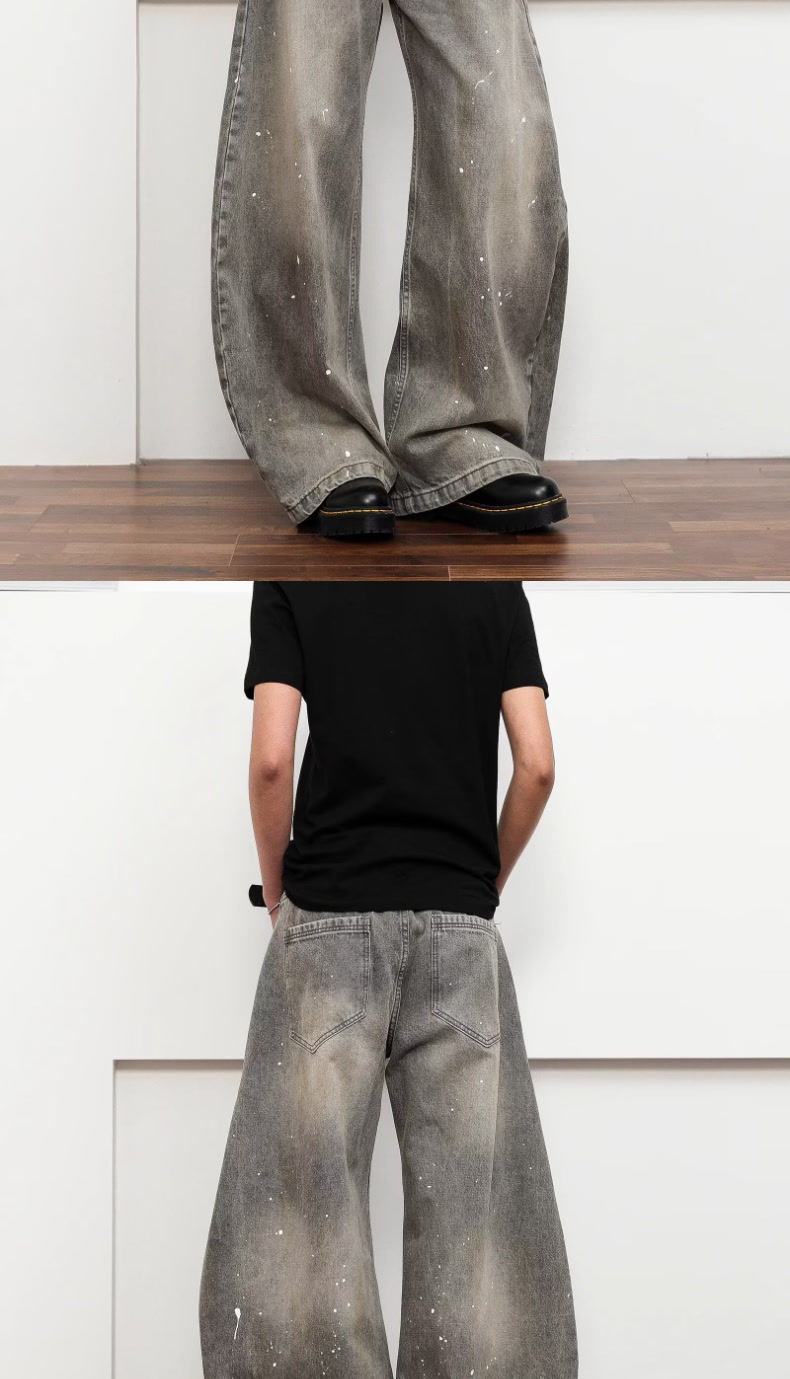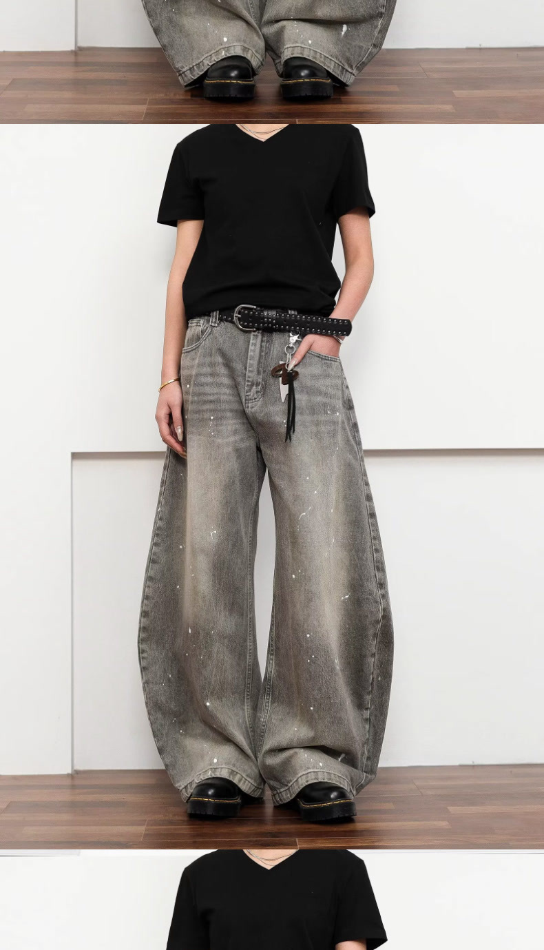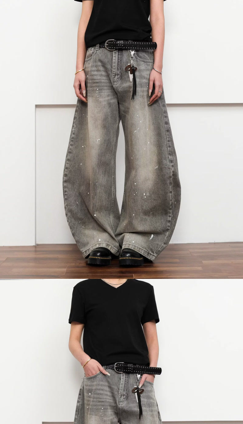 여성을위한 오래된 복고풍 크로스 프린트 와이드 레그 청바지 2025 가을, 겨울 틈새 디자인 하이 웨이스트 슬림 바지스토어 가기