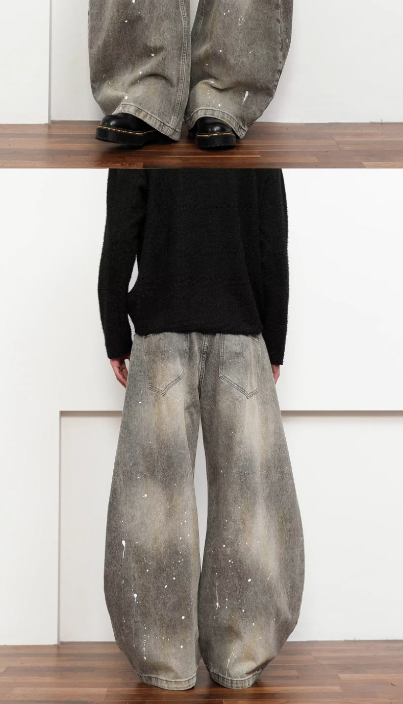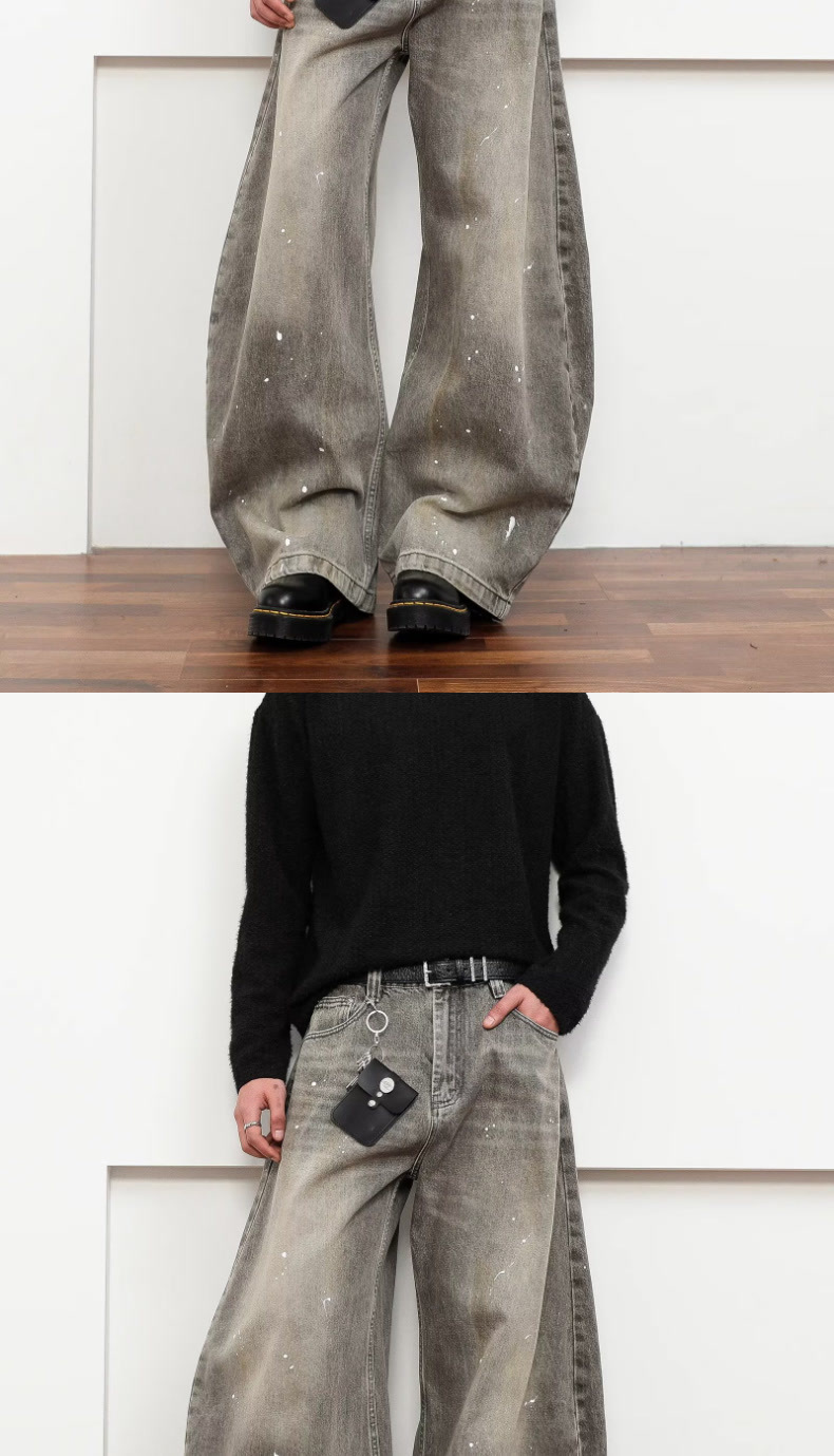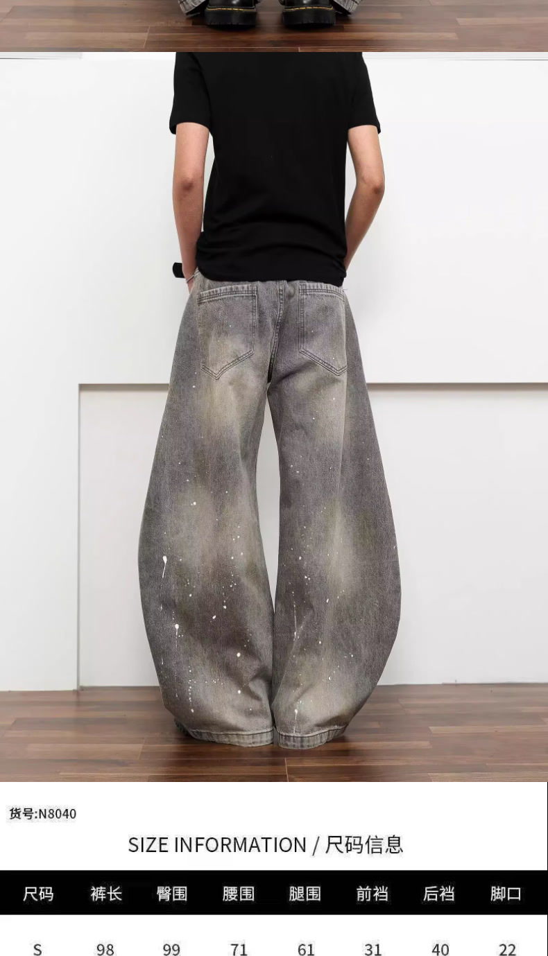 여성을위한 오래된 복고풍 크로스 프린트 와이드 레그 청바지 2025 가을, 겨울 틈새 디자인 하이 웨이스트 슬림 바지스토어 가기