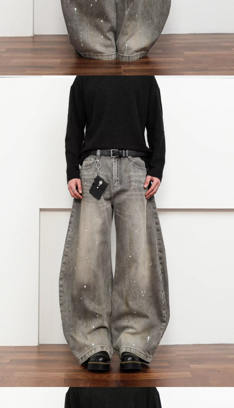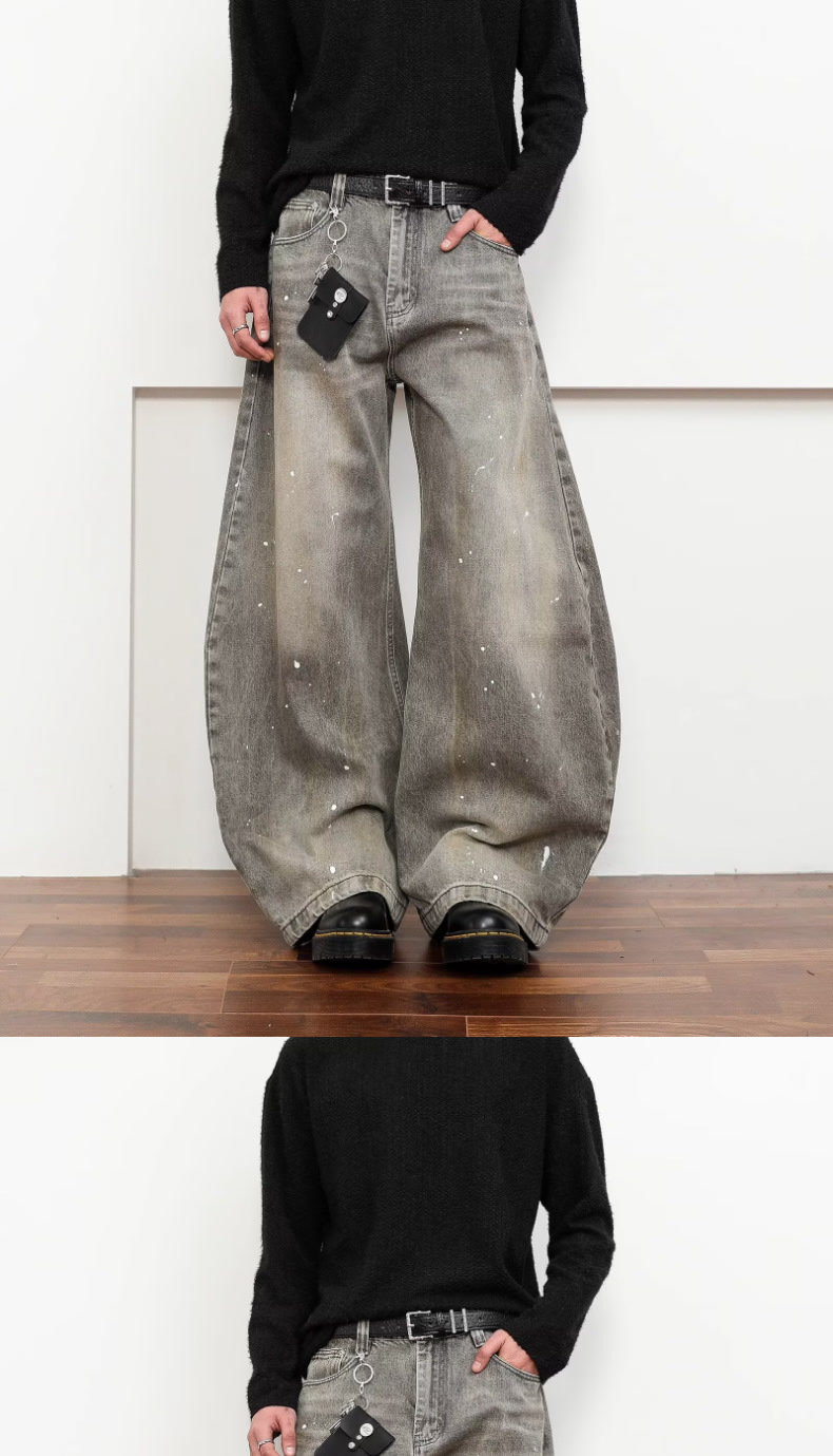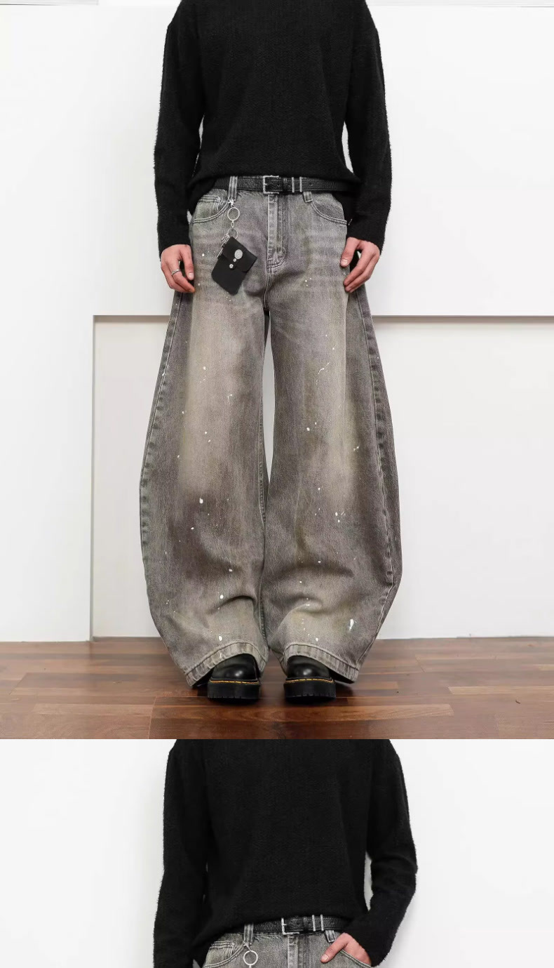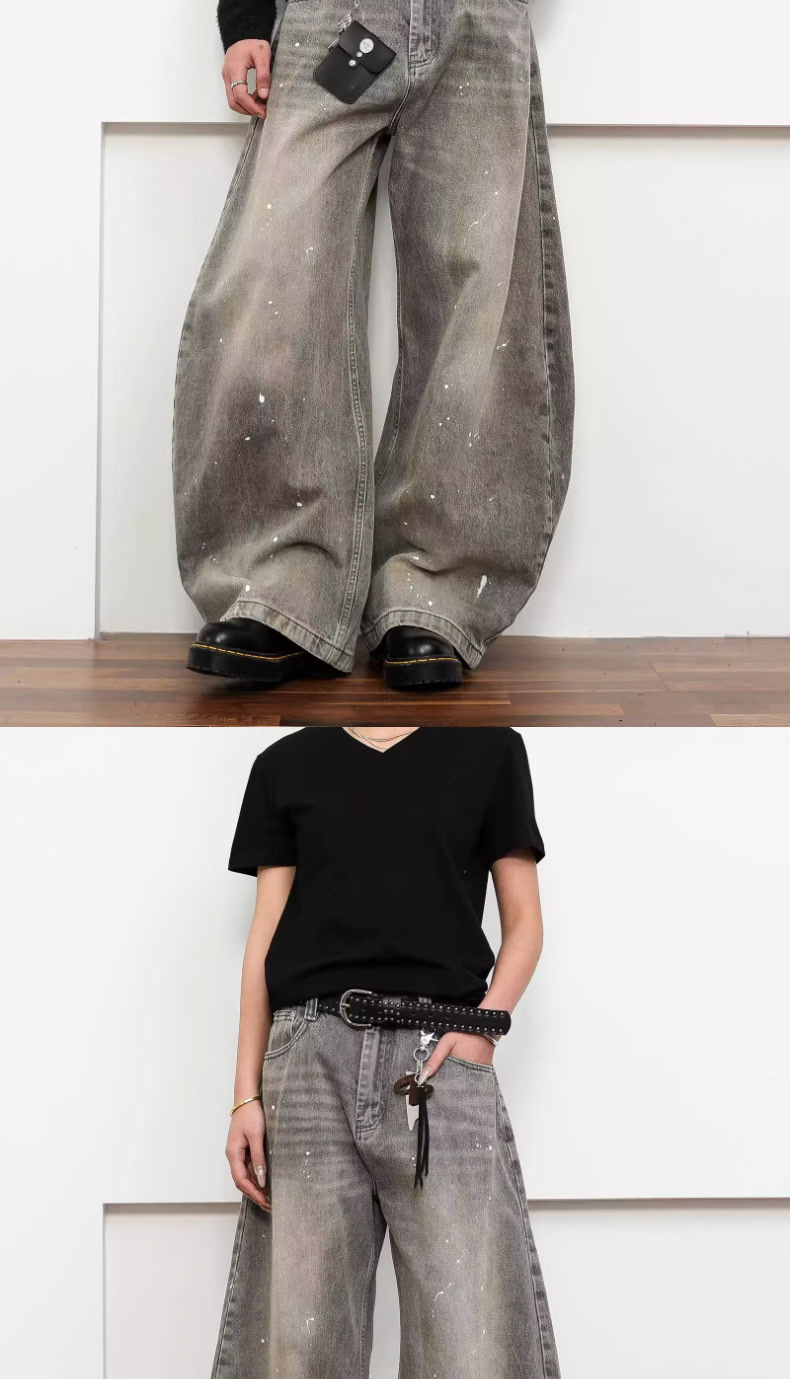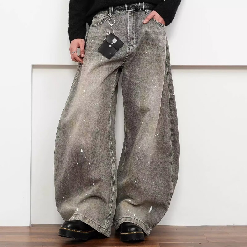 여성을위한 오래된 복고풍 크로스 프린트 와이드 레그 청바지 2025 가을, 겨울 틈새 디자인 하이 웨이스트 슬림 바지