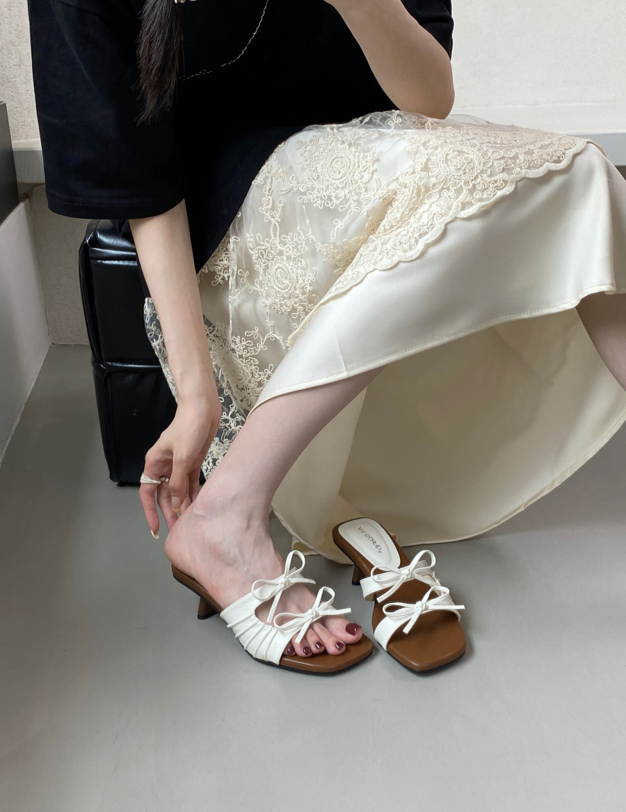 여성용 여름 아우터용 한국식 보우 비치 샌들 2025 여름 아우터 프렌치 스퀘어 토 오픈 토스토어 가기