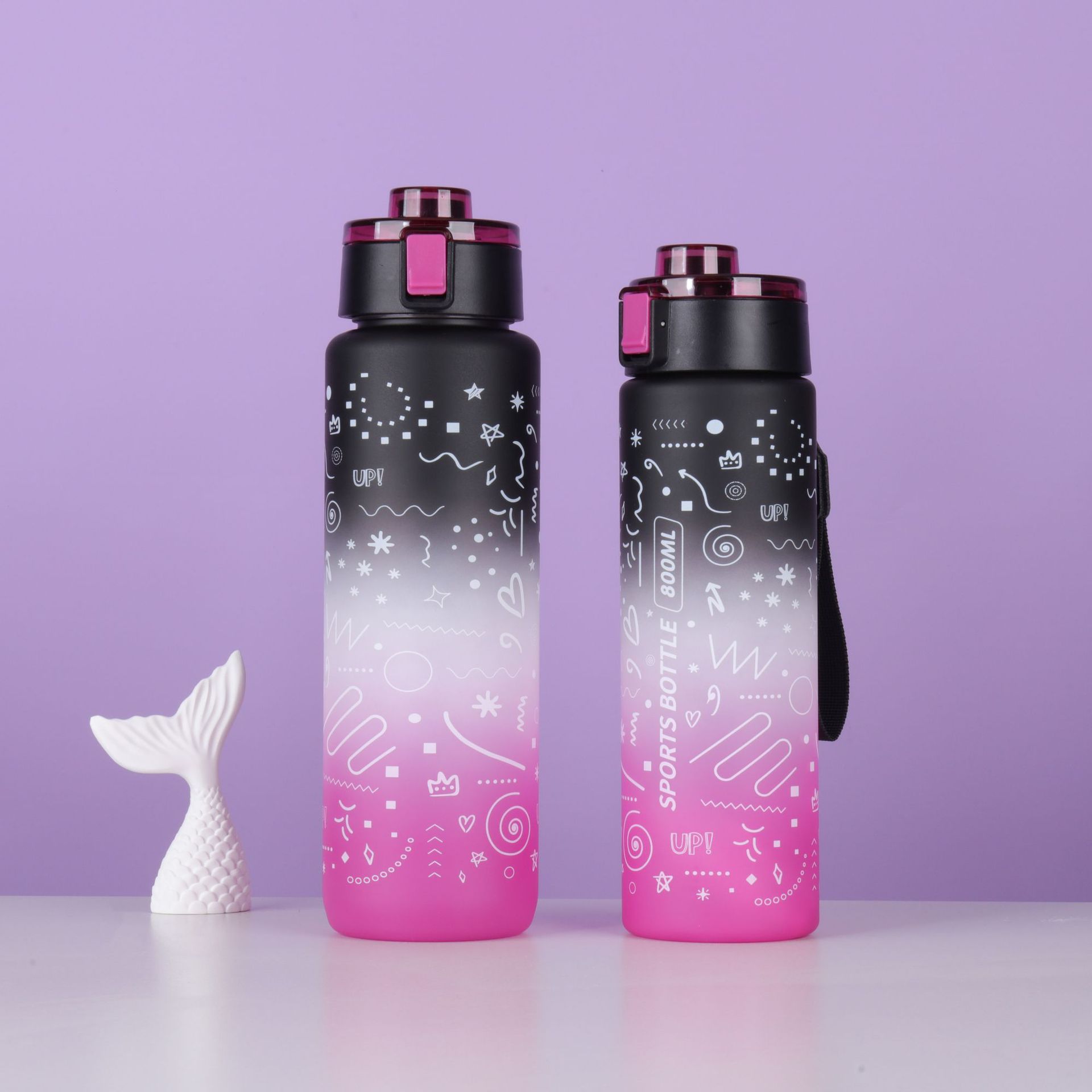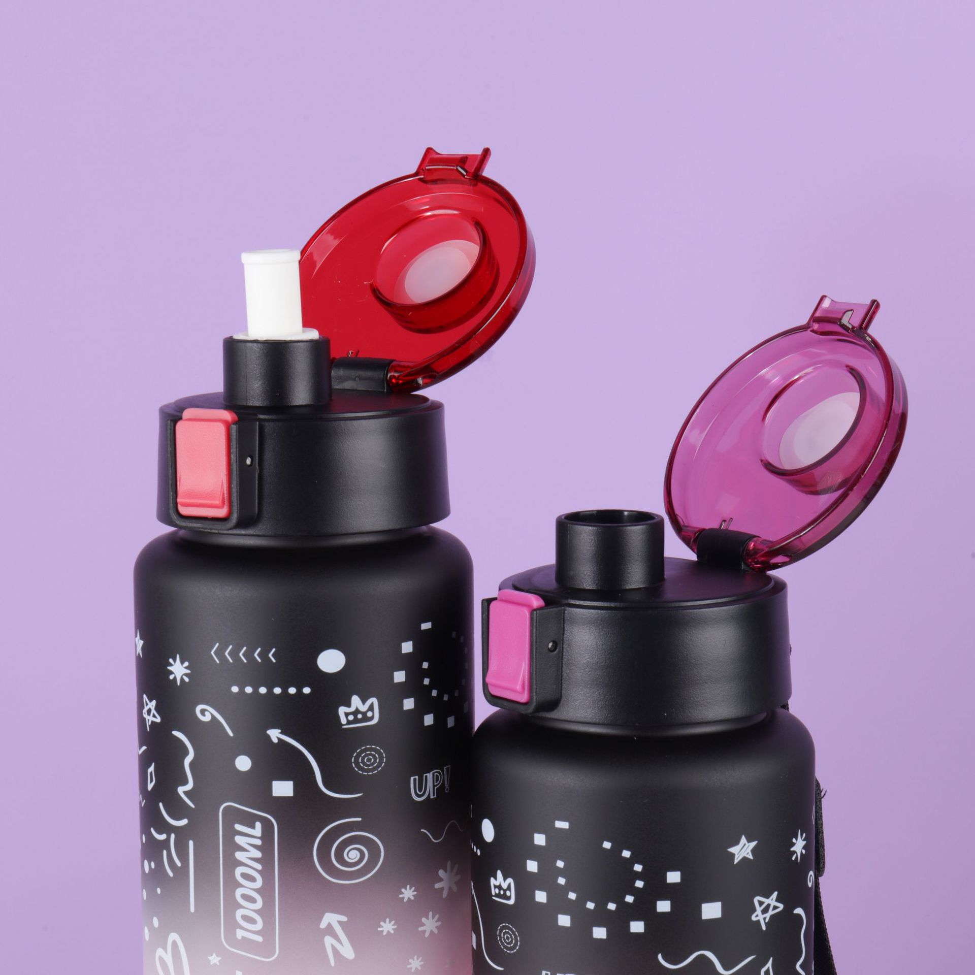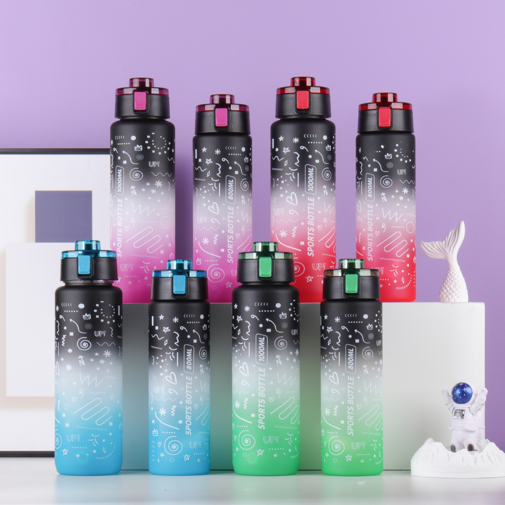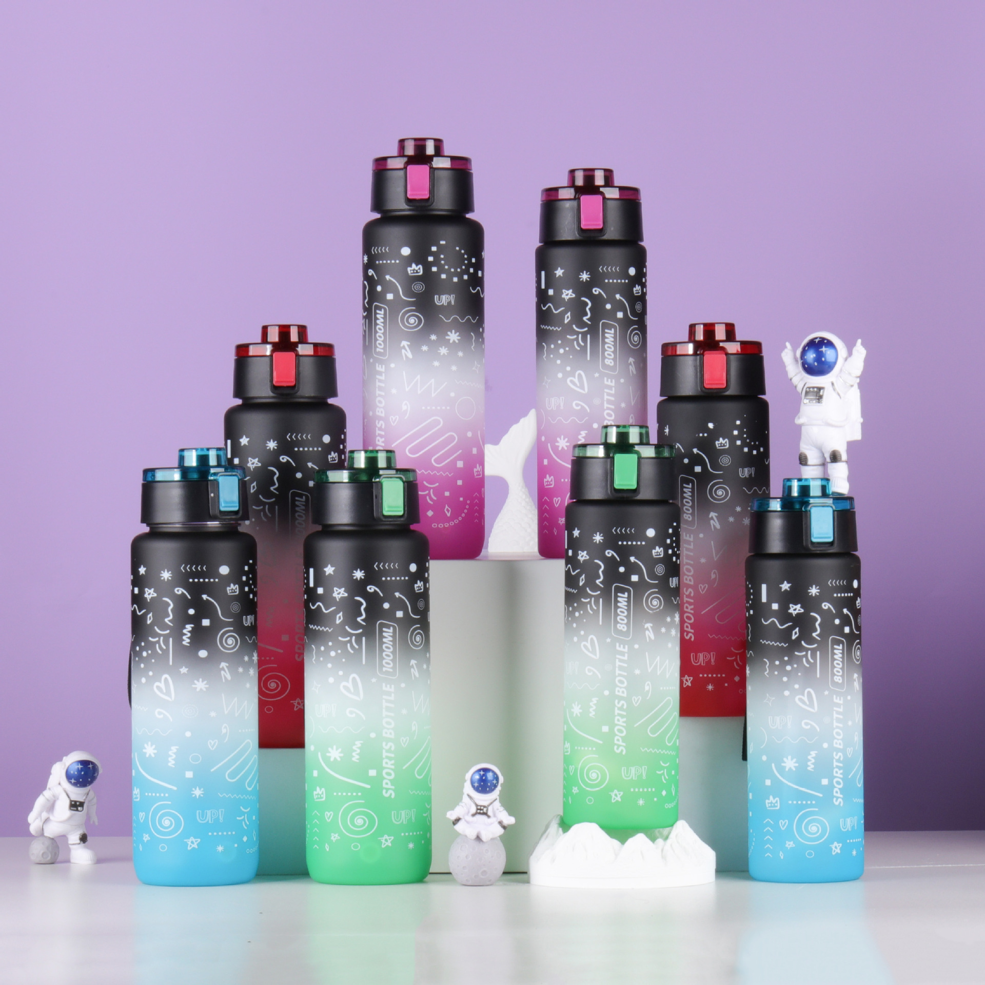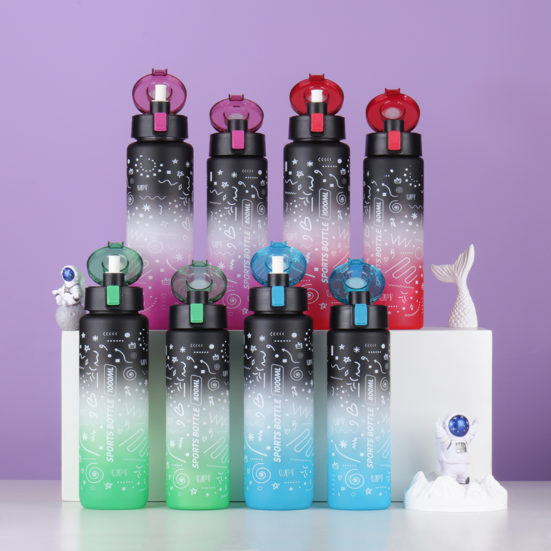 새로운 우주 컵 그라디언트 대용량 스포츠 물 컵 학생 컵 플라스틱 물 컵 흡입 튜브 컵 플라스틱 컵 뚜껑