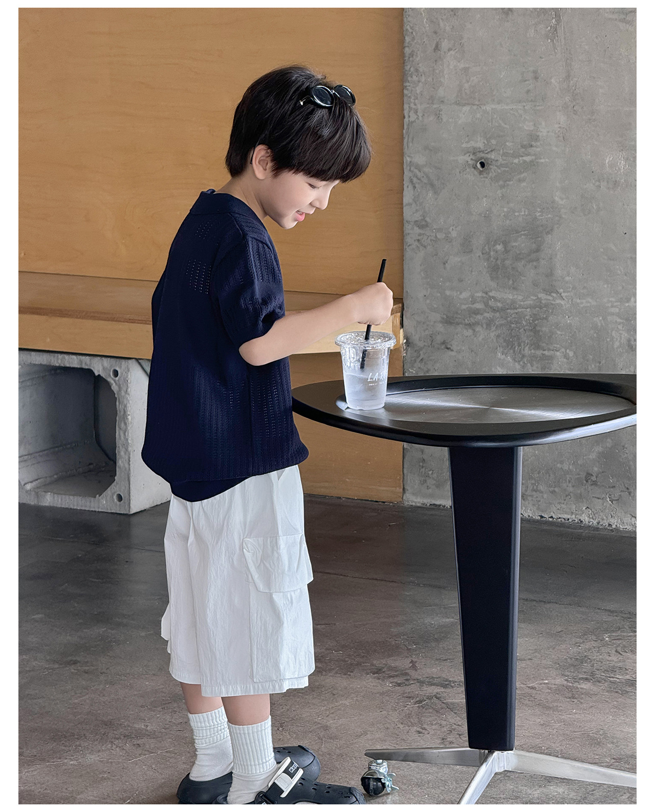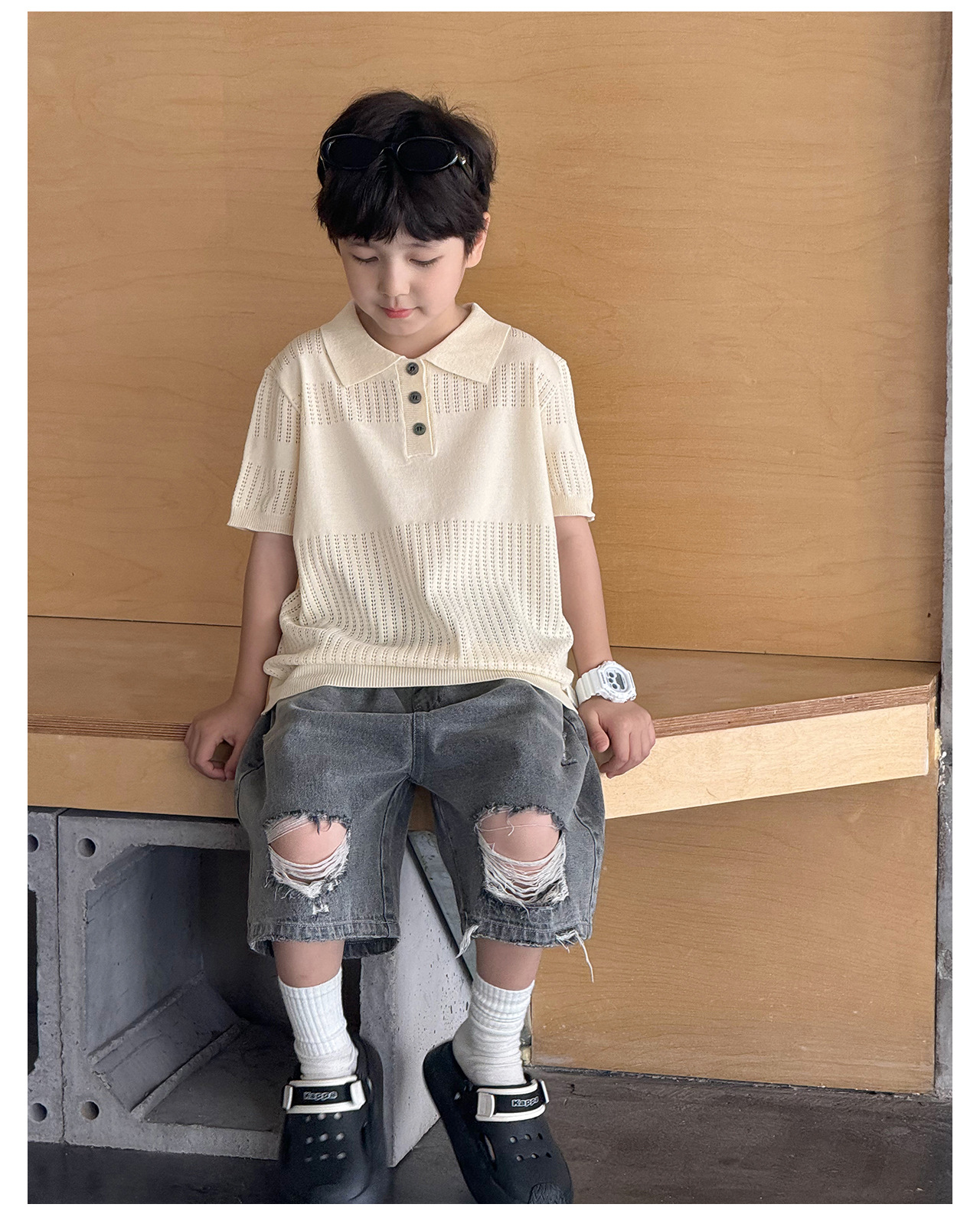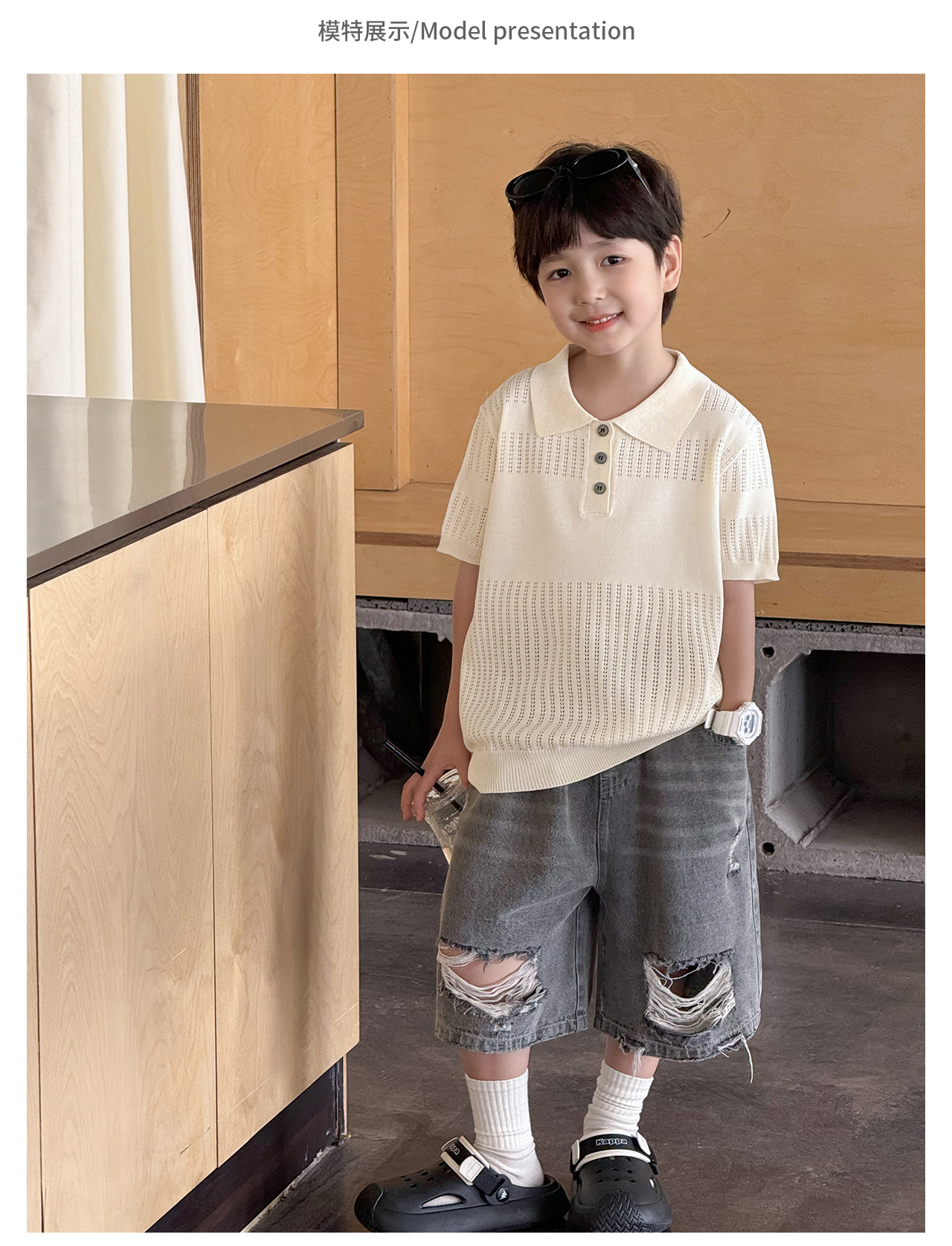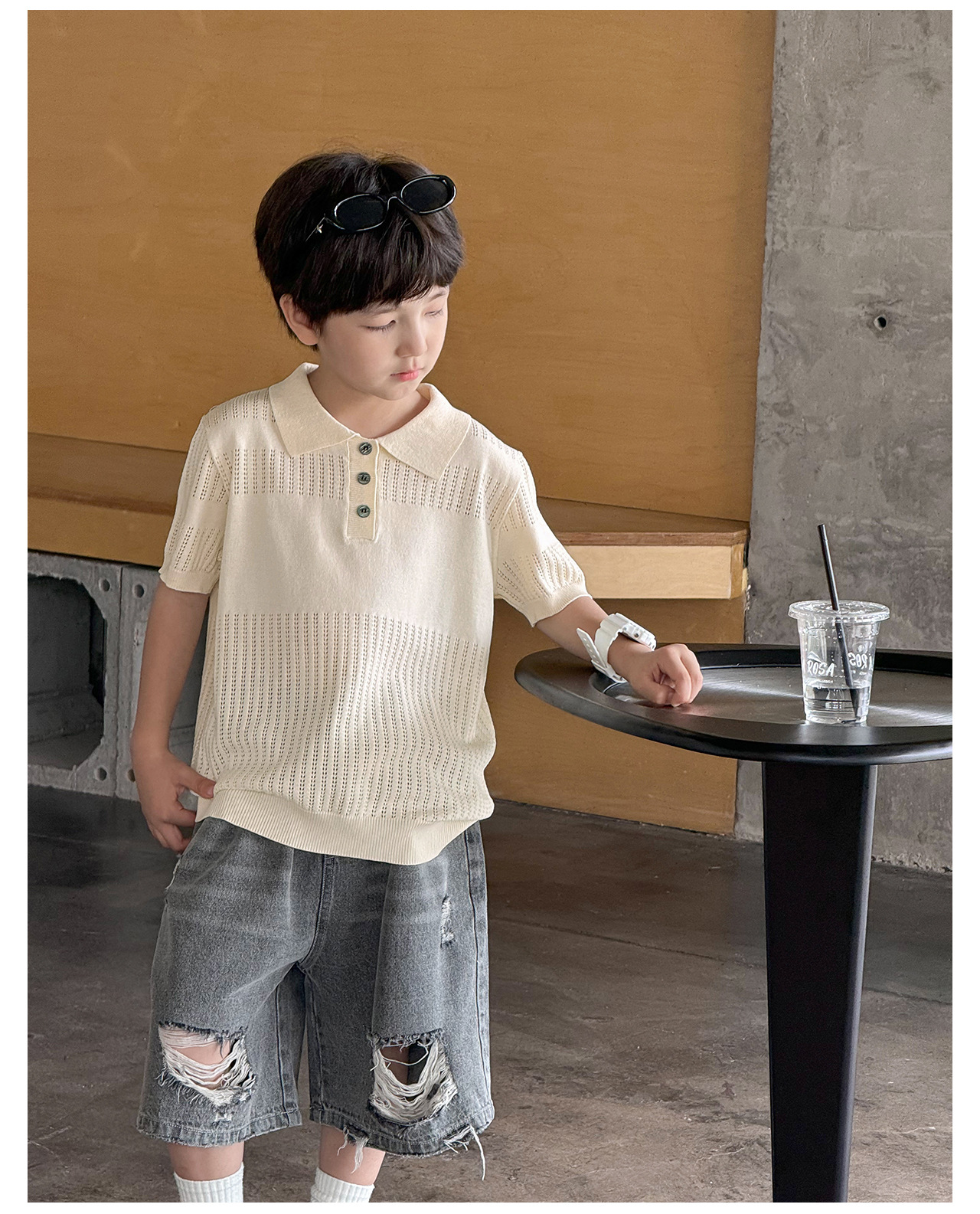 Tongku 2025 소년 여름 스타일 Huzhou Zhili 아동 의류 폴로 칼라 아이스 실크 니트 스웨터 아동용 반팔 티셔츠스토어 가기
