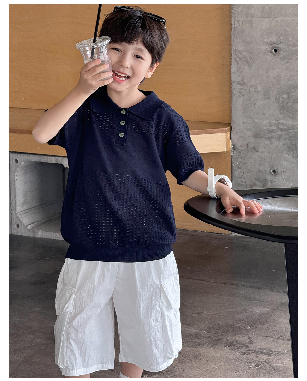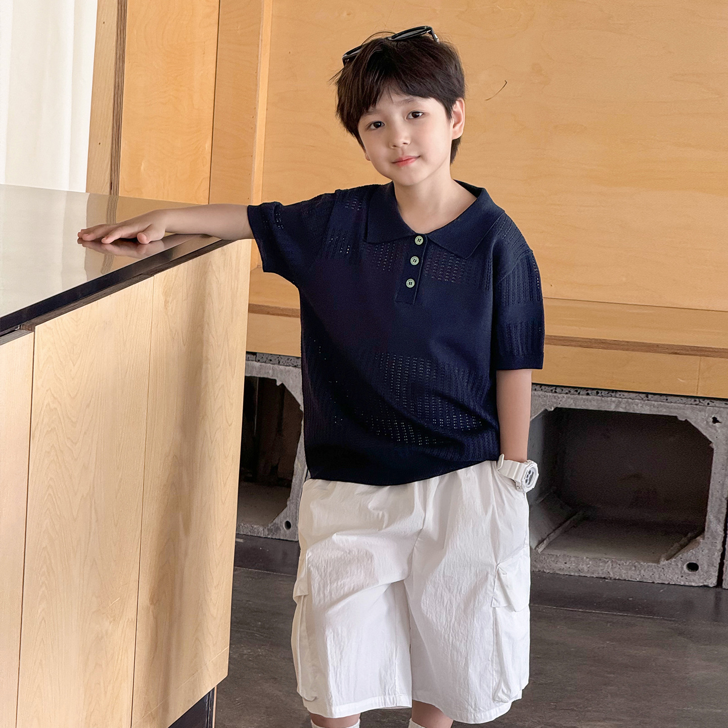 Tongku 2025 소년 여름 스타일 Huzhou Zhili 아동 의류 폴로 칼라 아이스 실크 니트 스웨터 아동용 반팔 티셔츠
