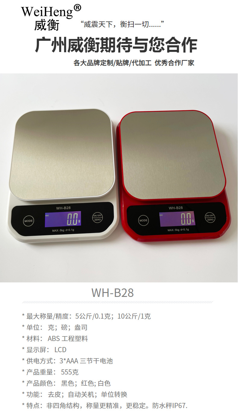 WeiHeng Weiheng B28 방수 베이킹 스케일 0.1g 국내 대형 전자 상거래 주방 규모 공급 업체