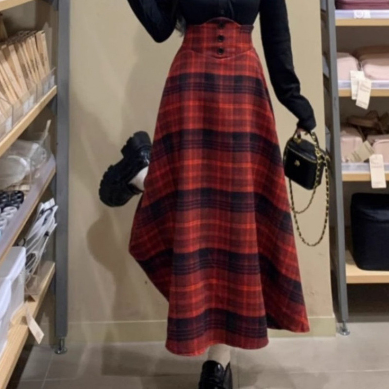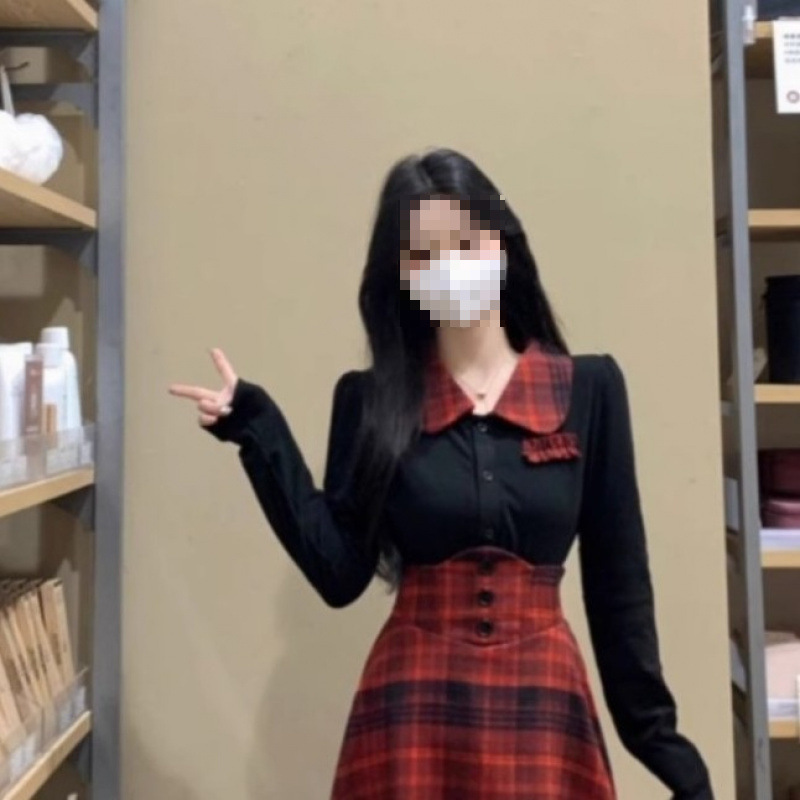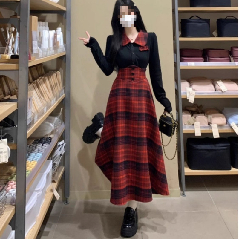 플러스 사이즈 대학 스타일 핫 소녀 패션 정장 여성 가을, 겨울 뚱뚱한 격자 무늬 스플 라이스 셔츠 + 격자 무늬 튜닉 스커트 세트스토어 가기