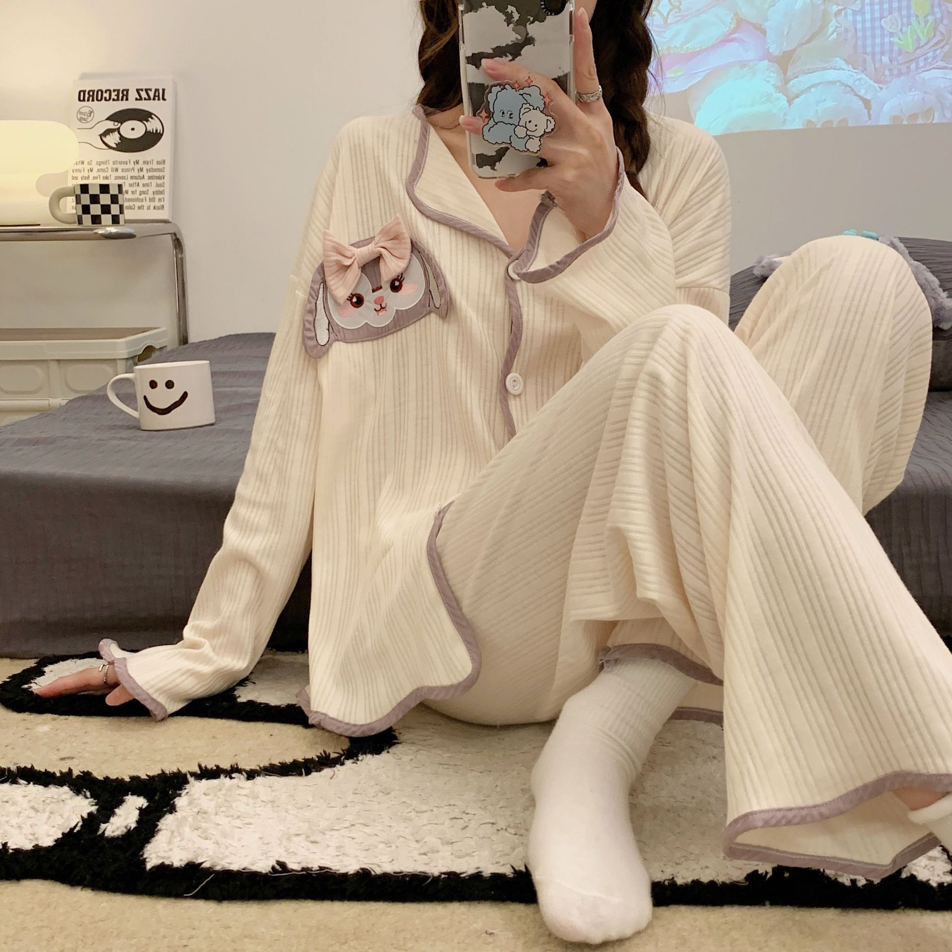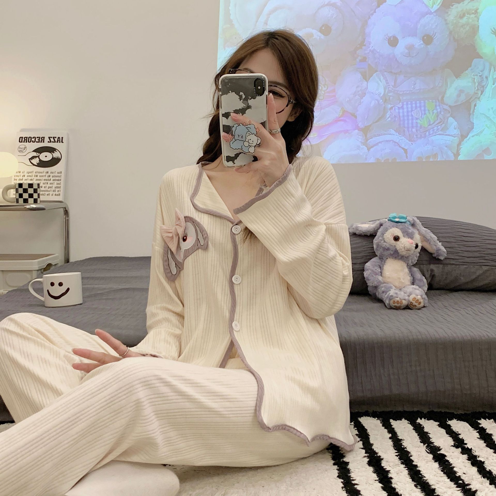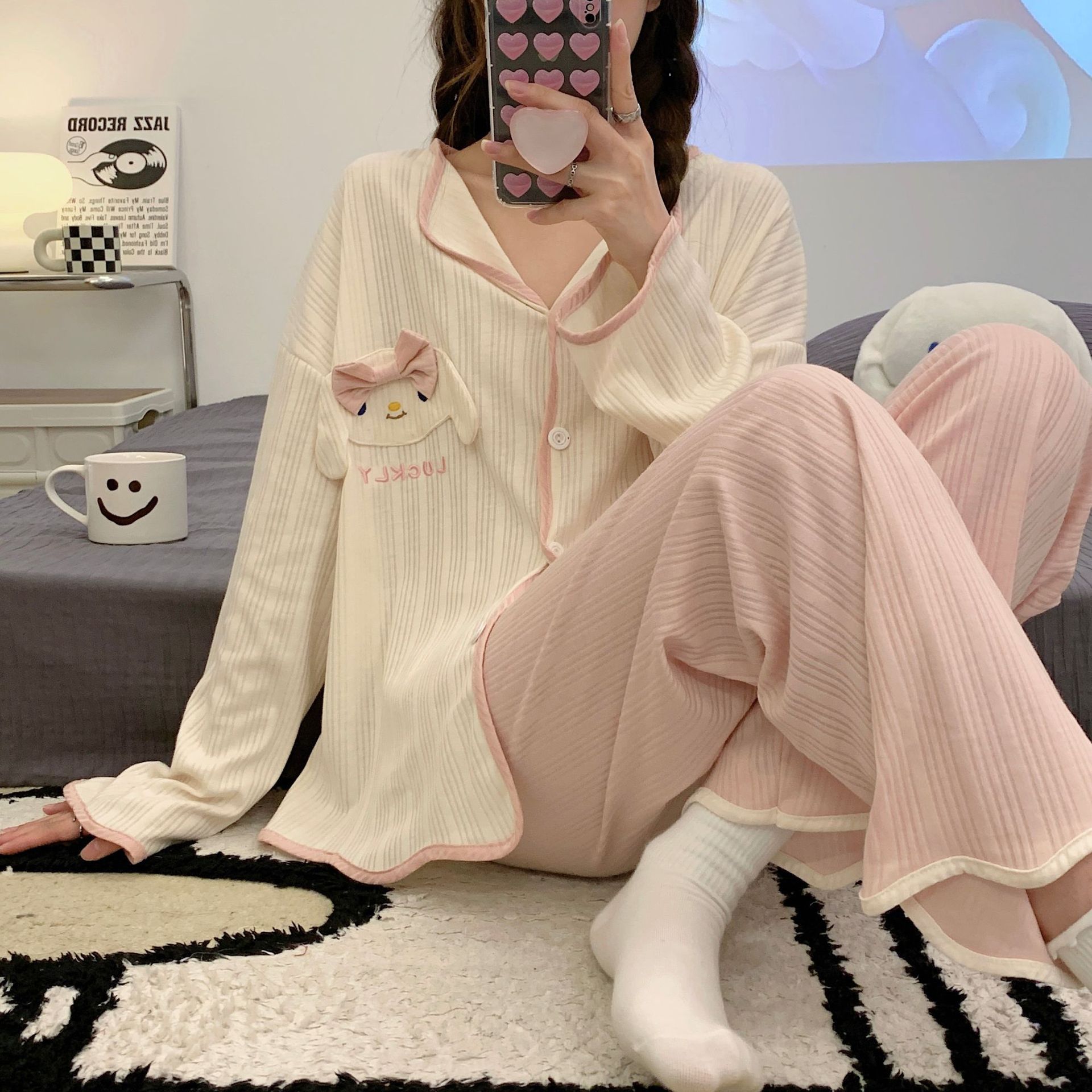 국경 간 파자마 여성 여름 반팔 반바지 옥 구이 개 자수 활 귀여운 소녀의 느슨한 집 옷 세트스토어 가기