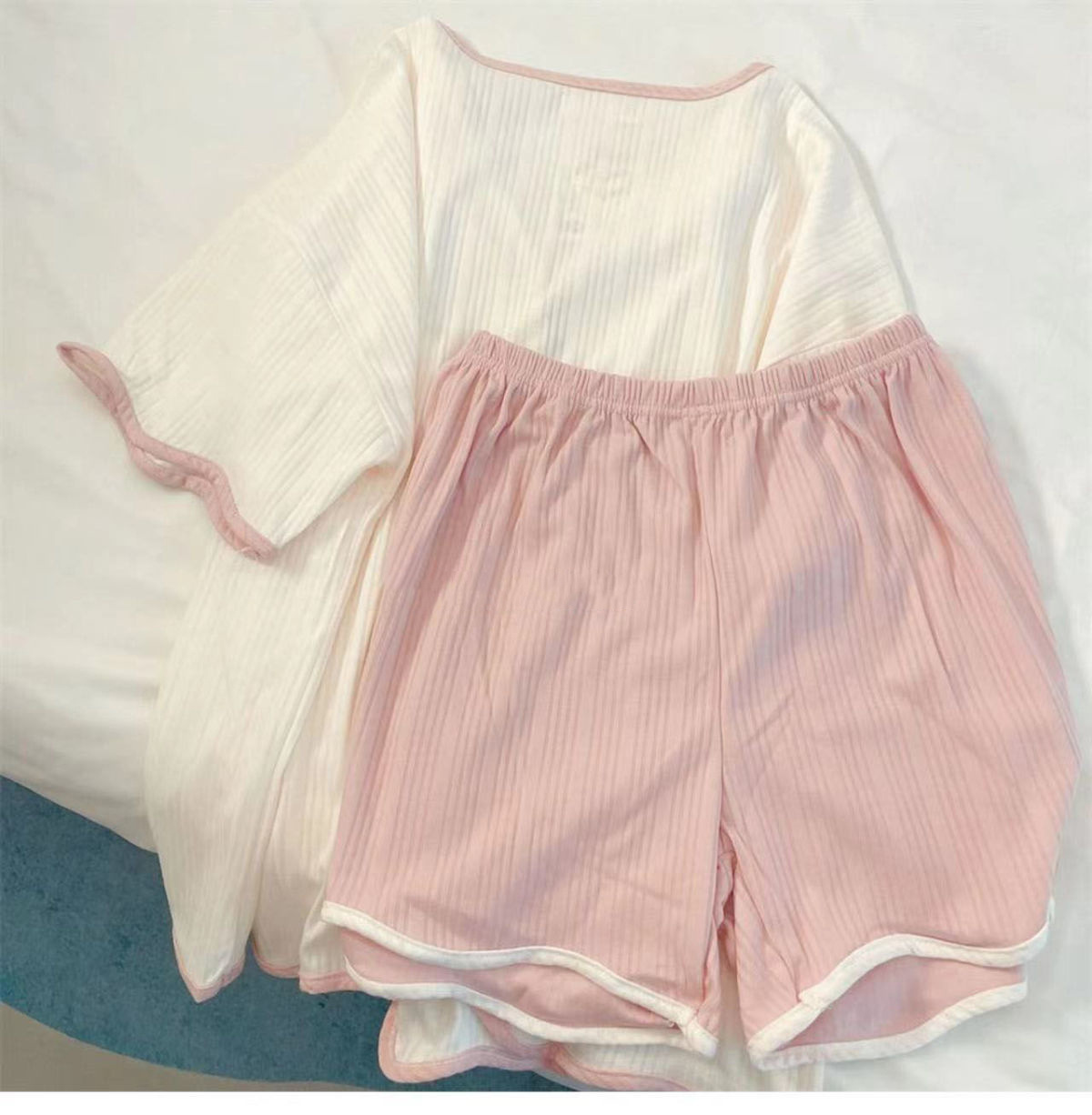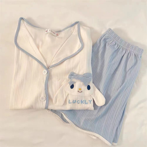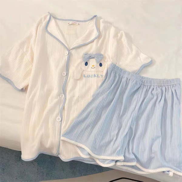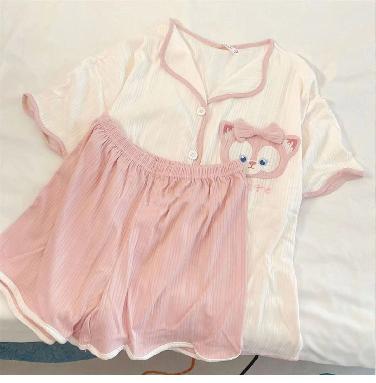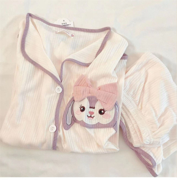 국경 간 파자마 여성 여름 반팔 반바지 옥 구이 개 자수 활 귀여운 소녀의 느슨한 집 옷 세트