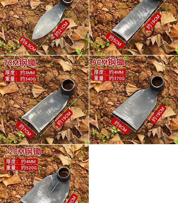 야채와 꽃을 심을 수 있는 두꺼운 단조 괭이, 땅을 파는 데 특별히 사용되는 농업용 괭이, 죽순과 동충하초를 파는 데 특별히 사용되는 작은 괭이