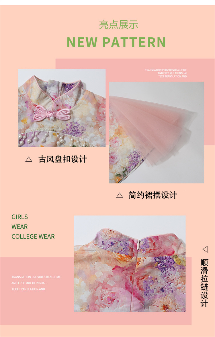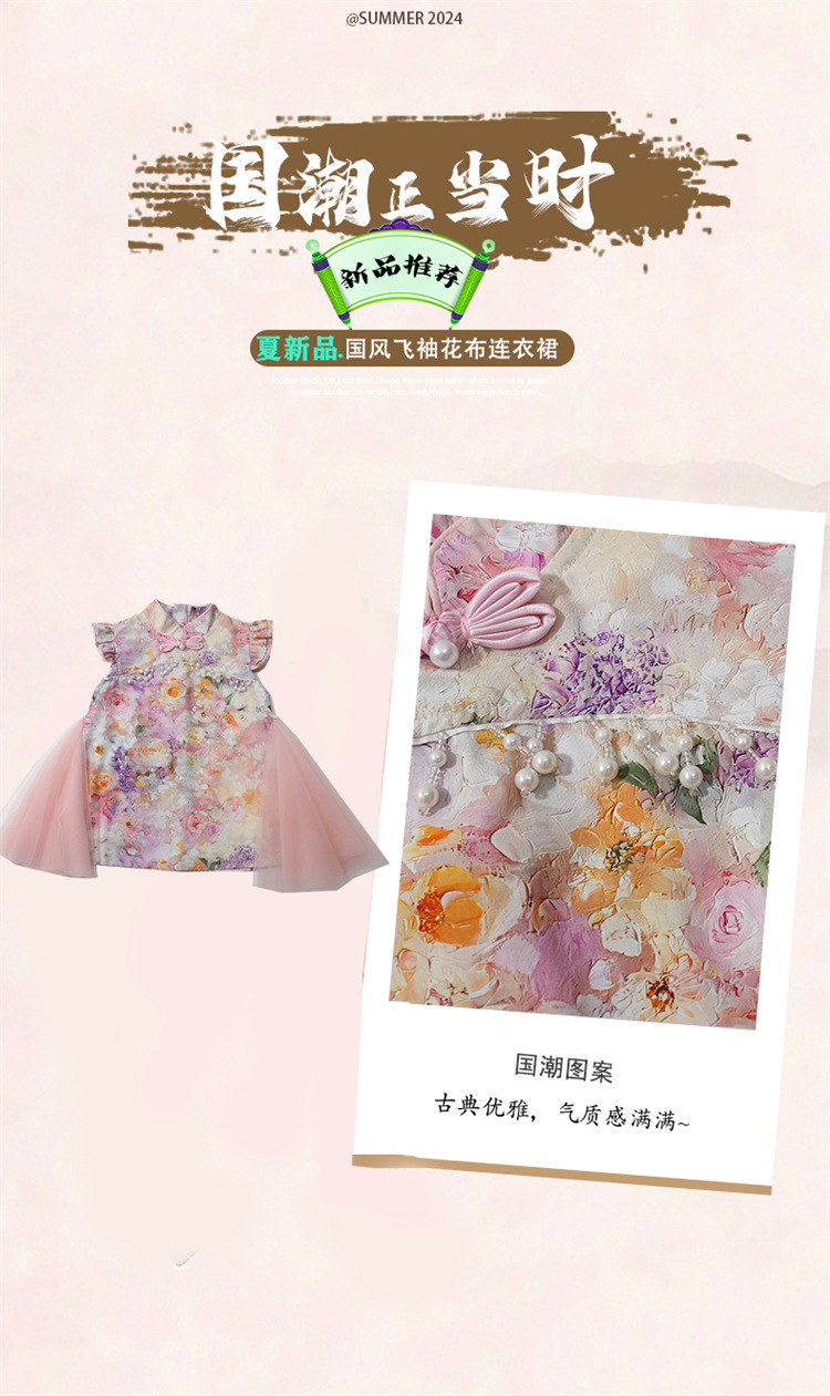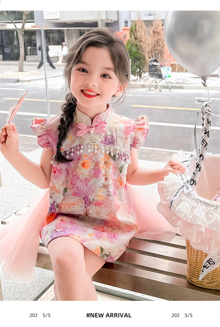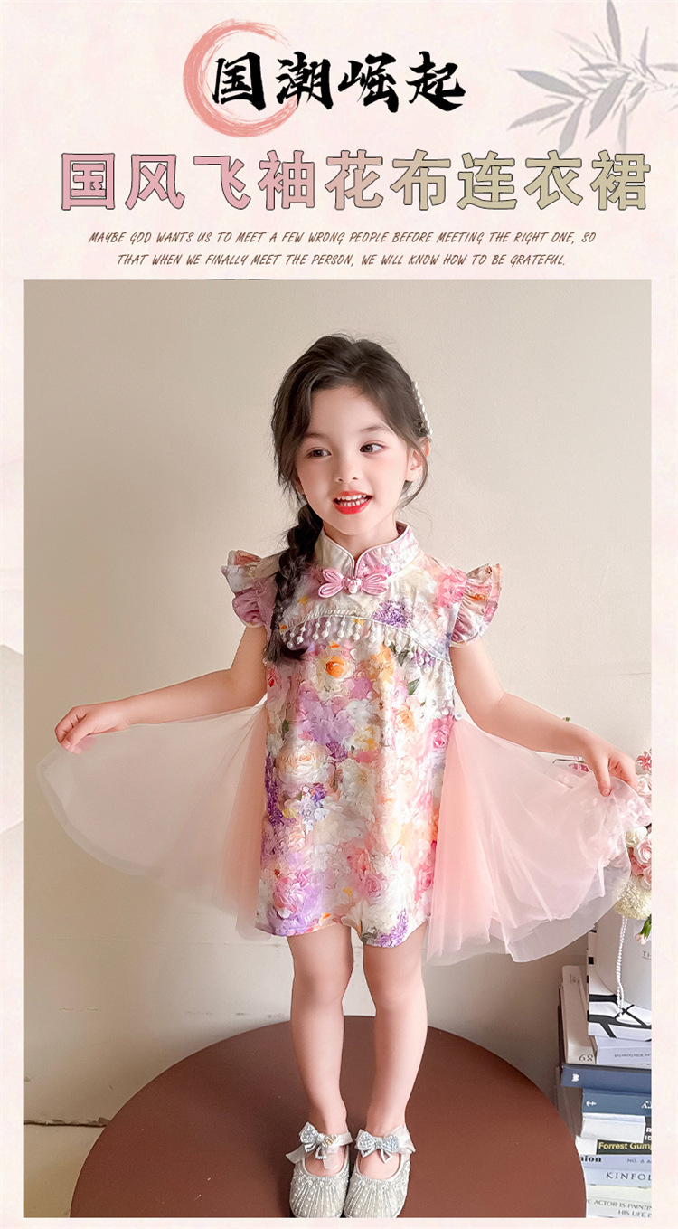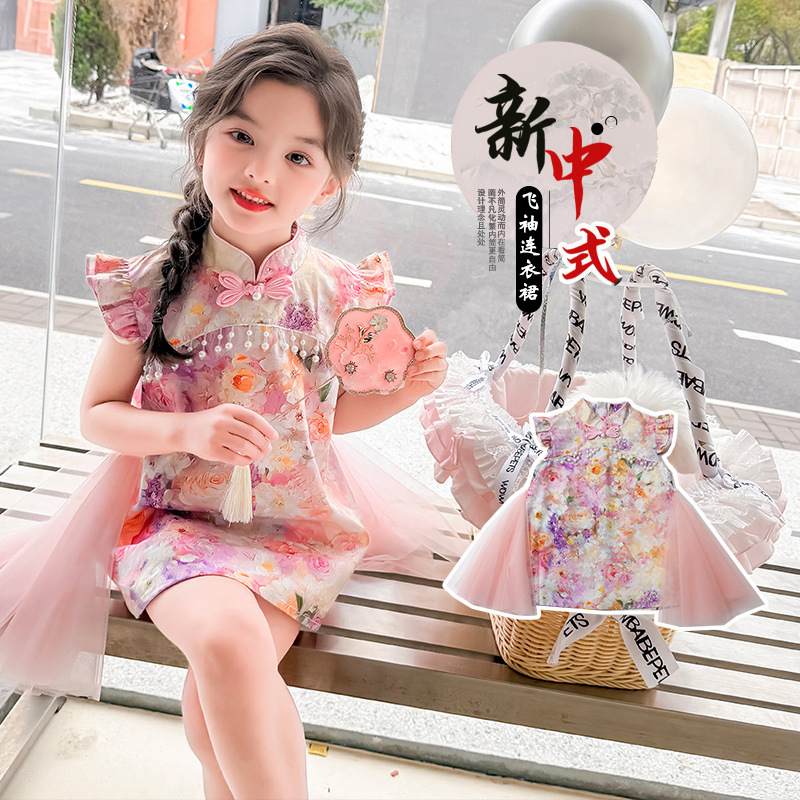여자 구펑 플라잉 슬리브 청삼 스커트 2025 여름 새로운 패션 어린 소녀 세련된 원피스 어린이 치마스토어 가기