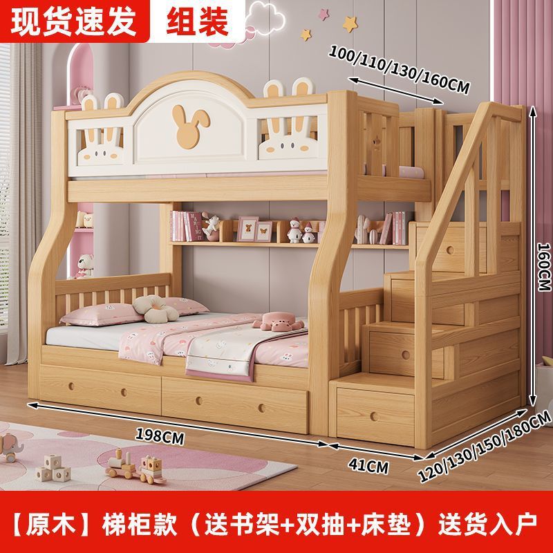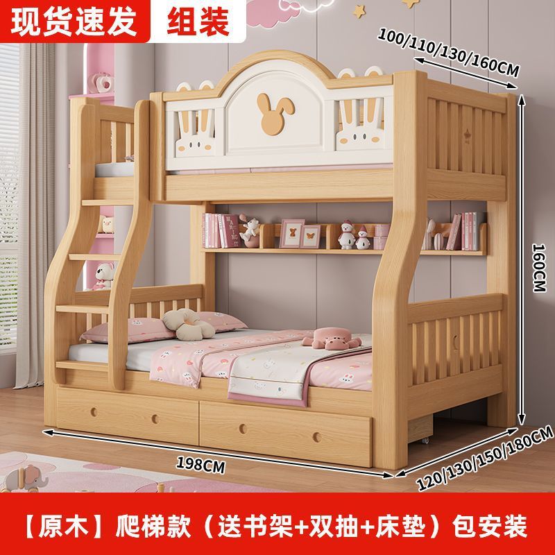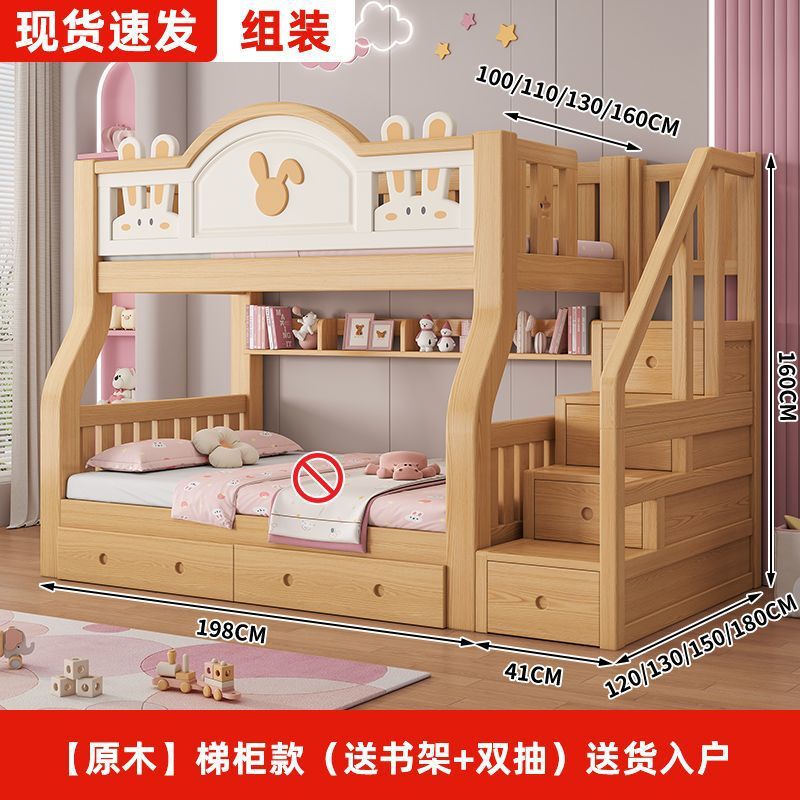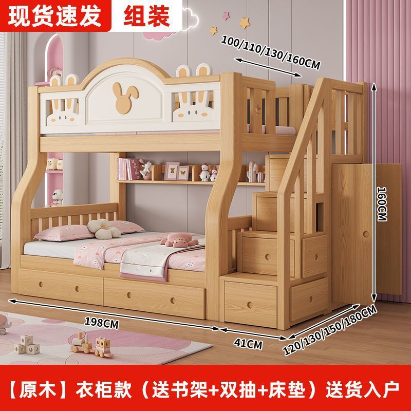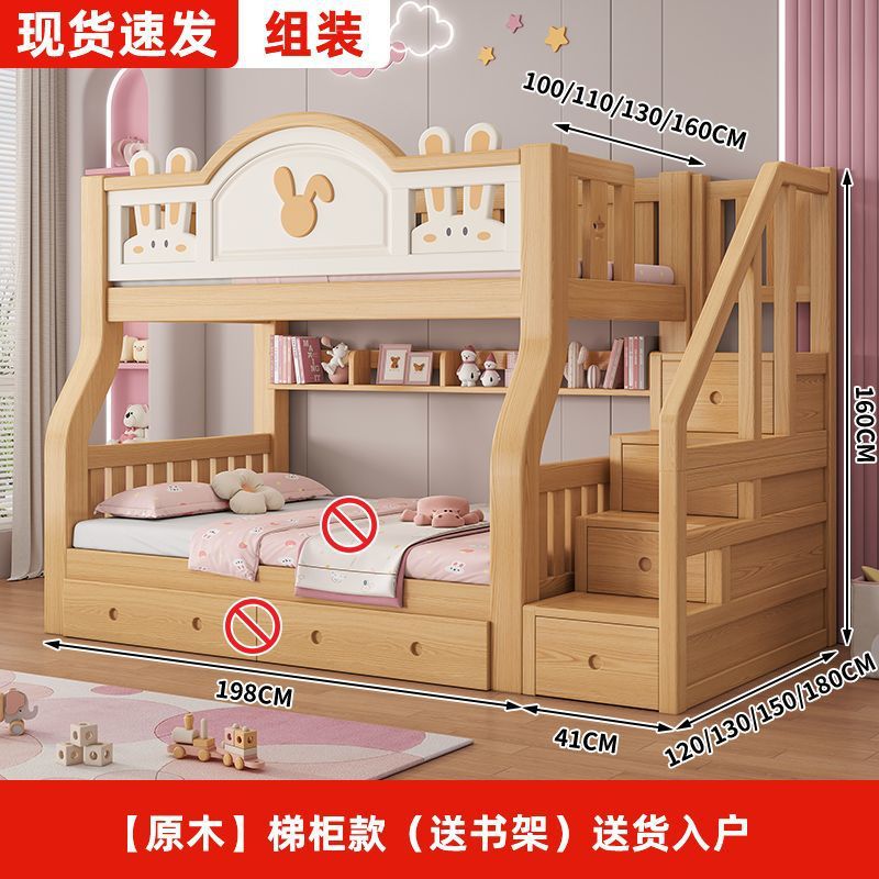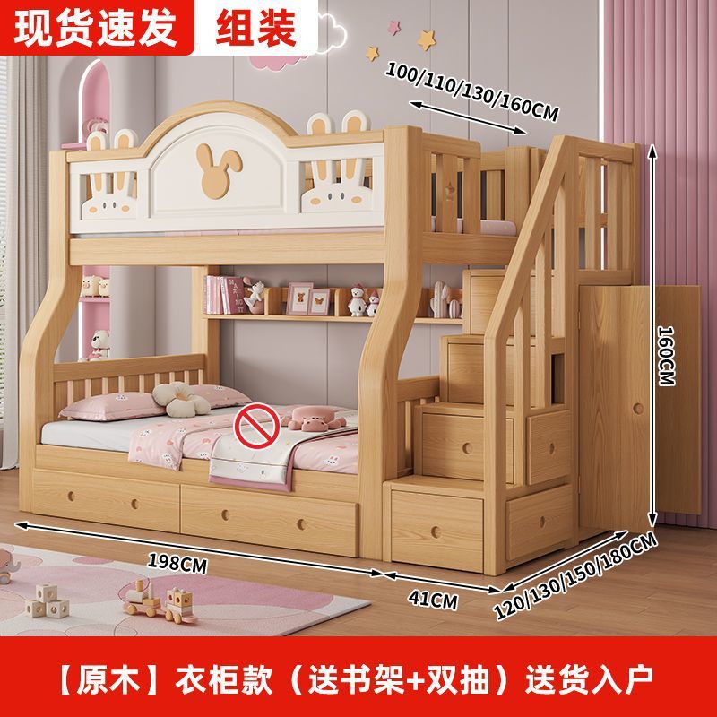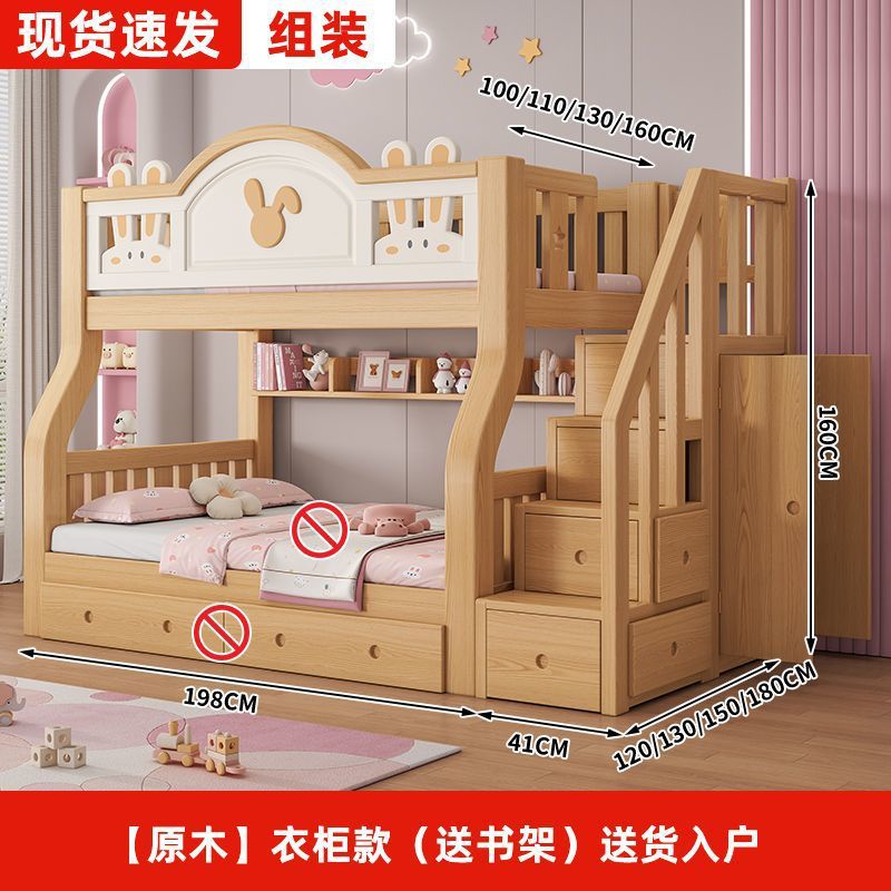 원목 어린이 이층침대, 어린이침대, 이층침대, 2층 소형 고저목재침대, 이층침대