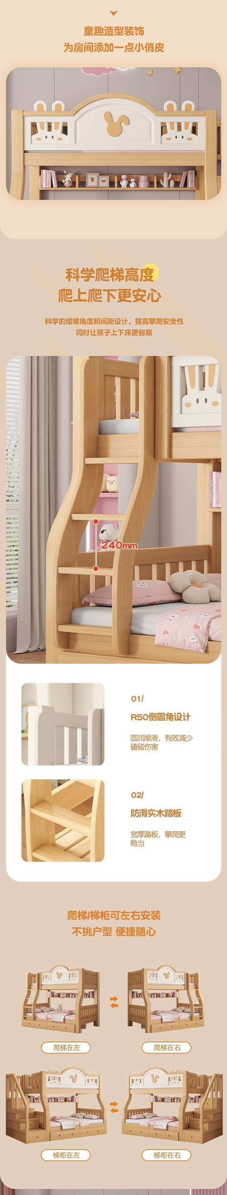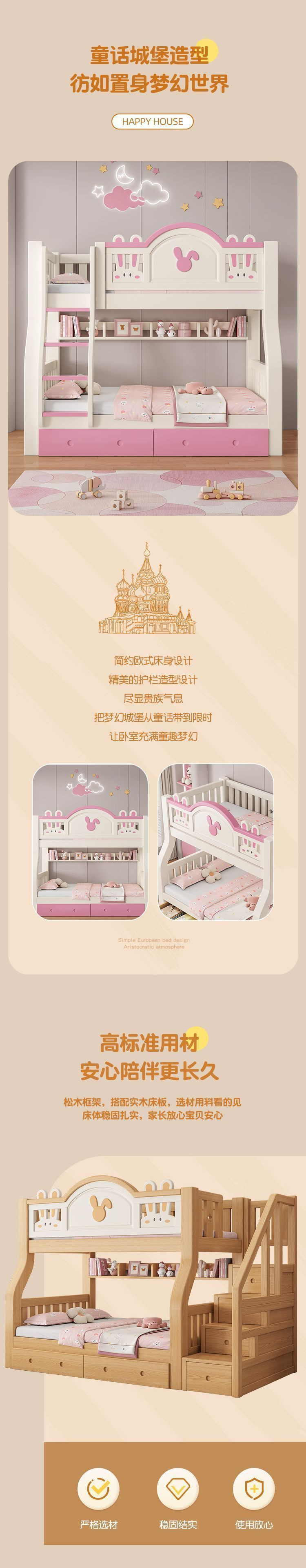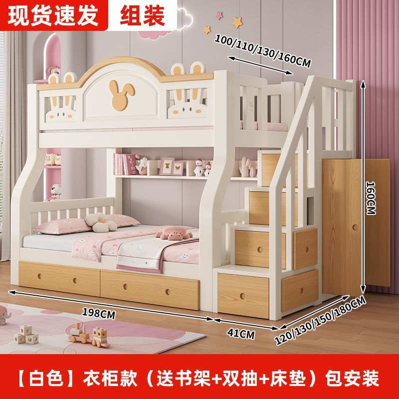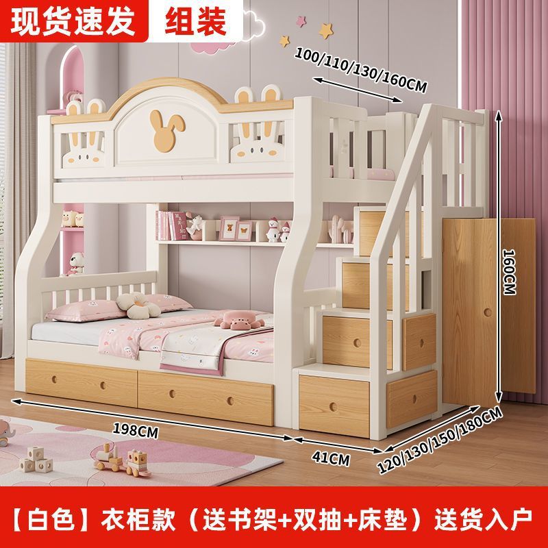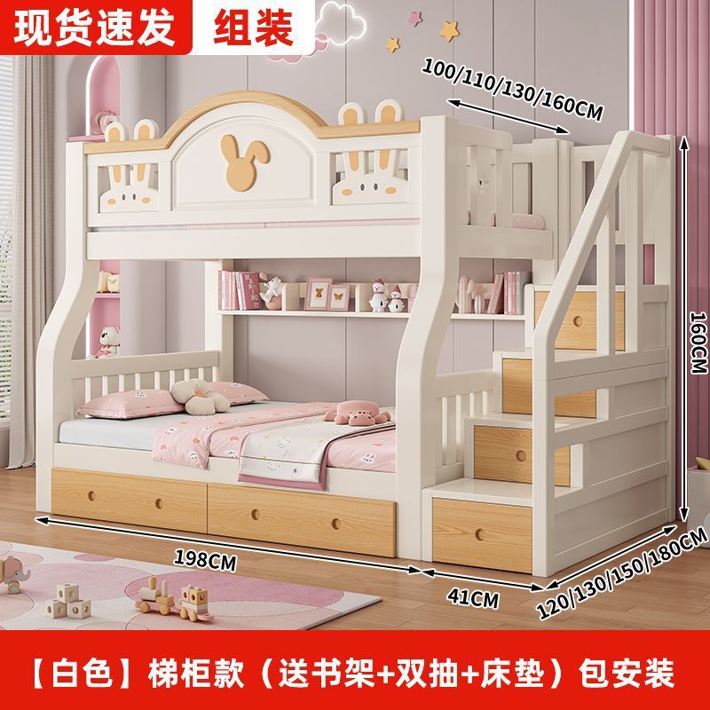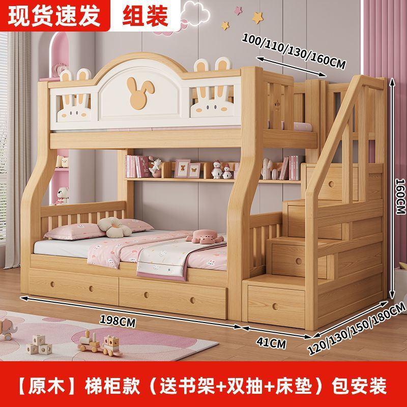 원목 어린이 이층침대, 어린이침대, 이층침대, 2층 소형 고저목재침대, 이층침대