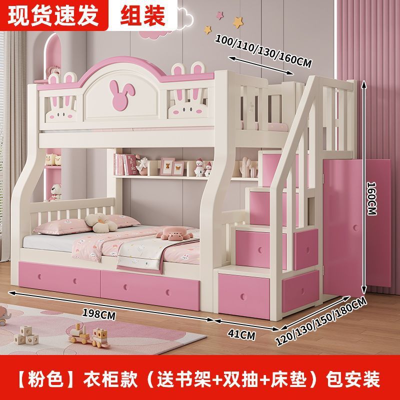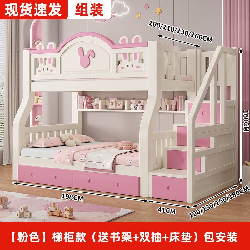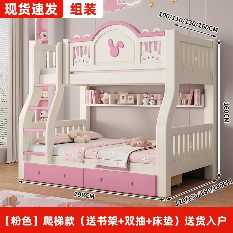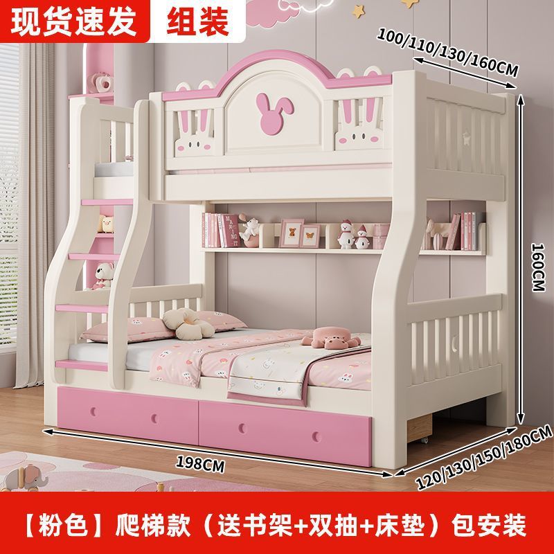 • [핑크] 사다리 스타일 (책장 + 더블 서랍 + 매트리스 포함) 집까지 배송