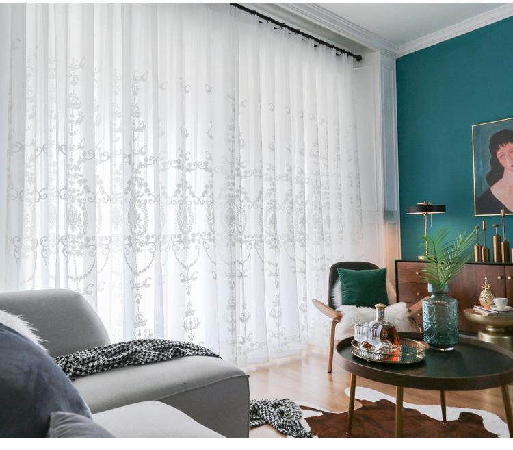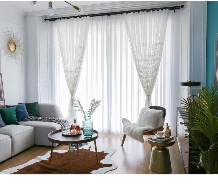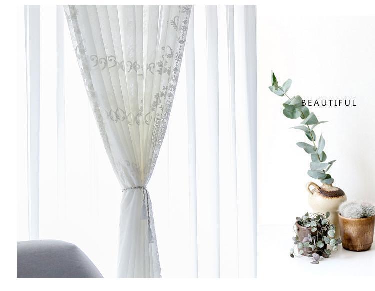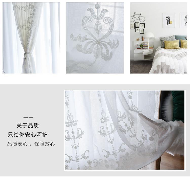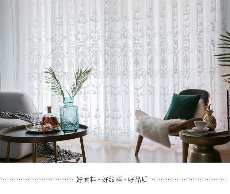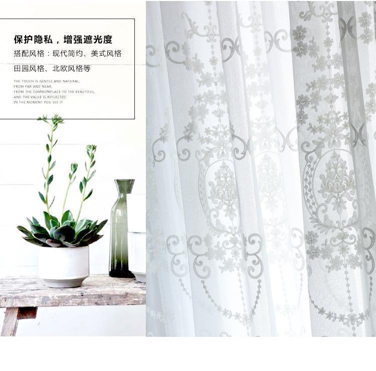 창 스크린 유럽 스타일의 거즈 커튼 흰색 간단한 수 놓은 거실 커튼 분위기 있는 완제품 침실 도매 배송 제조 업체스토어 가기