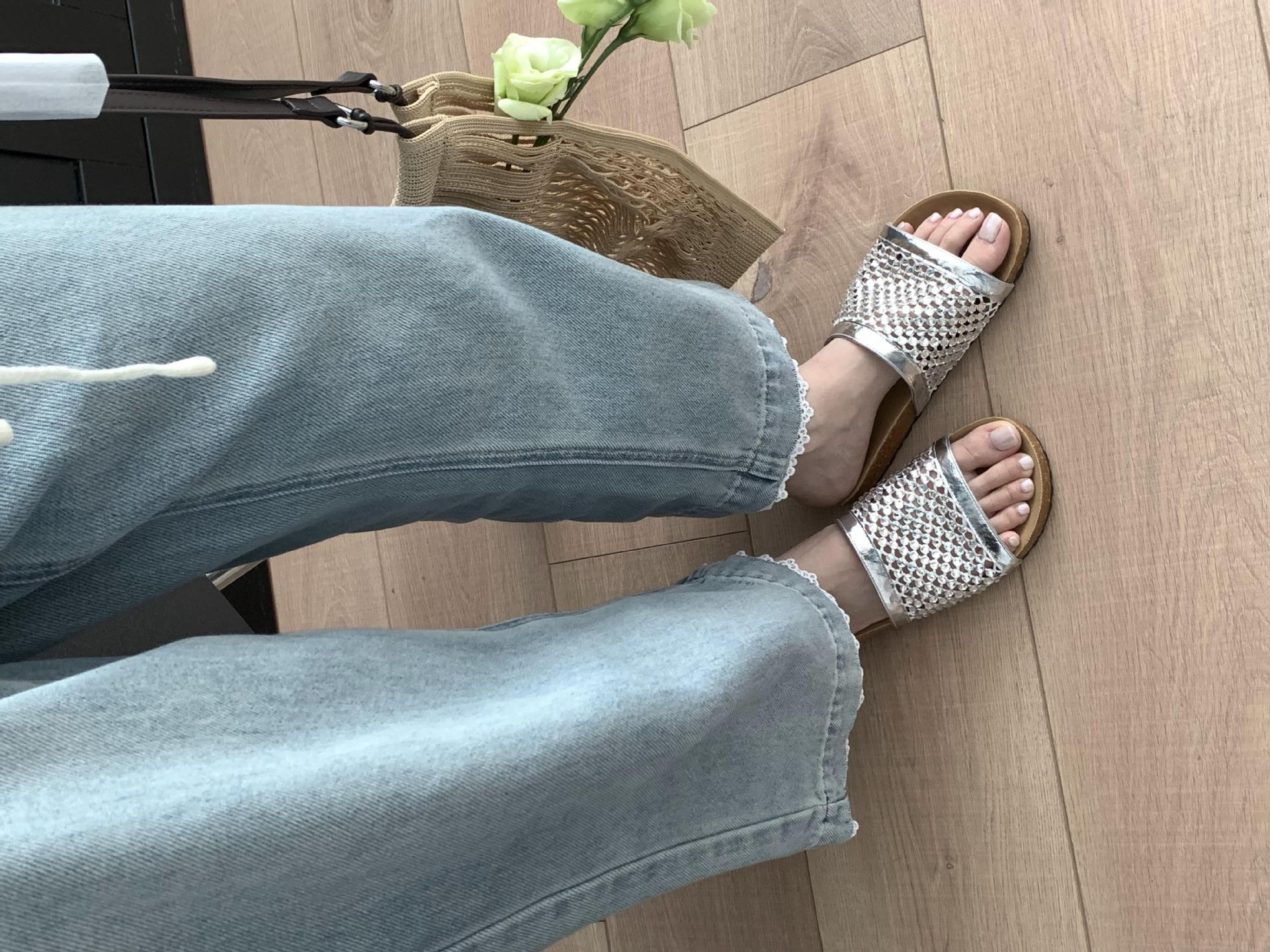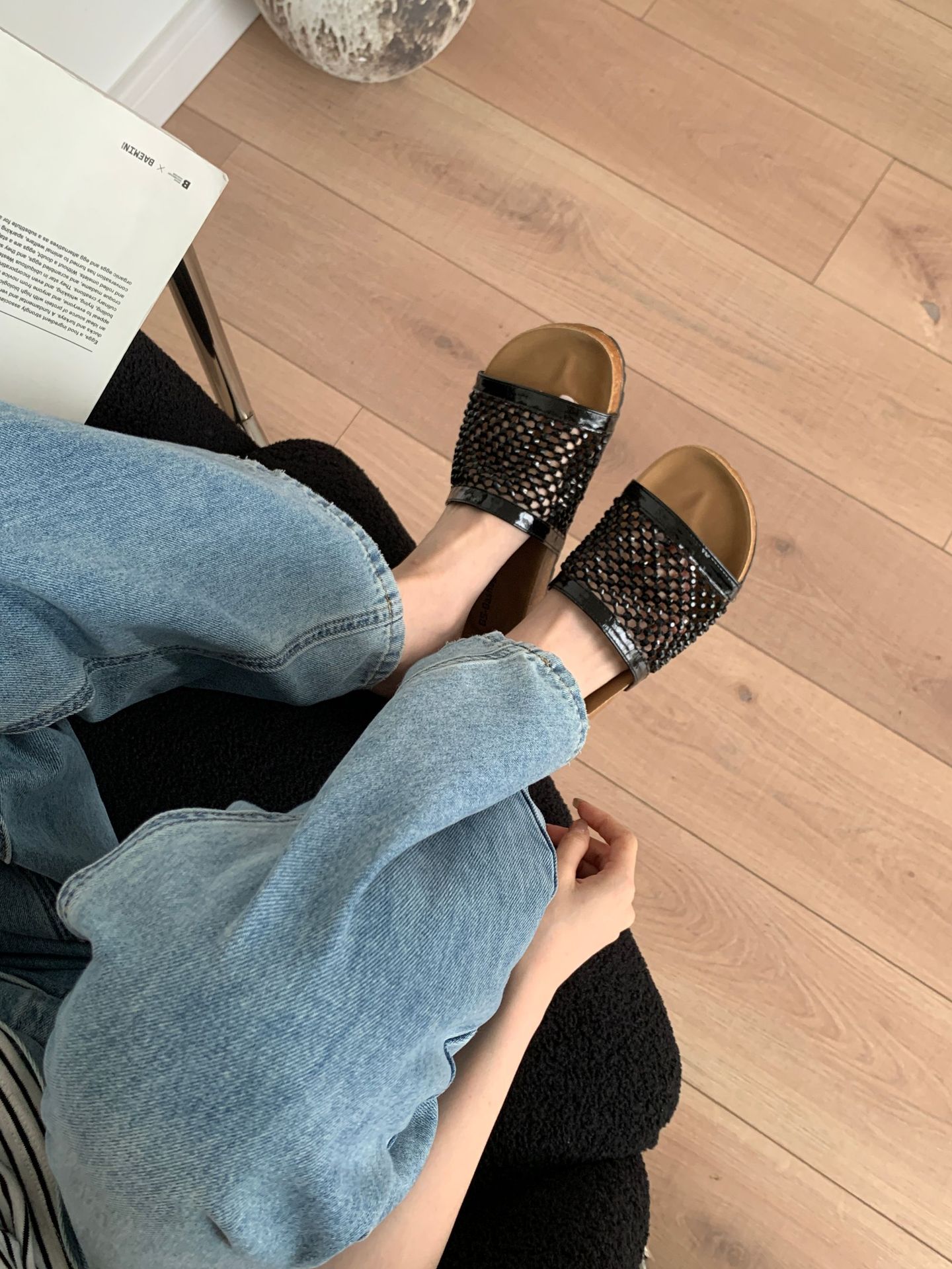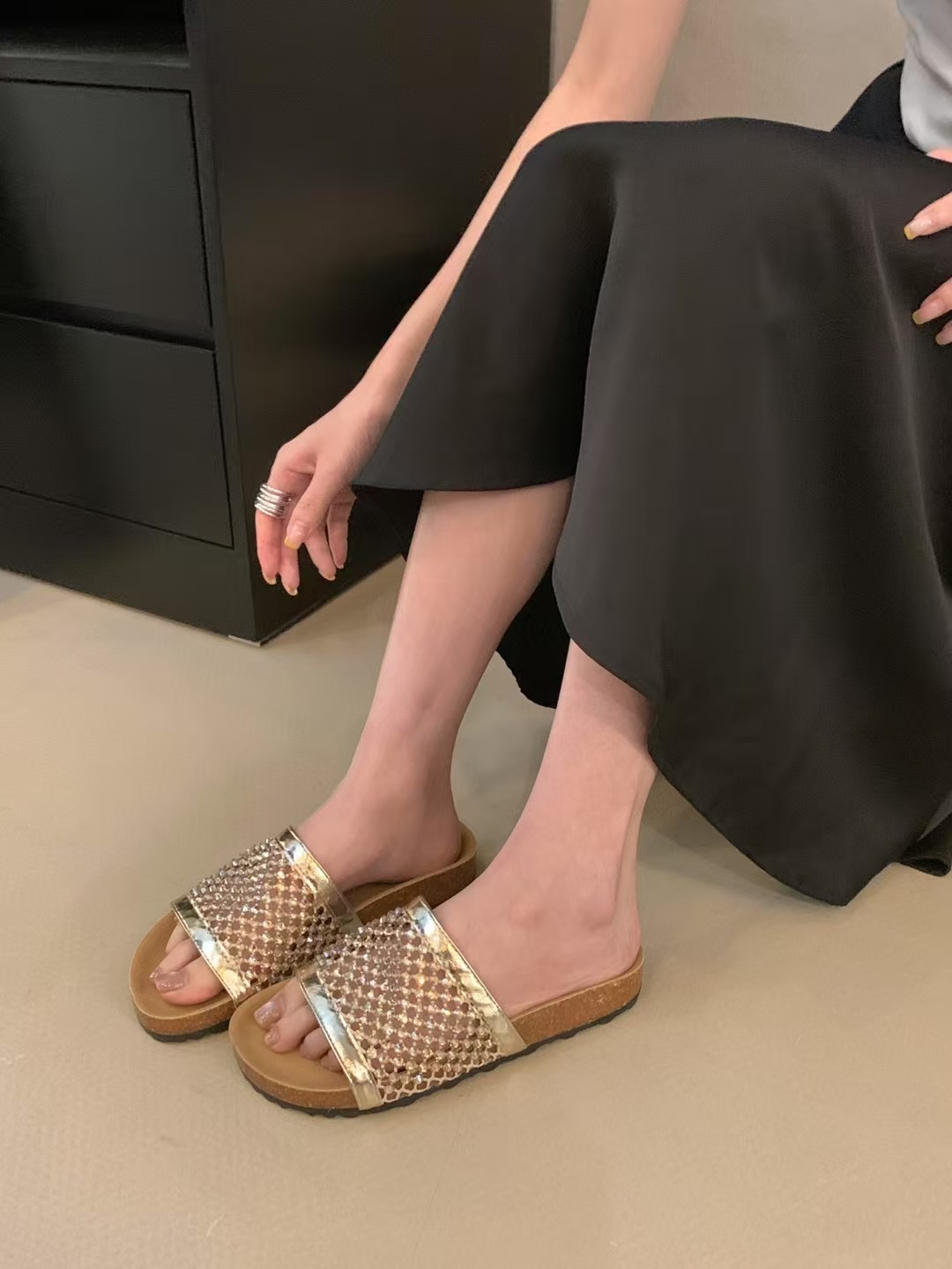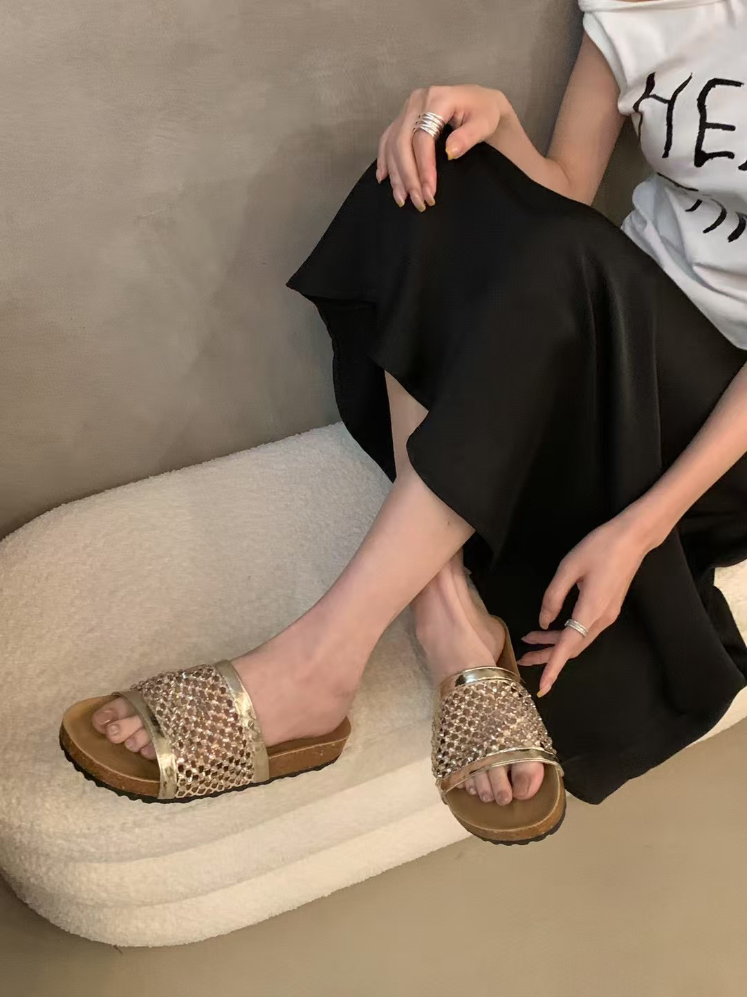 라인스톤 빈티지 메쉬 두꺼운 바닥 샌들과 슬리퍼 여성 2025 년 여름 유행 외출 해변 홀리데이 샌들 두꺼운 바닥스토어 가기