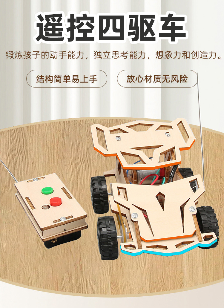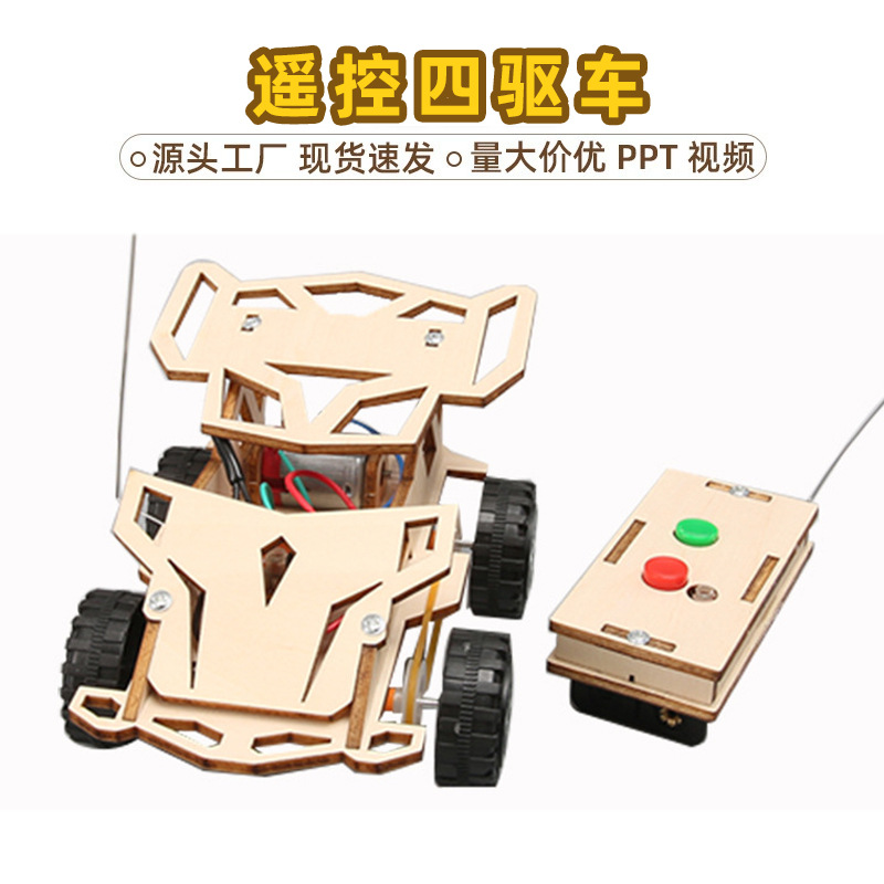 어린이 과학 실험 작은 발명품 전기 4 륜 구동 교육 지원 원격 제어 자동차 수동 조립 재료 diy 모델스토어 가기