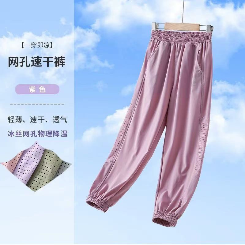 여아용 바지, 여름용 얇은 얼음 실크 속건성 바지, 아동용 캐주얼 스포츠 바지, 중대형 아동용 모기 방지 바지, 루즈한 바지스토어 가기