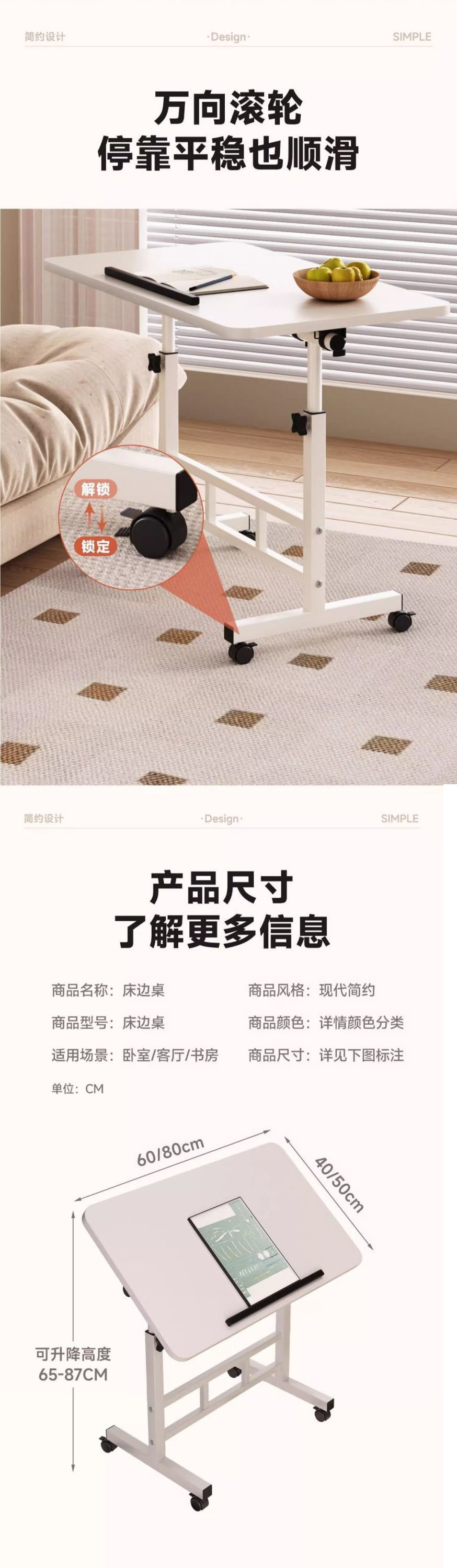 이동식 테이블 침대 옆 테이블 접이식 리프팅 테이블 침대 옆 컴퓨터 테이블 바퀴가 달린 이동식 컴퓨터 테이블 책상스토어 가기